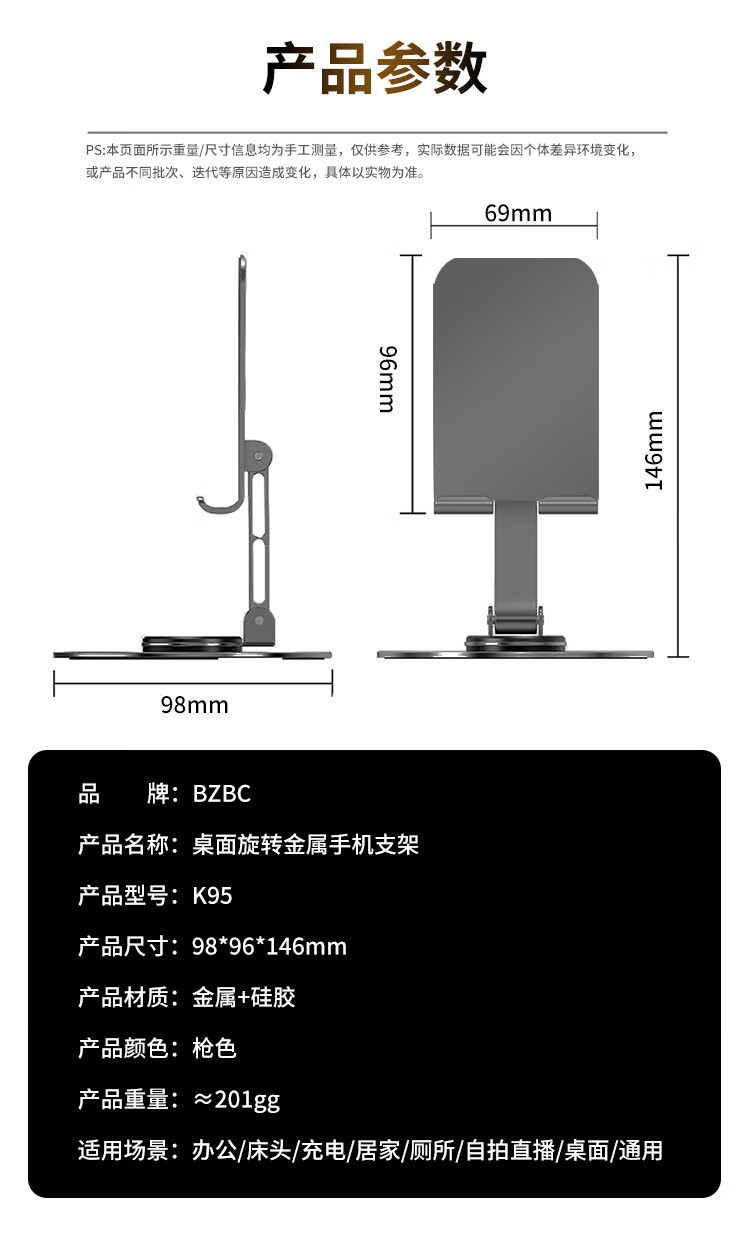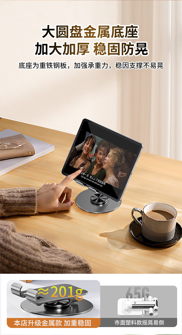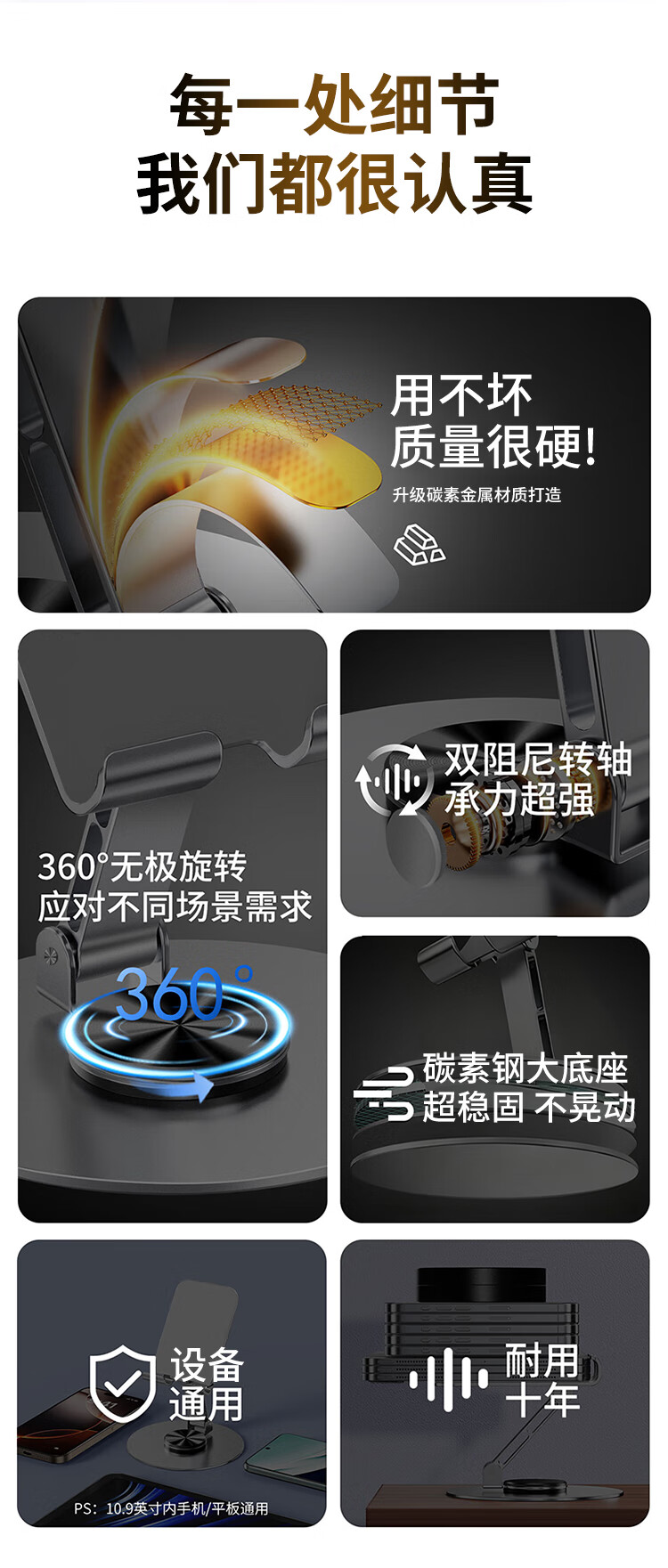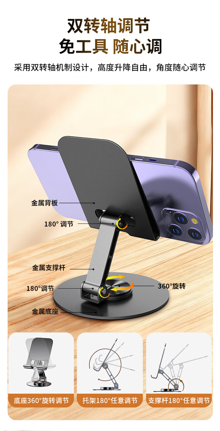 BZBC【升级碳钢板】手机支架平板iPad桌面支架360度旋转可折叠直播手机架拍摄拍照办公多功能支撑架