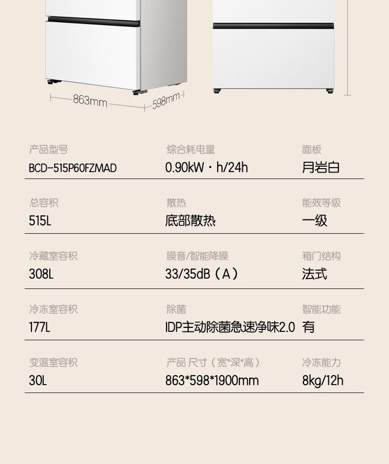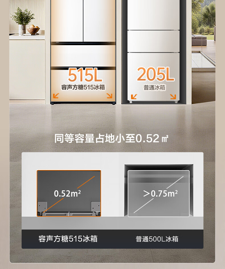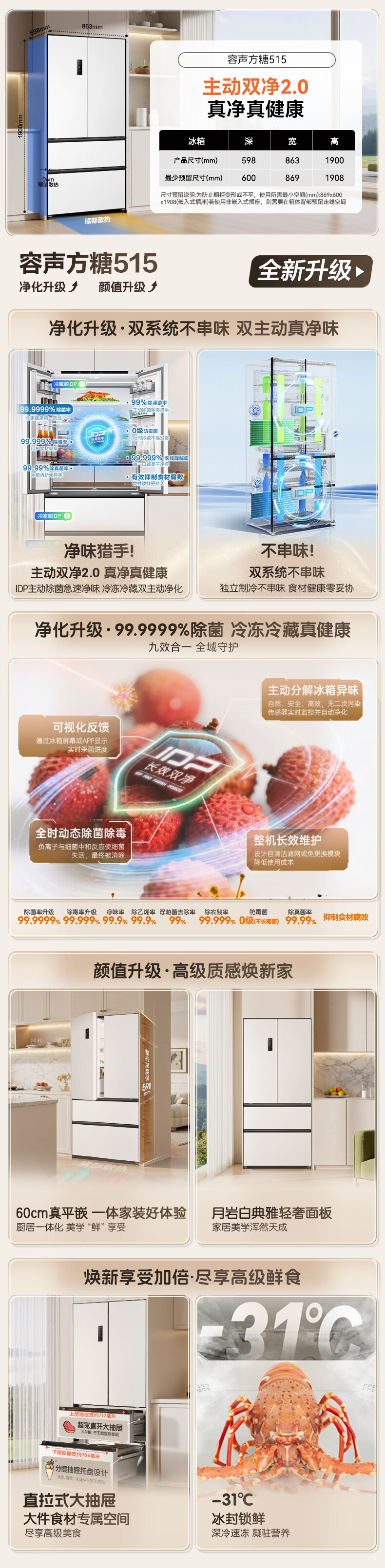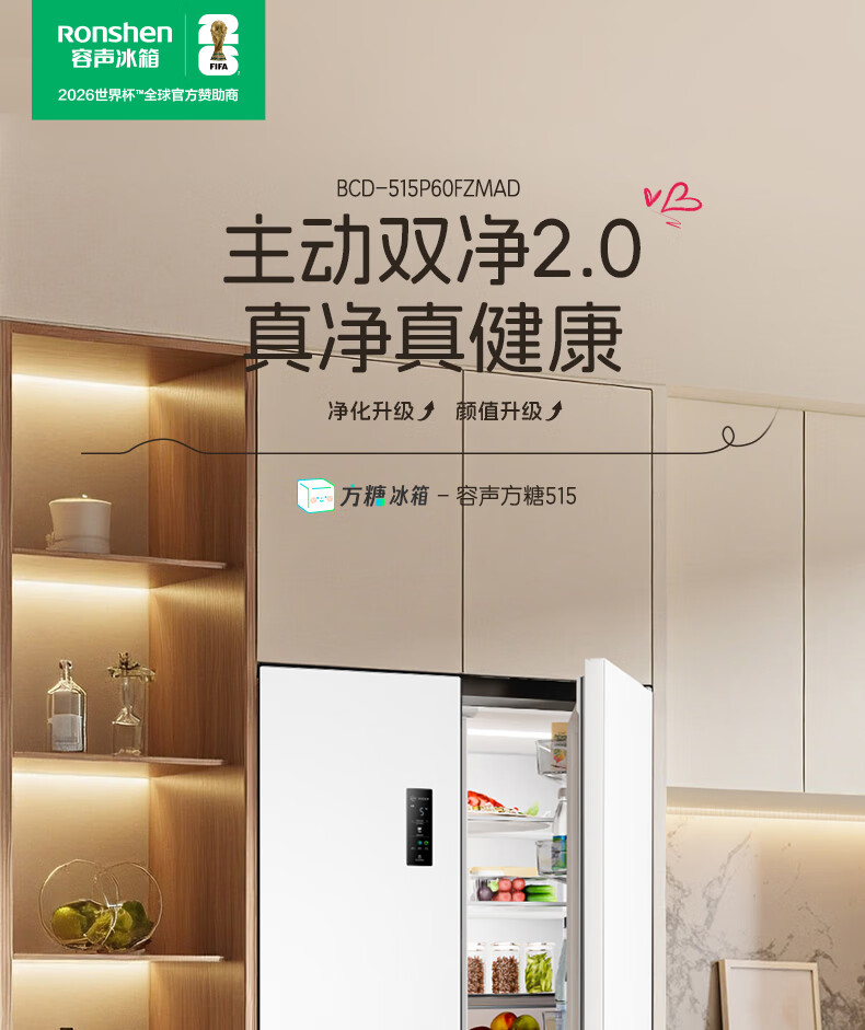 容声方糖515L法式多门冰箱双系统超薄零嵌入式主动除菌一级能效无霜白BCD-515P60FZMAD国家补贴世界杯