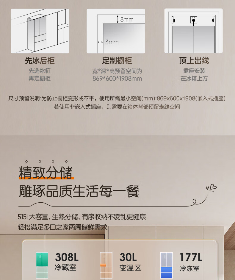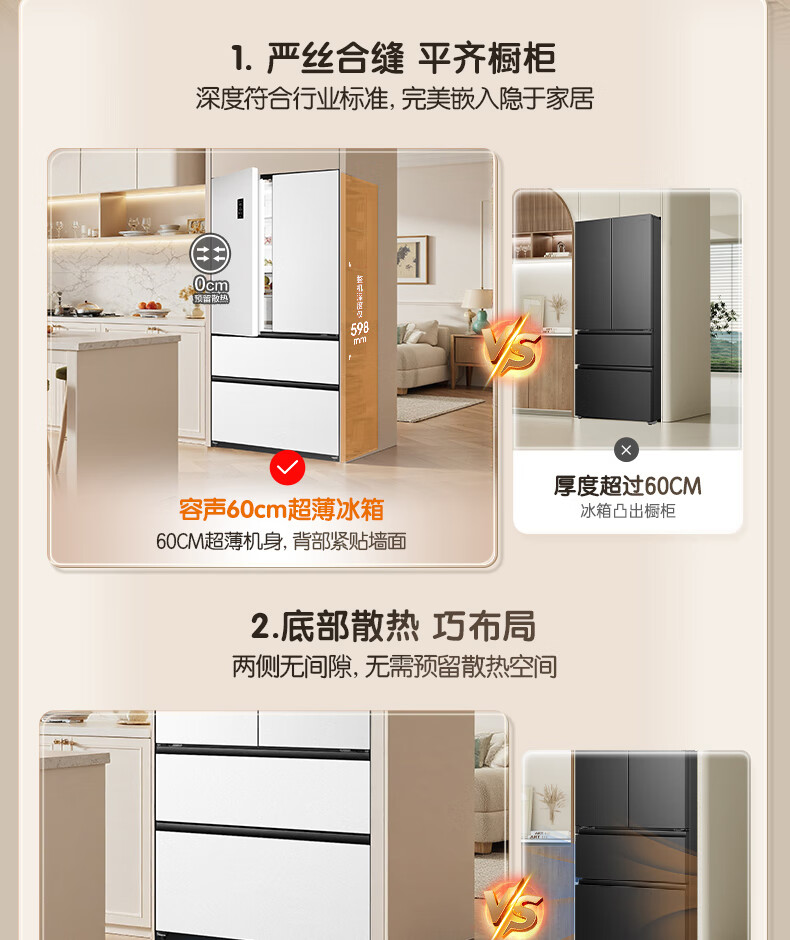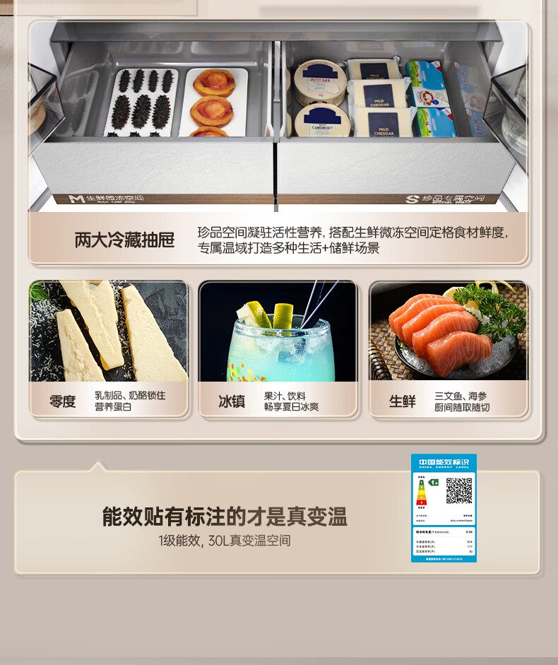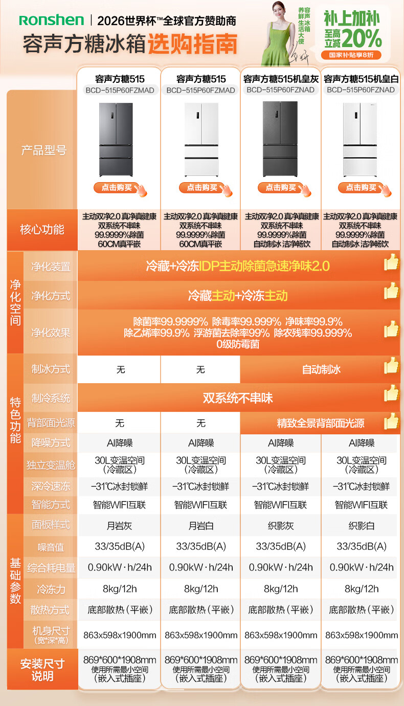 容声方糖515L法式多门冰箱双系统超薄零嵌入式主动除菌一级能效无霜白BCD-515P60FZMAD国家补贴世界杯