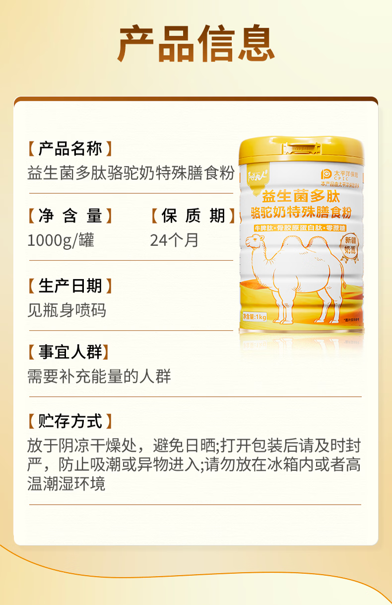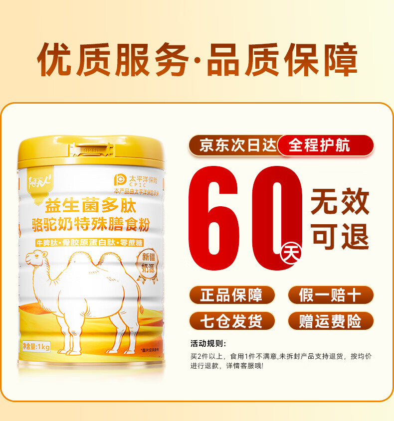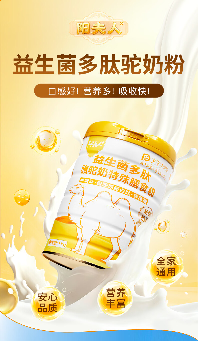 阳夫人新疆正宗骆驼奶粉老年人三高糖尿可用无蔗糖益生菌富硒高钙驼乳粉 【体验装】1罐1000g(尝鲜首选)
