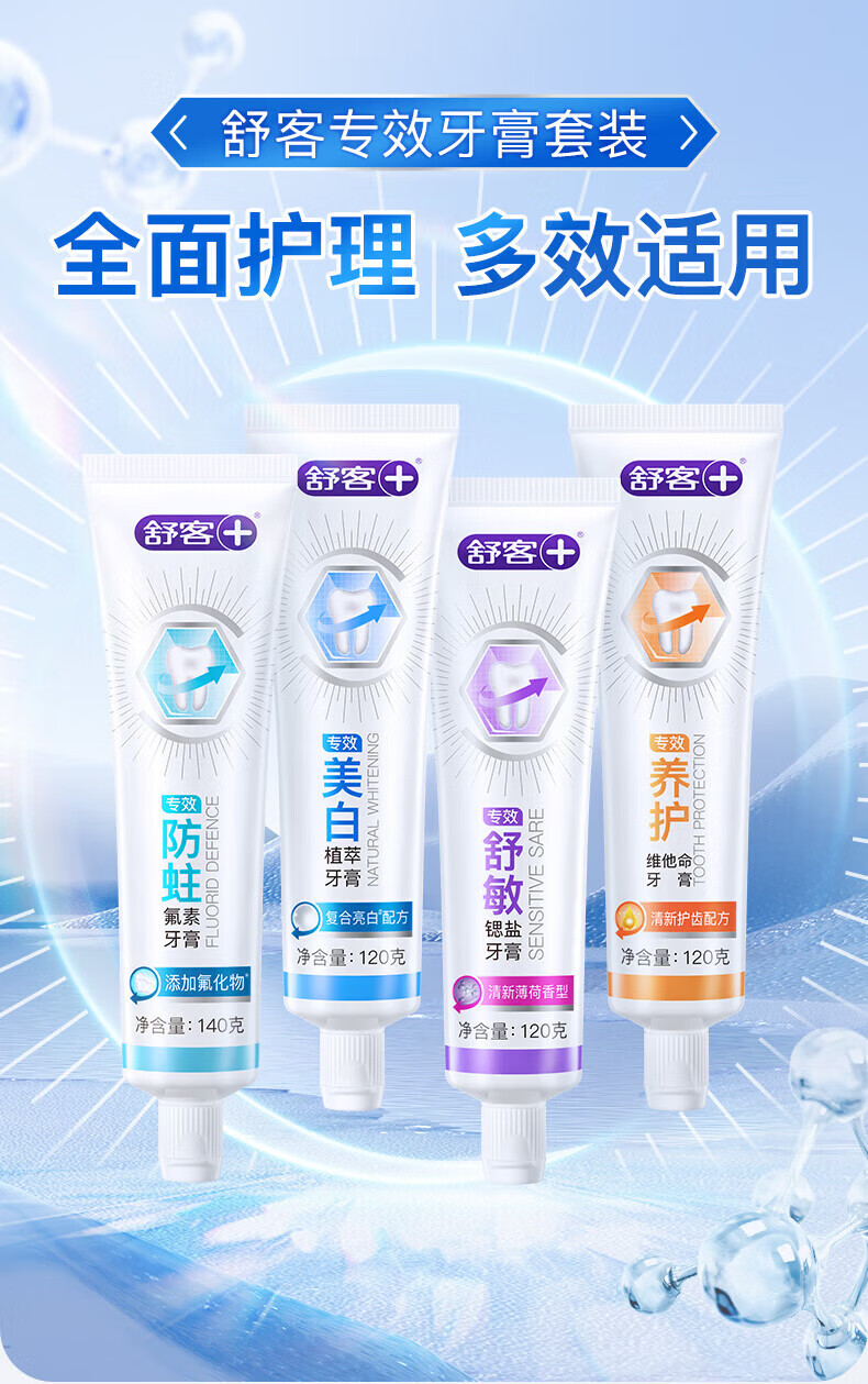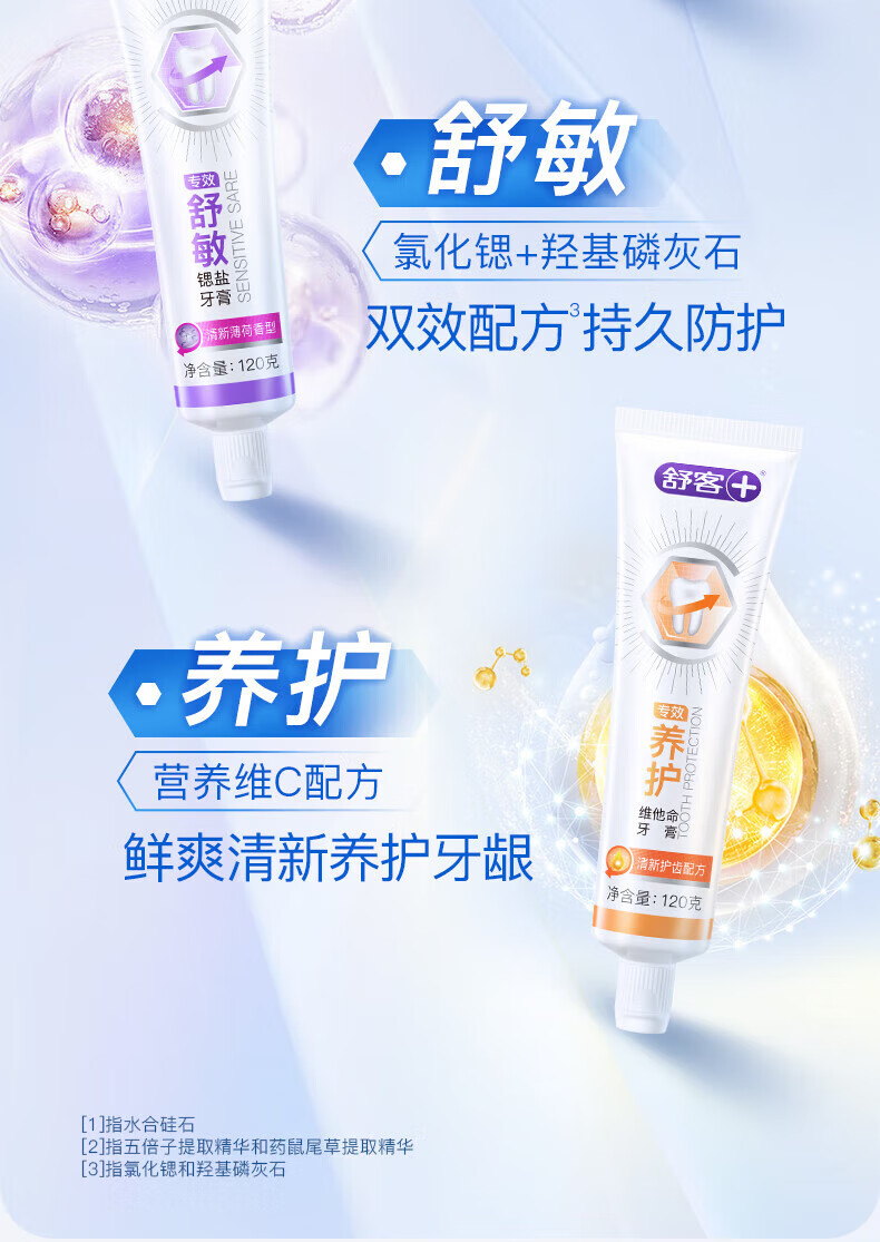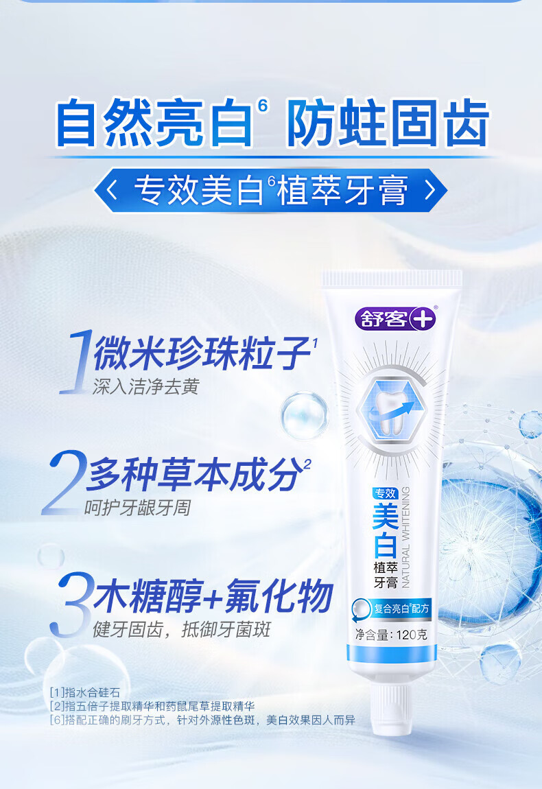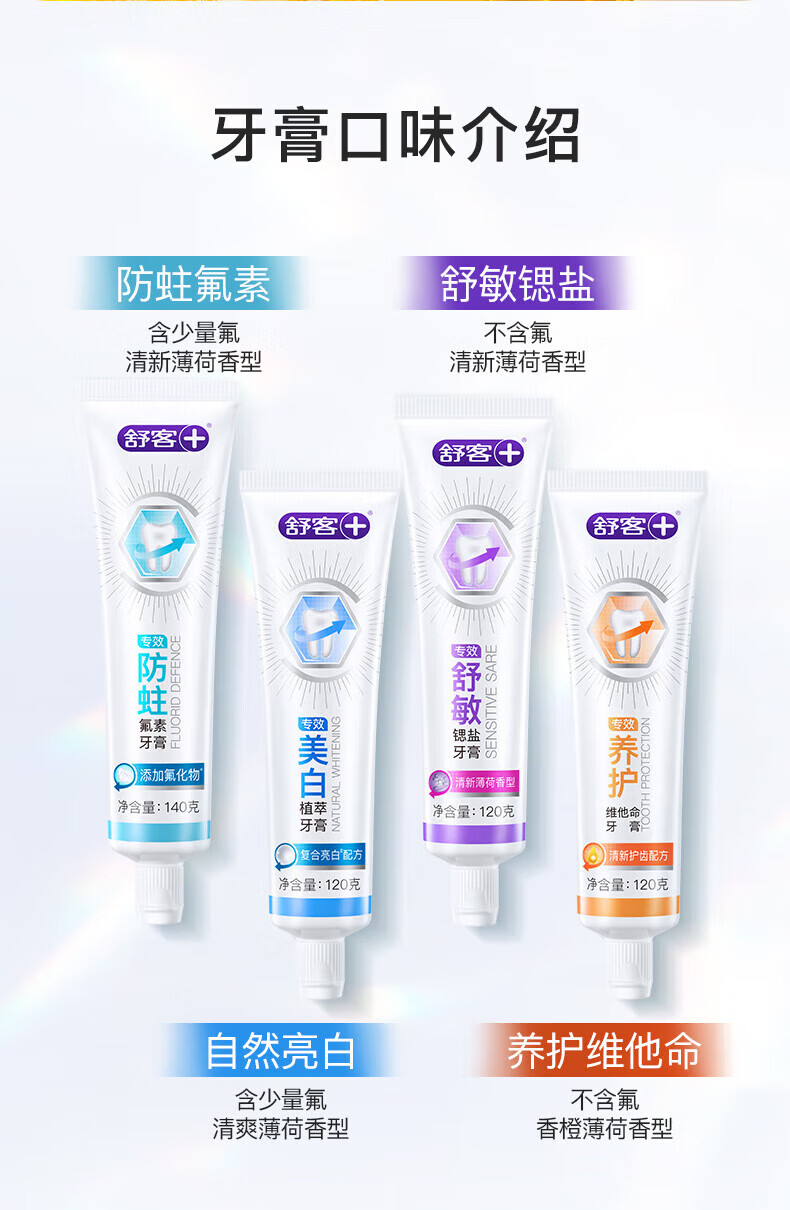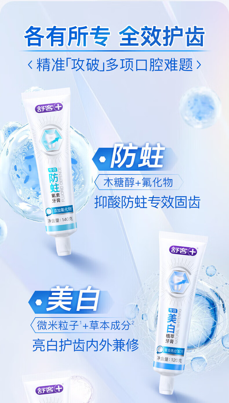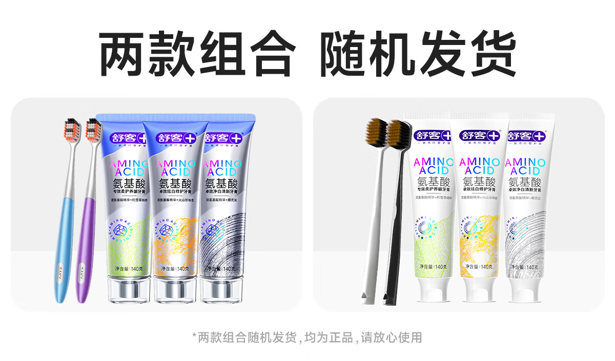 舒客氨基酸美白牙膏亮白含氟护龈清新口气家用官方旗舰店正品 【2支装】美白120g+防蛀140g