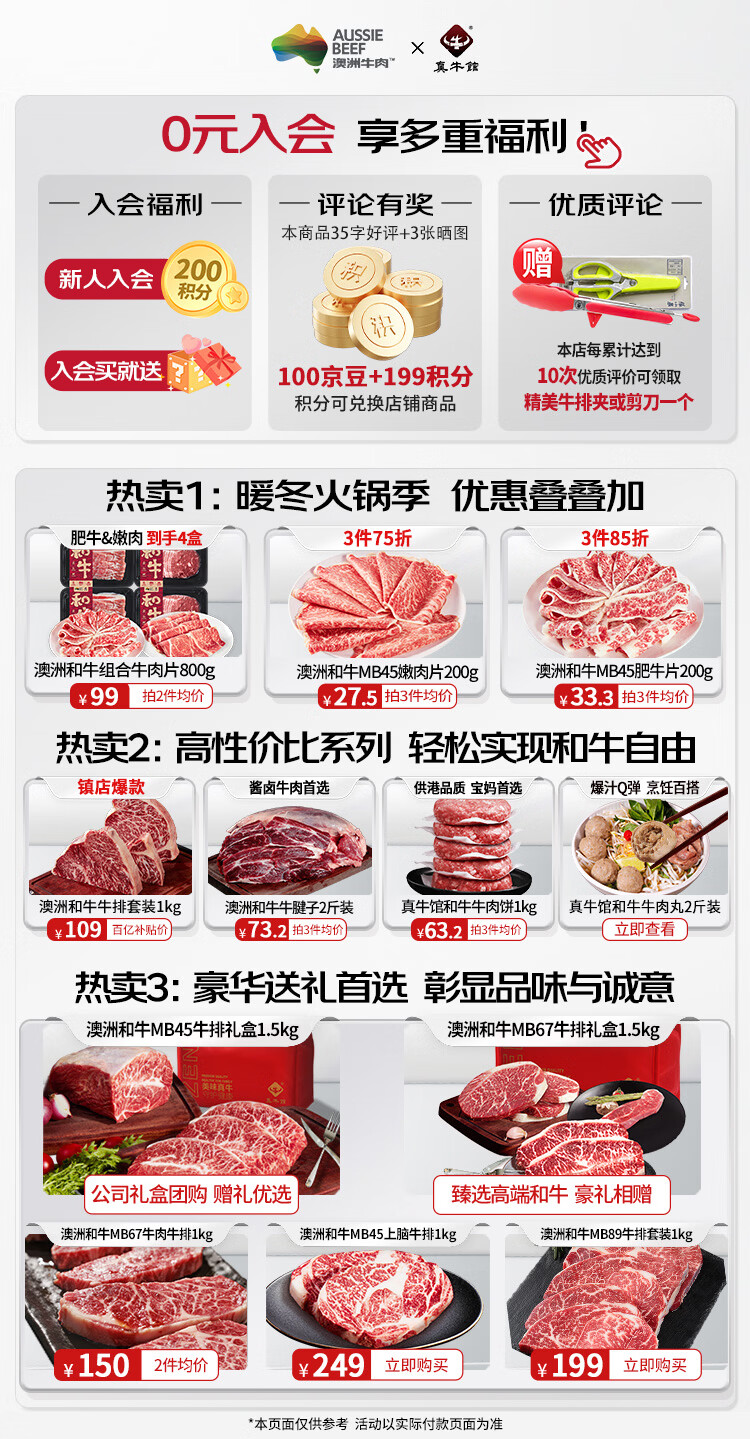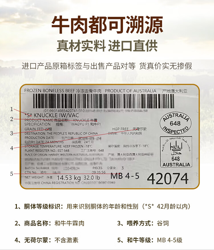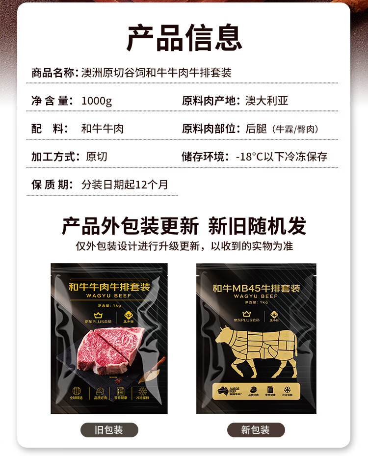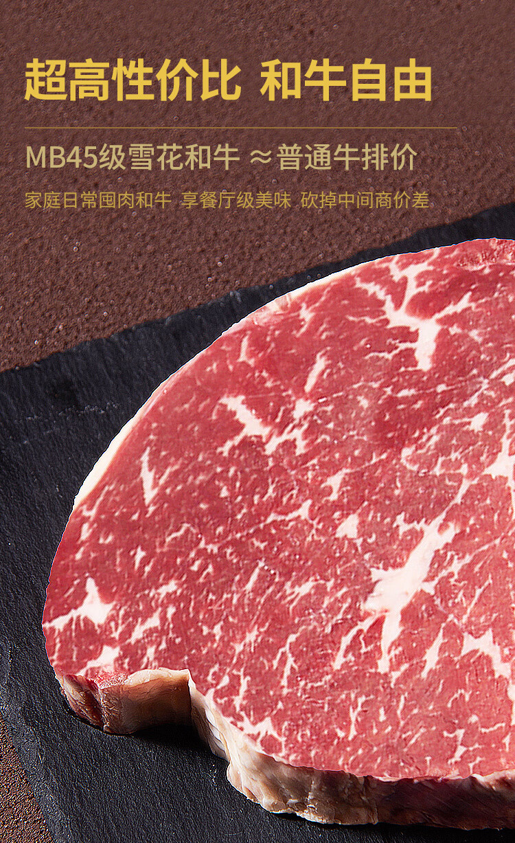 真牛馆X京东plus澳洲谷饲和牛MB45原切牛排2斤 牛肉生鲜牛扒 年货 牛霖