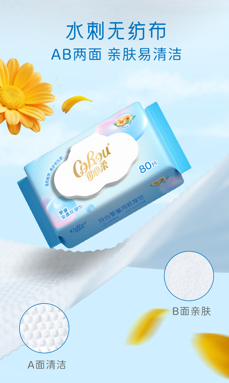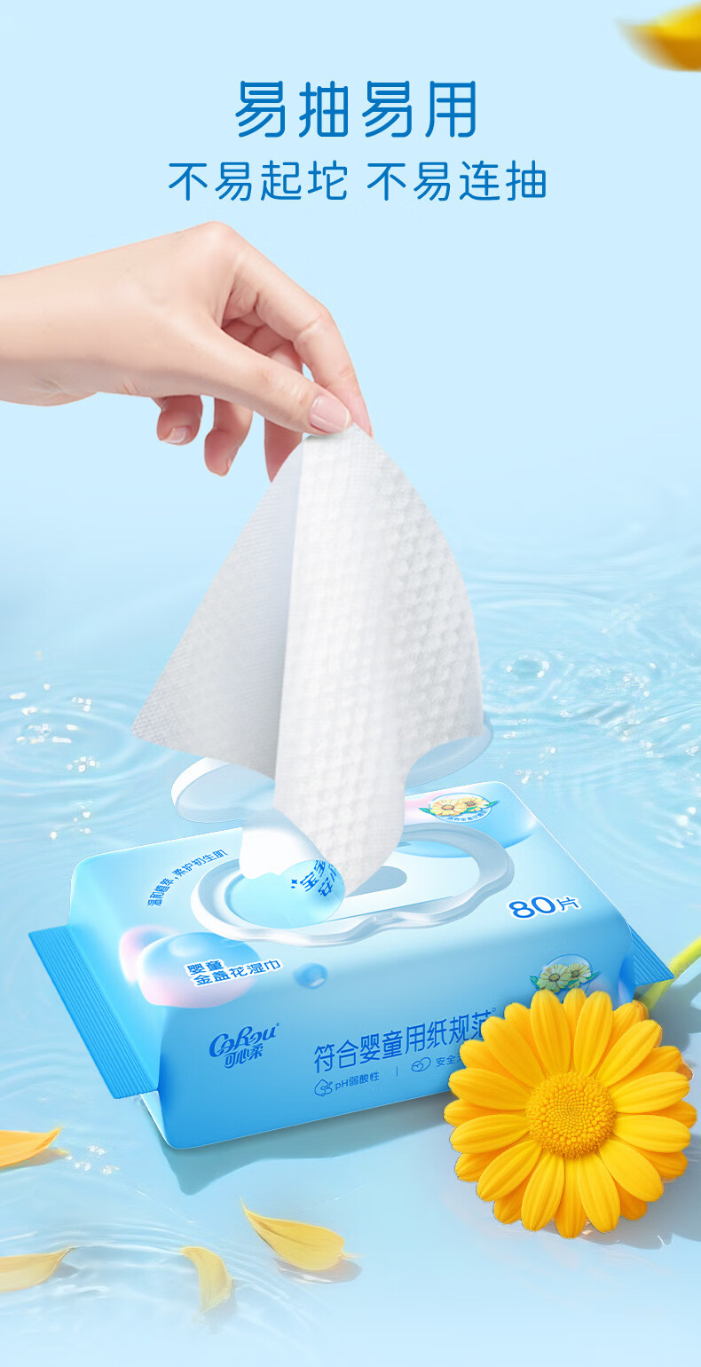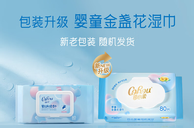 可心柔(COROU)婴儿手口湿巾新生儿宝宝清洁护肤柔润湿纸巾 【金盏花婴儿湿巾】 80抽 4包