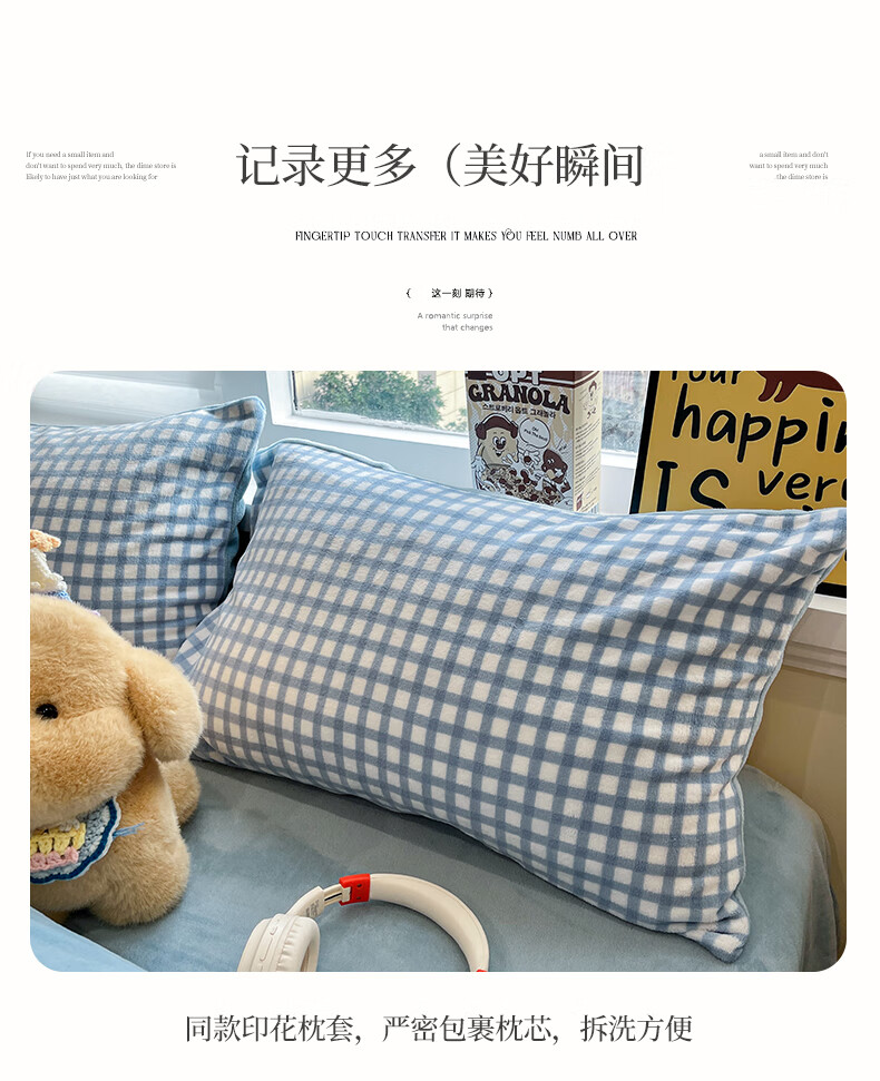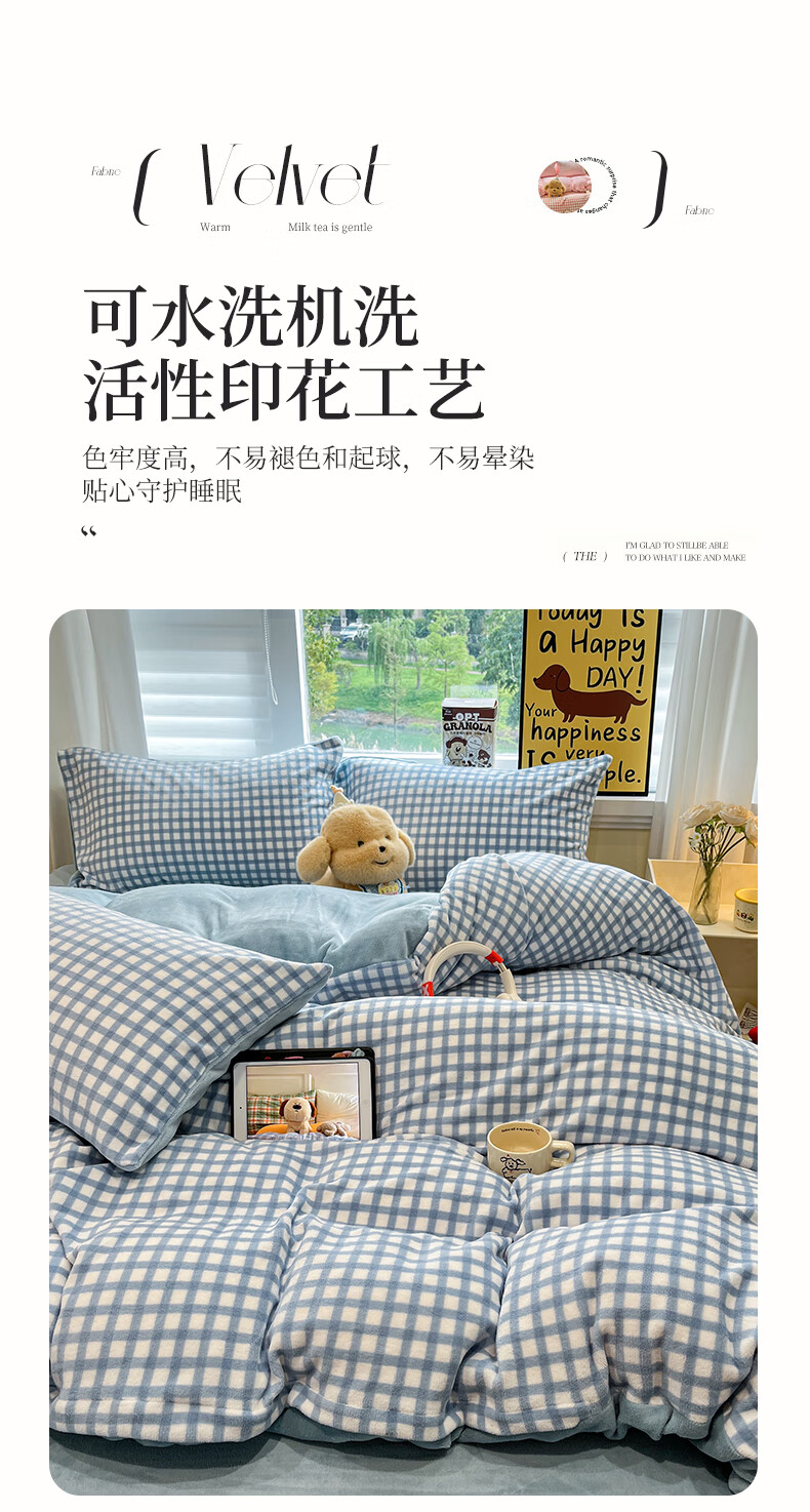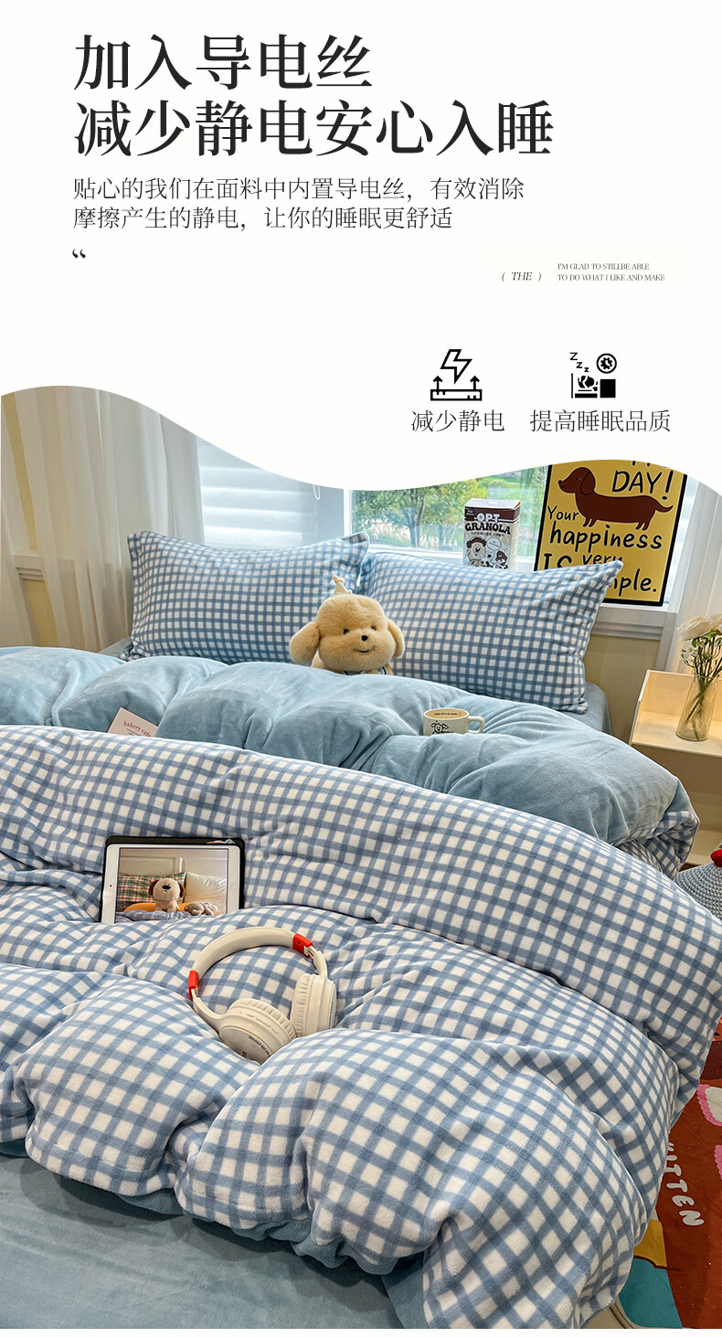 VJE小清新牛奶绒四件套冬季双面绒抗静电床单被套学生宿舍三件套床品 背带兔 三件套1.2m 床单款 -被套150*200cm