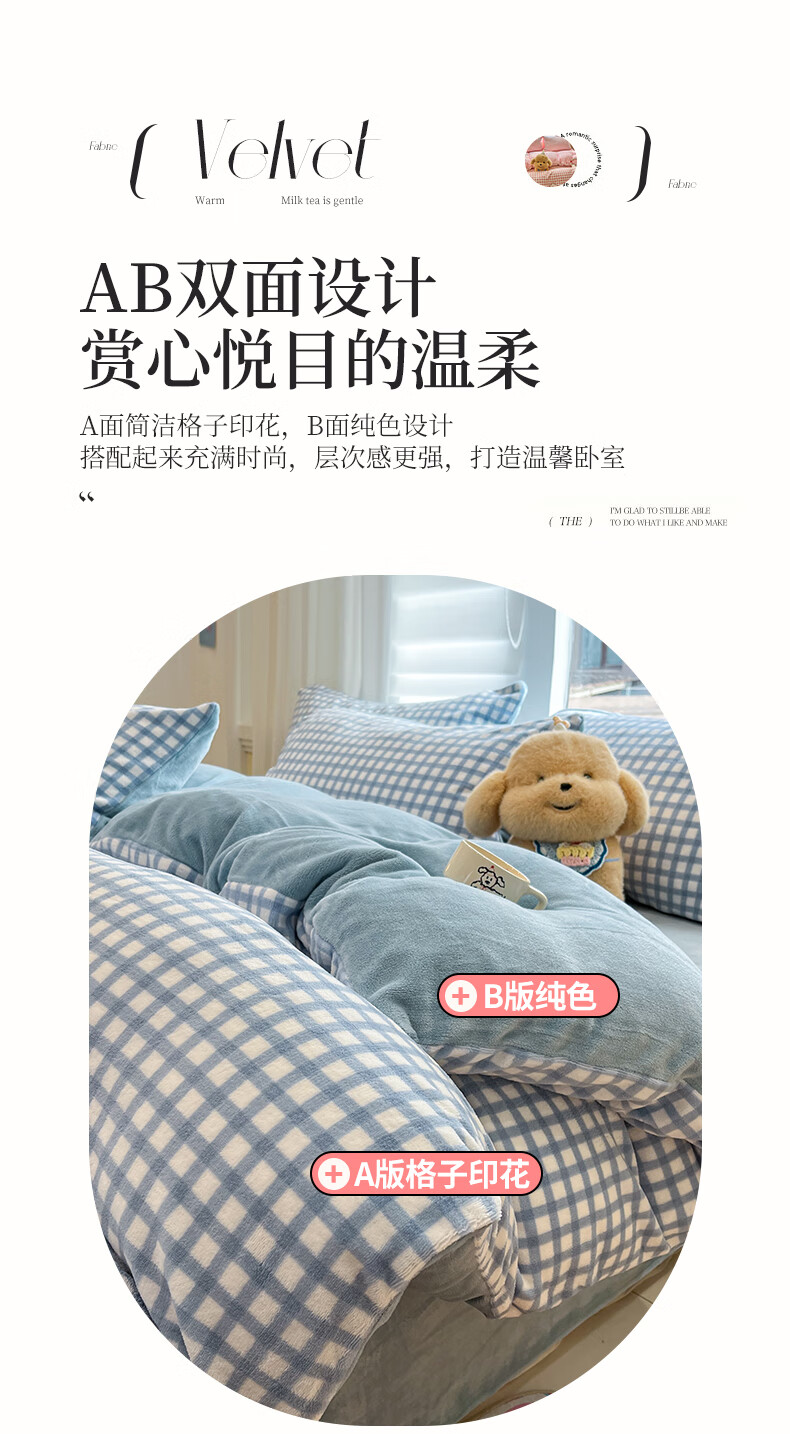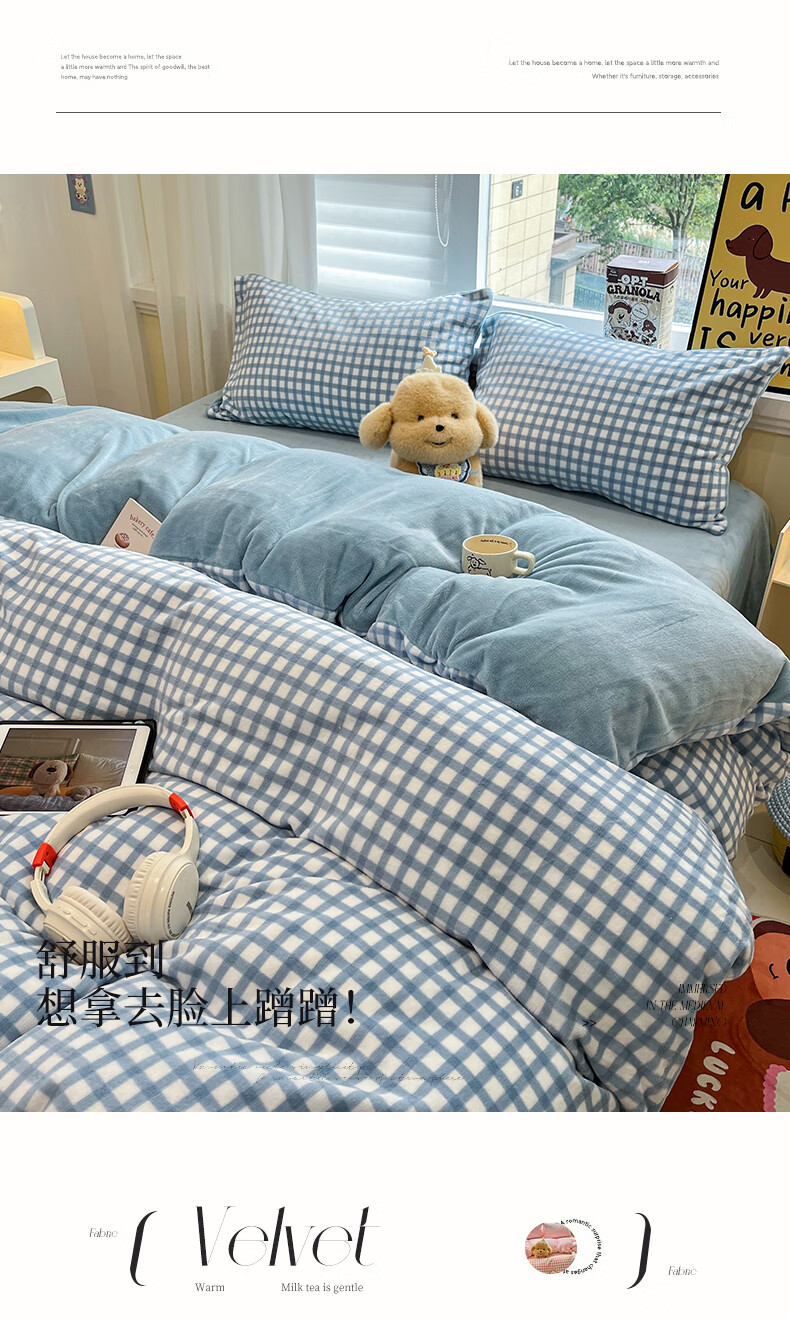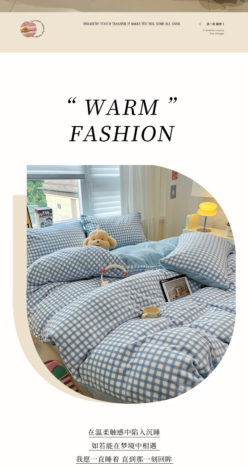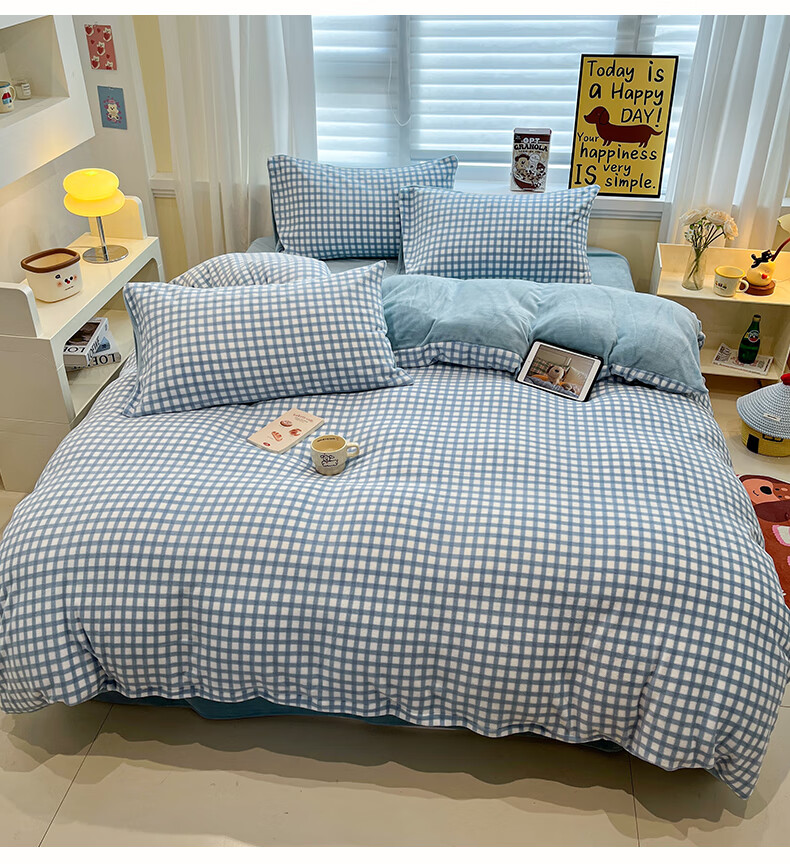 猫人(MiiOW)牛奶绒床上四件套 简约冬季加厚保暖床单被套三件套 时尚蓝【温暖治愈一触即暖】 1.5/1.8 床单款 四件套(被套200*230)