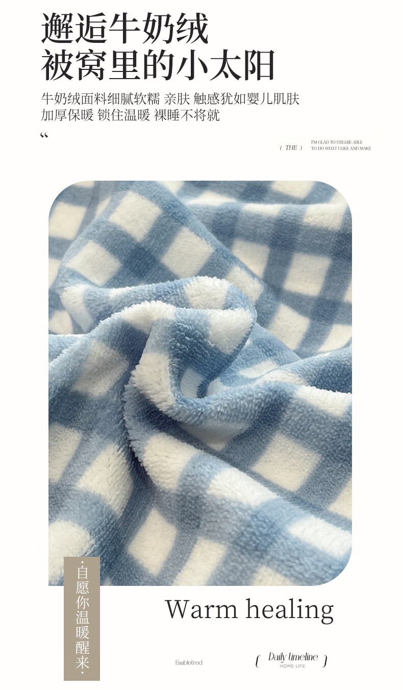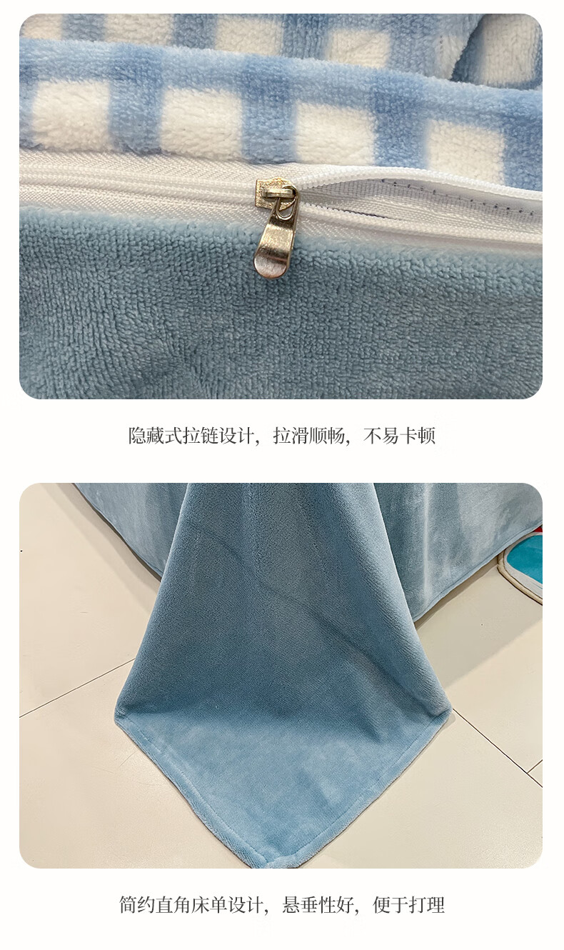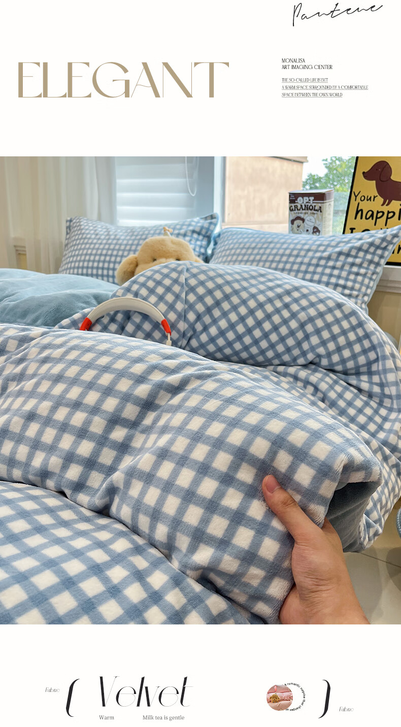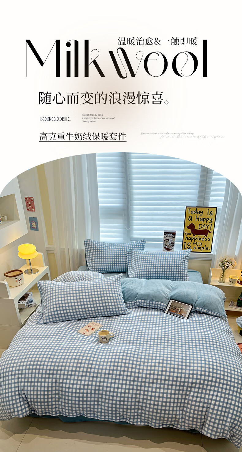 猫人(MiiOW)牛奶绒床上四件套 简约冬季加厚保暖床单被套三件套 时尚蓝【温暖治愈一触即暖】 1.5/1.8 床单款 四件套(被套200*230)