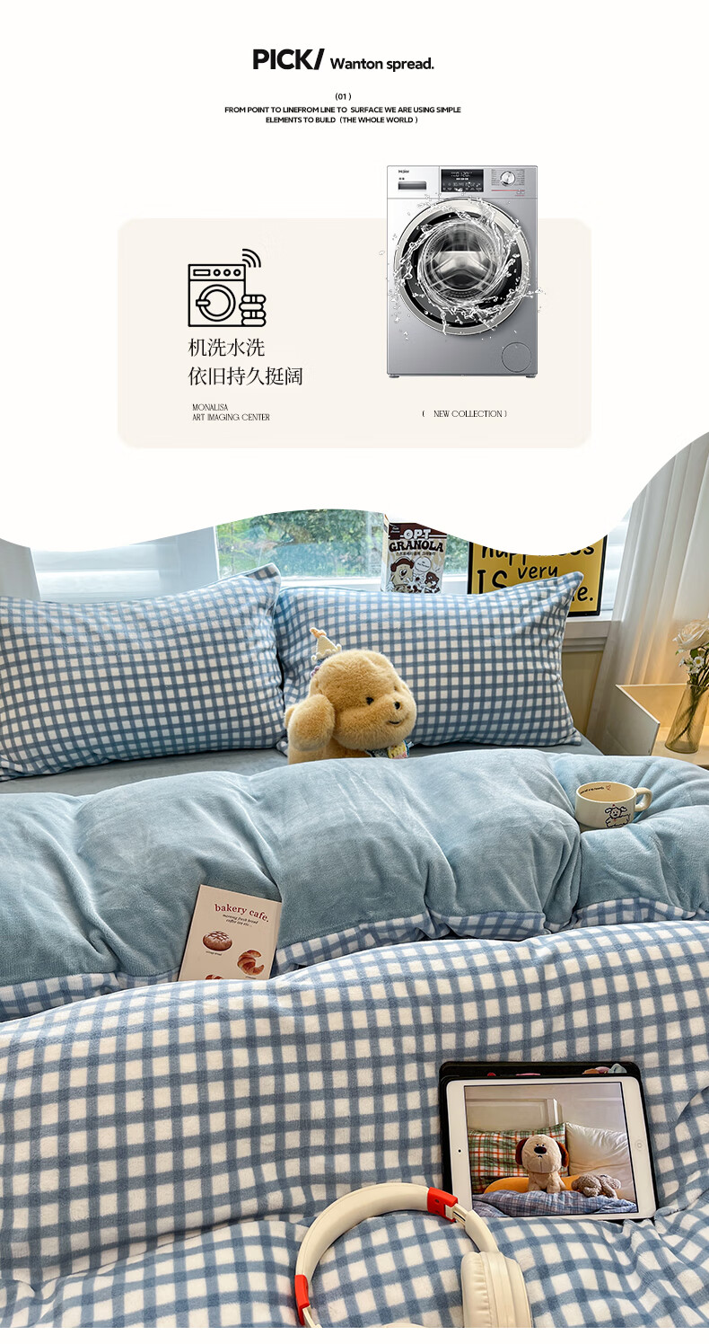 VJE水洗棉床单四件套2025新款四季通用被罩被套卡通三件套床上用品4 奶茶-海盐冰蓝 【三件套】1.2m 床单款 -被套150*200cm