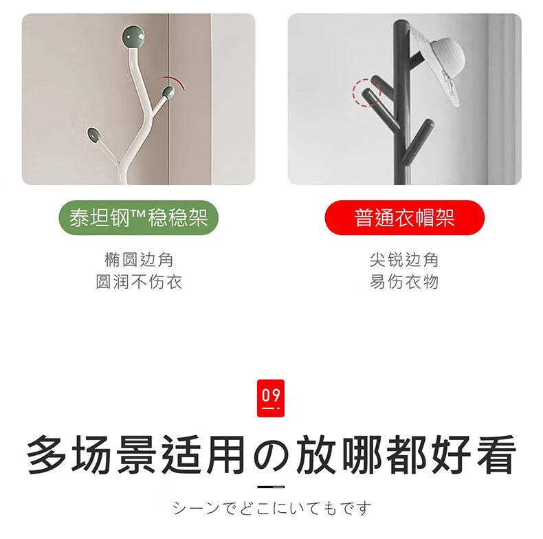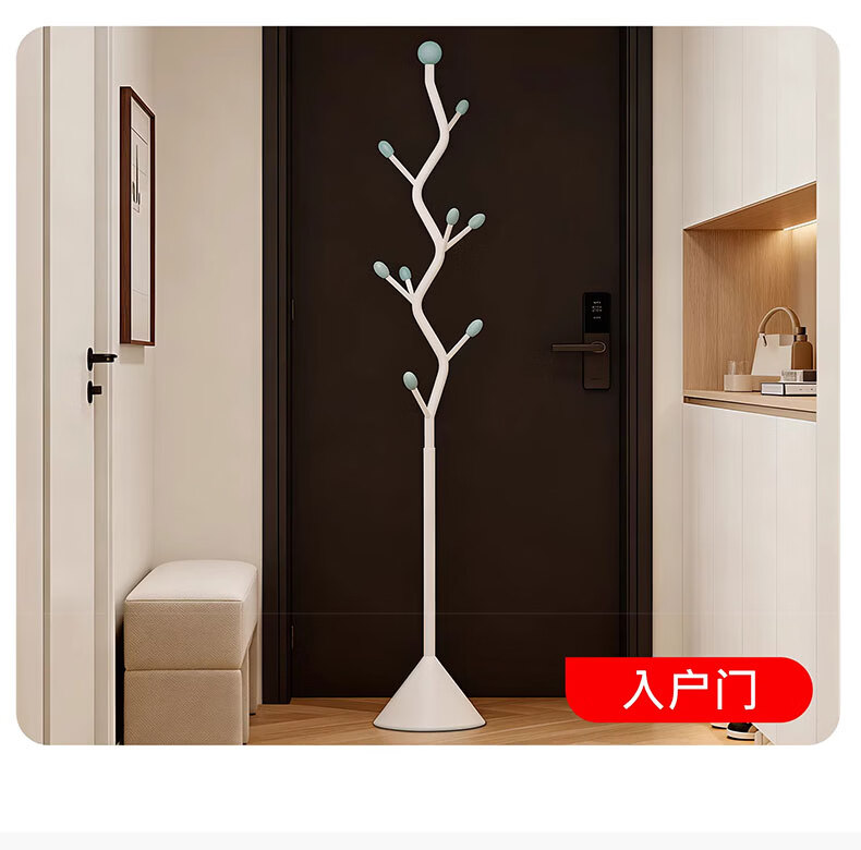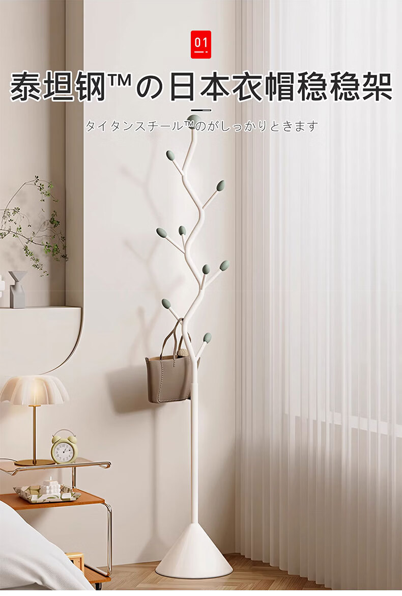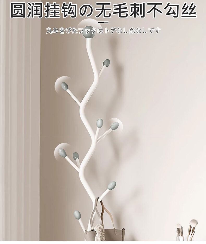 吱凡日本挂衣架落地卧室奶油风家用入户门小型立式挂包简易收纳衣帽架 【华冕金】S型-9挂钩