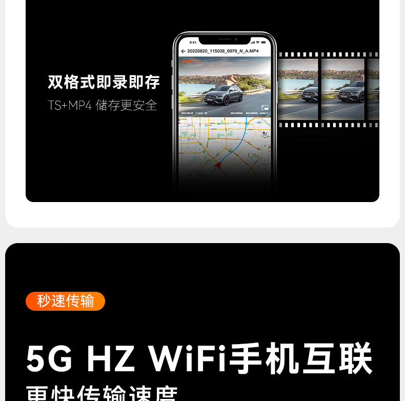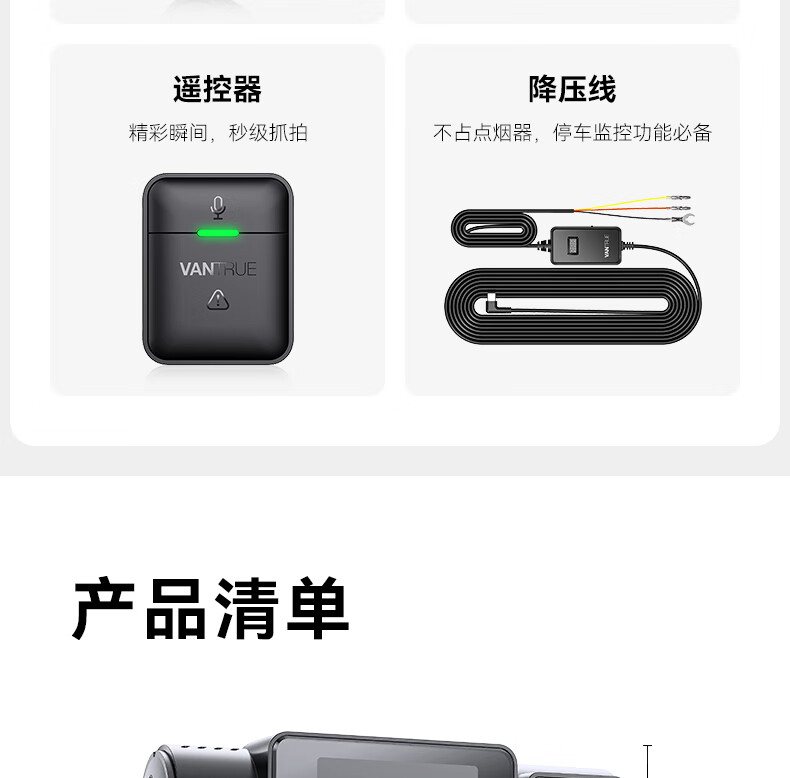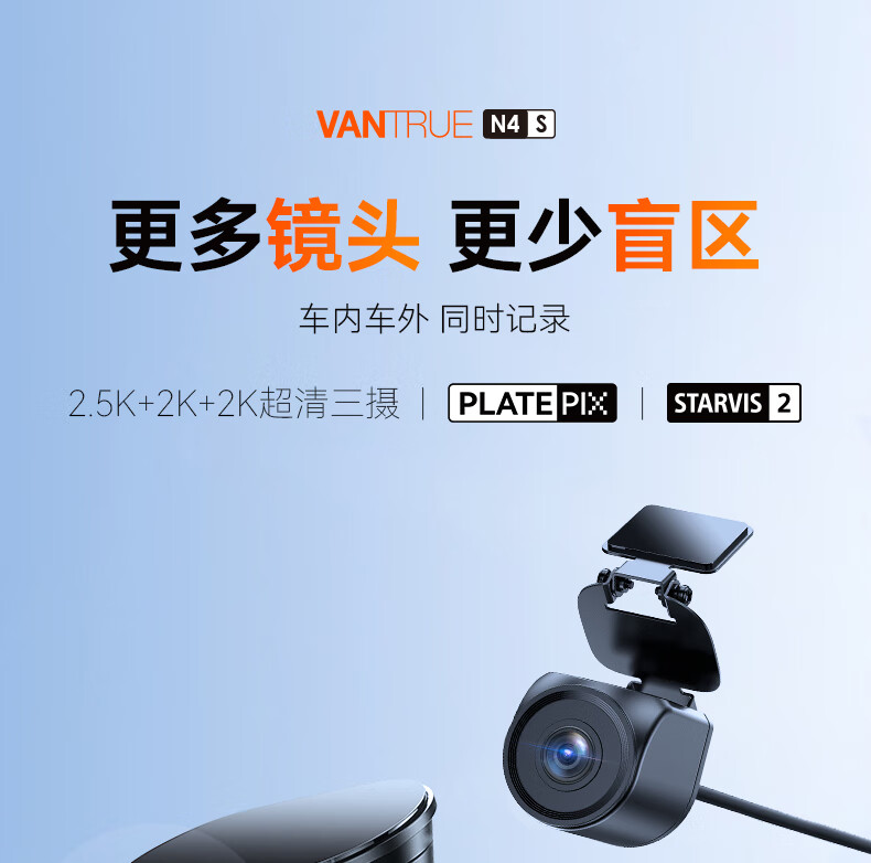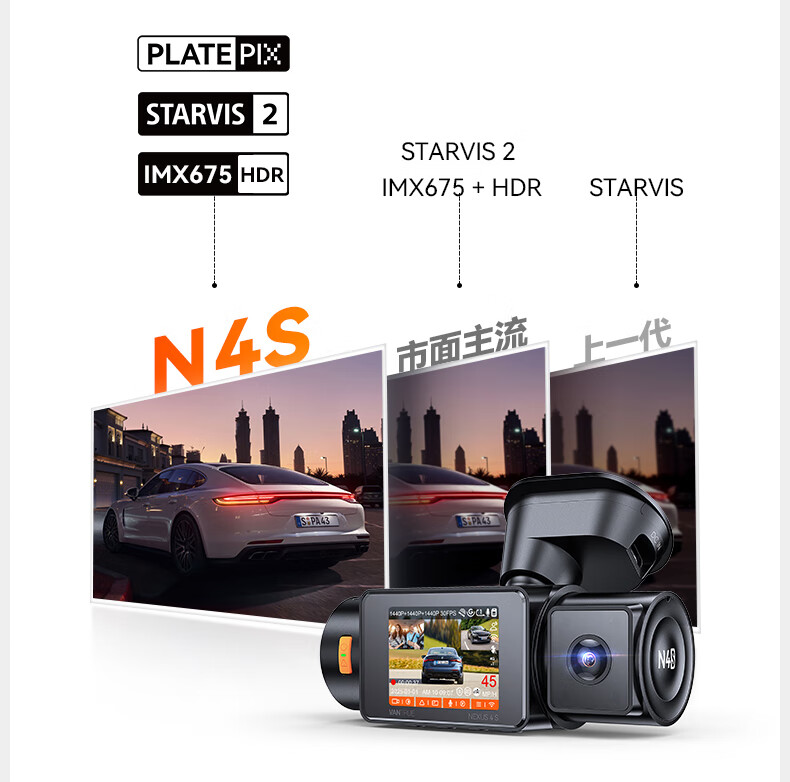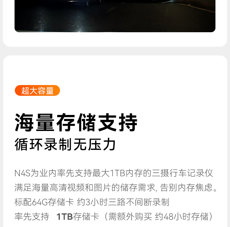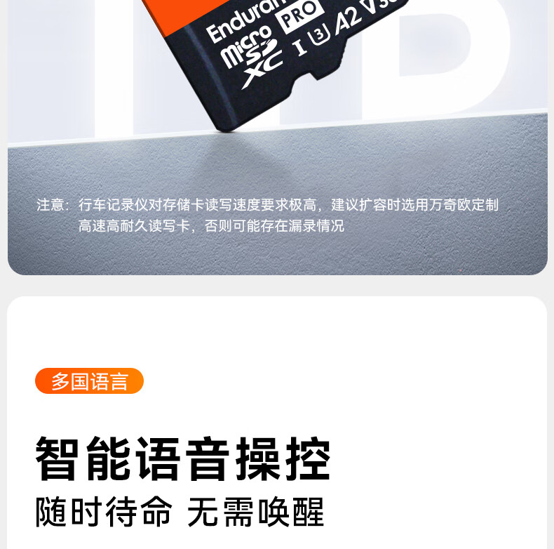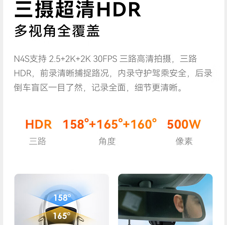 万奇欧行车记录仪N4S 超清2.5K前后三镜头高速WiFi 停车监控语音声控 超清三录+HDR 标配(N4S+64G内存卡)