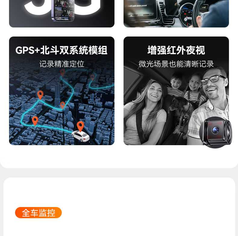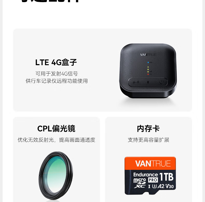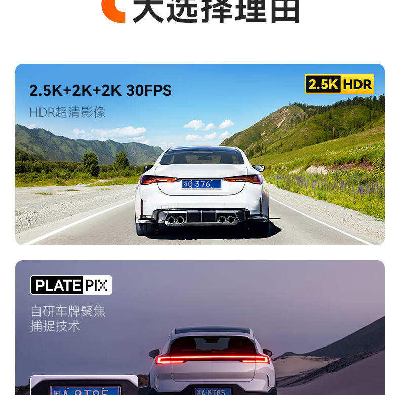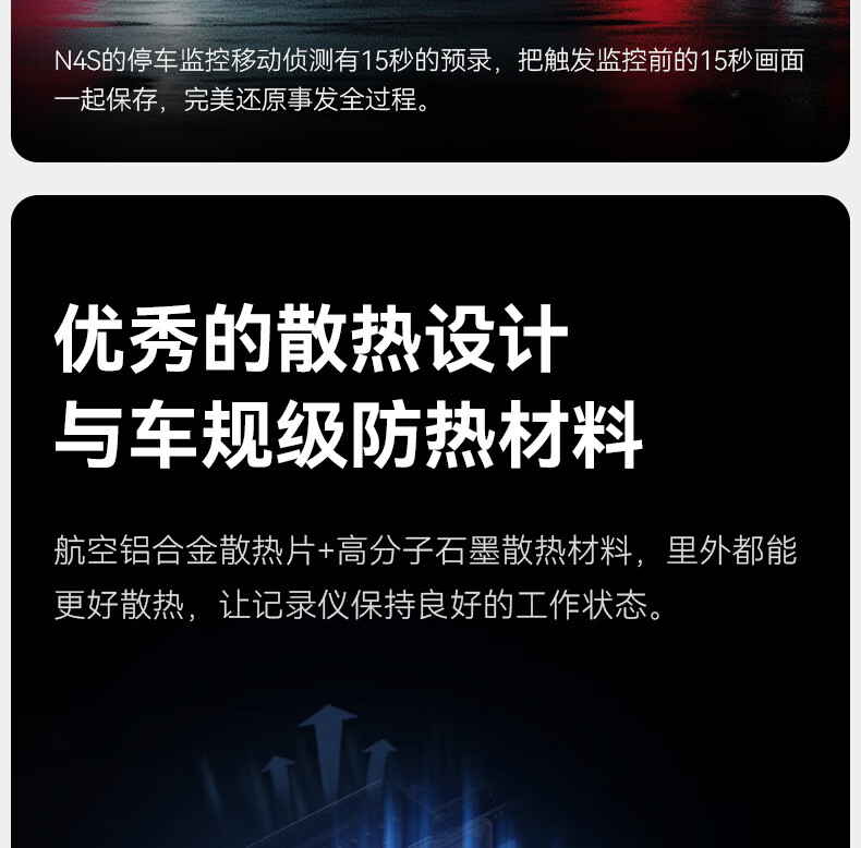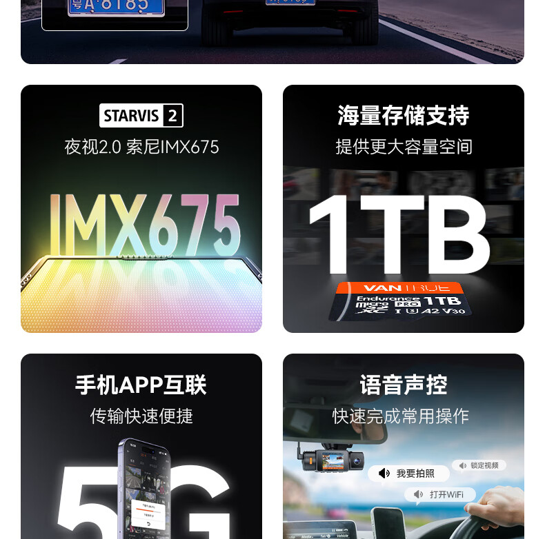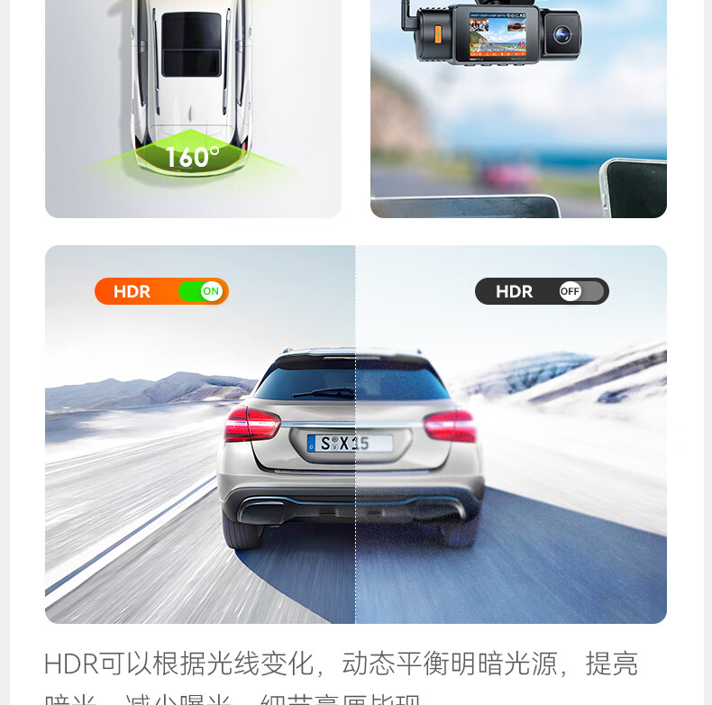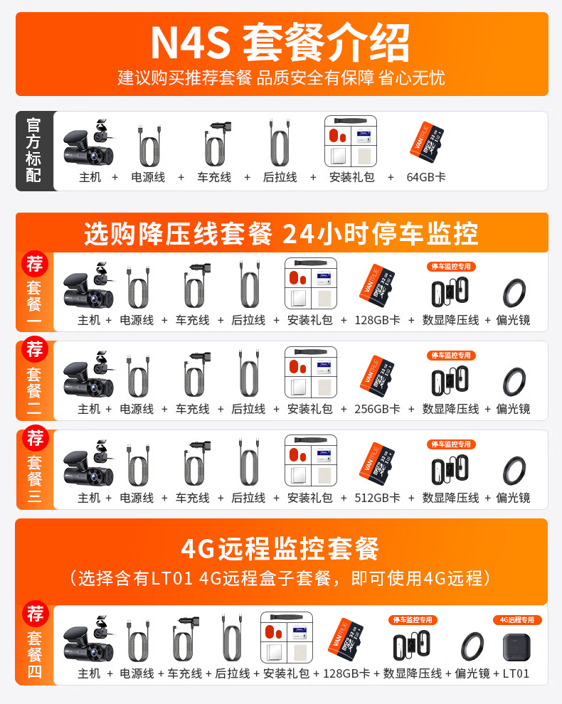 万奇欧行车记录仪N4S 超清2.5K前后三镜头高速WiFi 停车监控语音声控 超清三录+HDR 标配(N4S+64G内存卡)