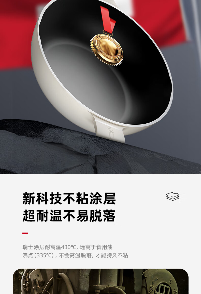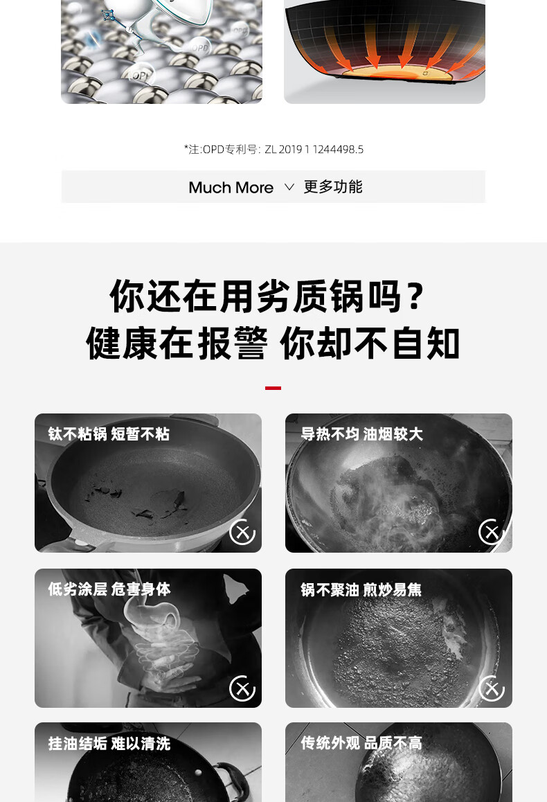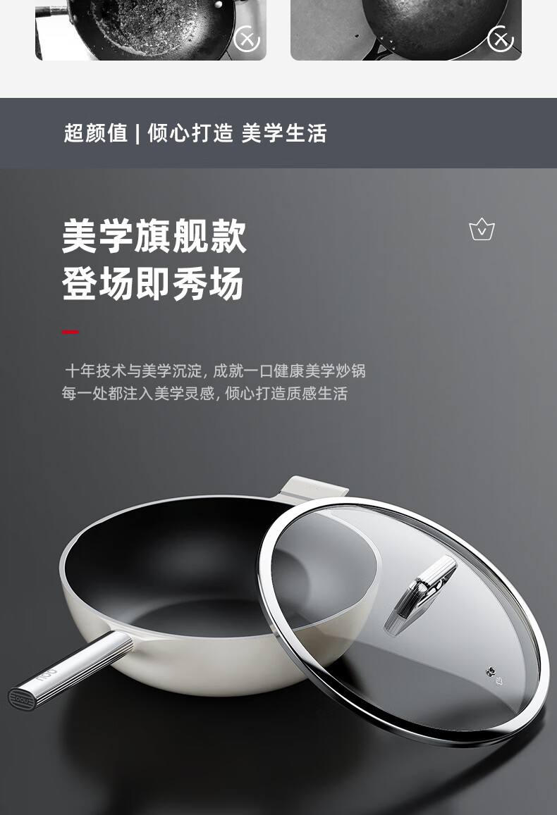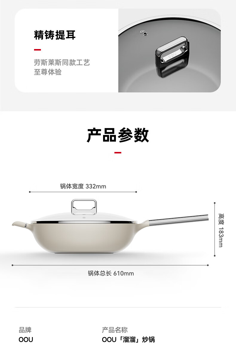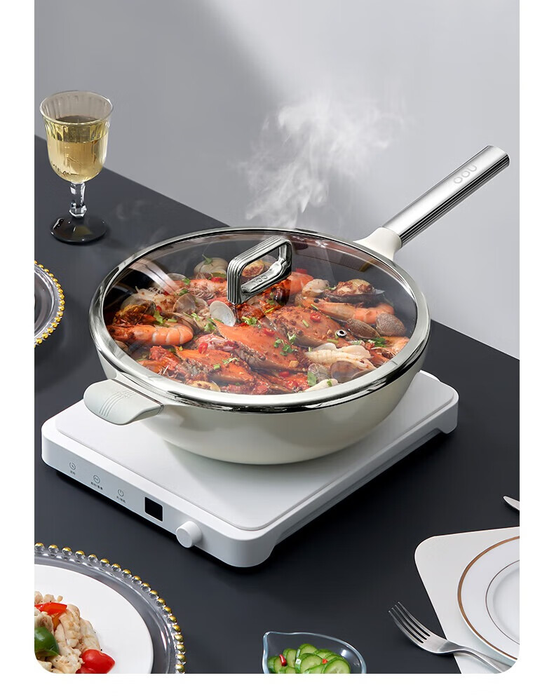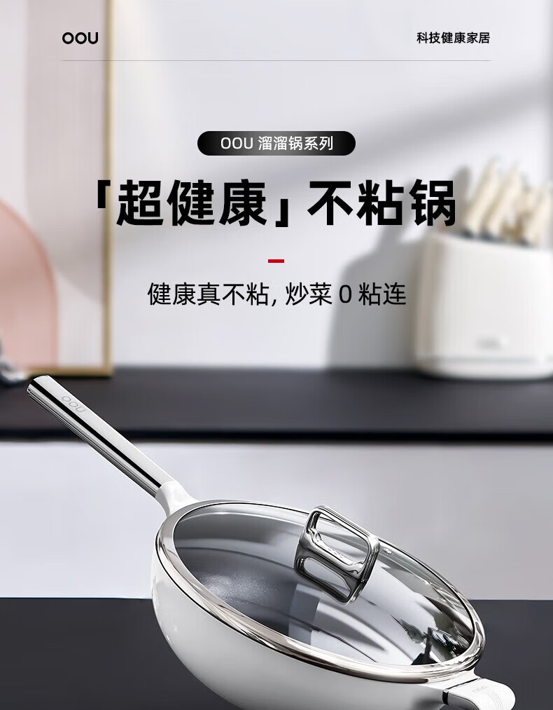 OOU不粘炒锅平底煎锅不锈钢 少油烟炒菜锅燃气电磁炉通用32cm|溜溜锅