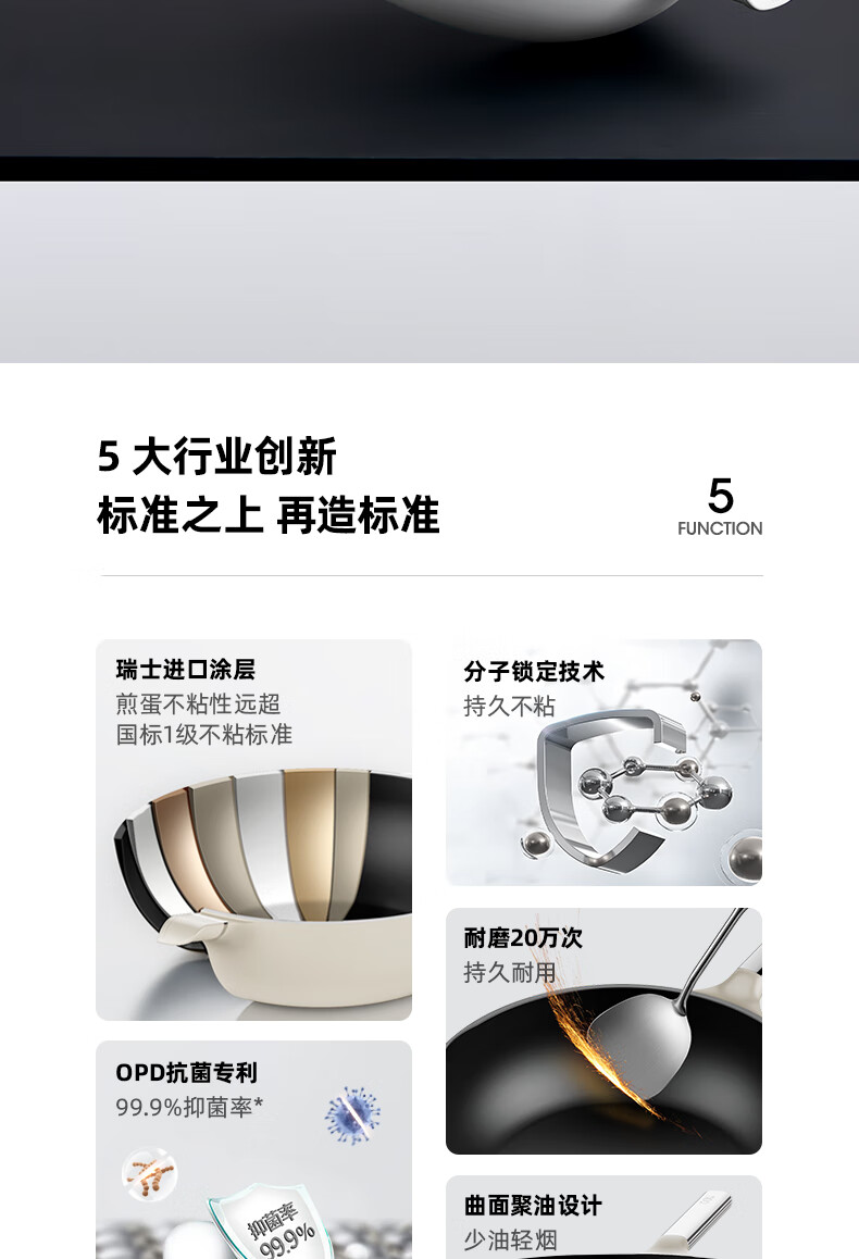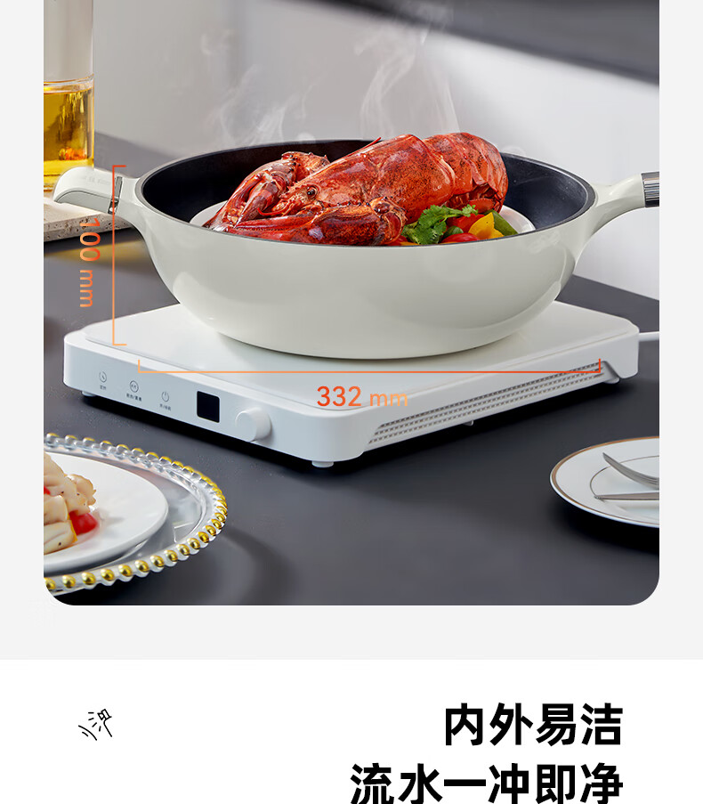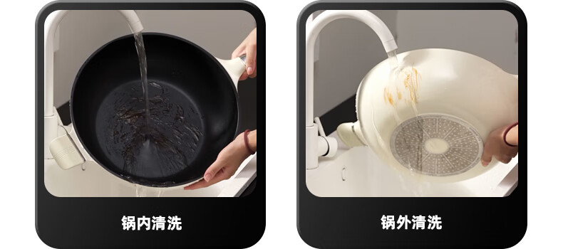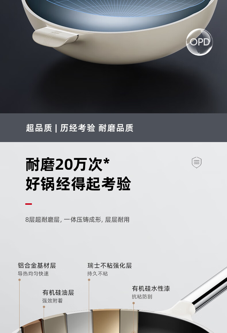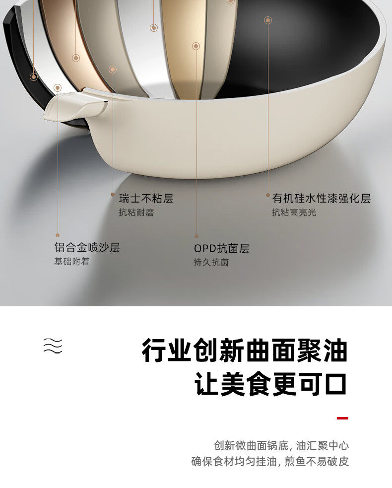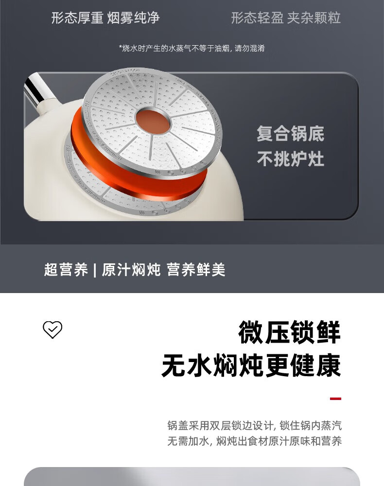 OOU不粘炒锅平底煎锅不锈钢 少油烟炒菜锅燃气电磁炉通用32cm|溜溜锅