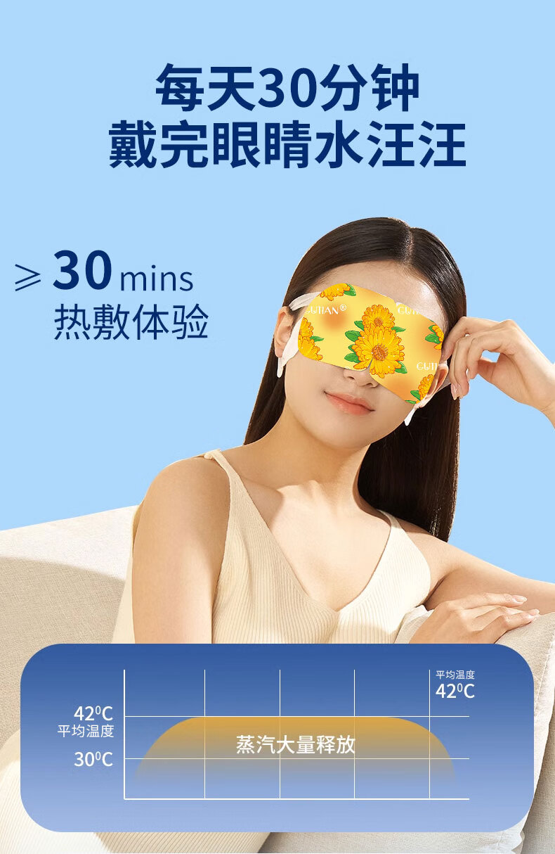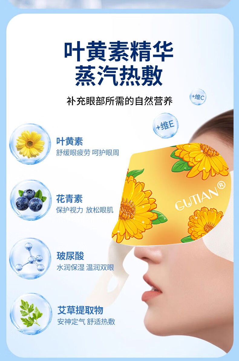 顾甜叶黄素花青素热敷蒸汽眼罩加热遮光睡眠眼罩自发热男女通用 30片-新升级草本高效护眼