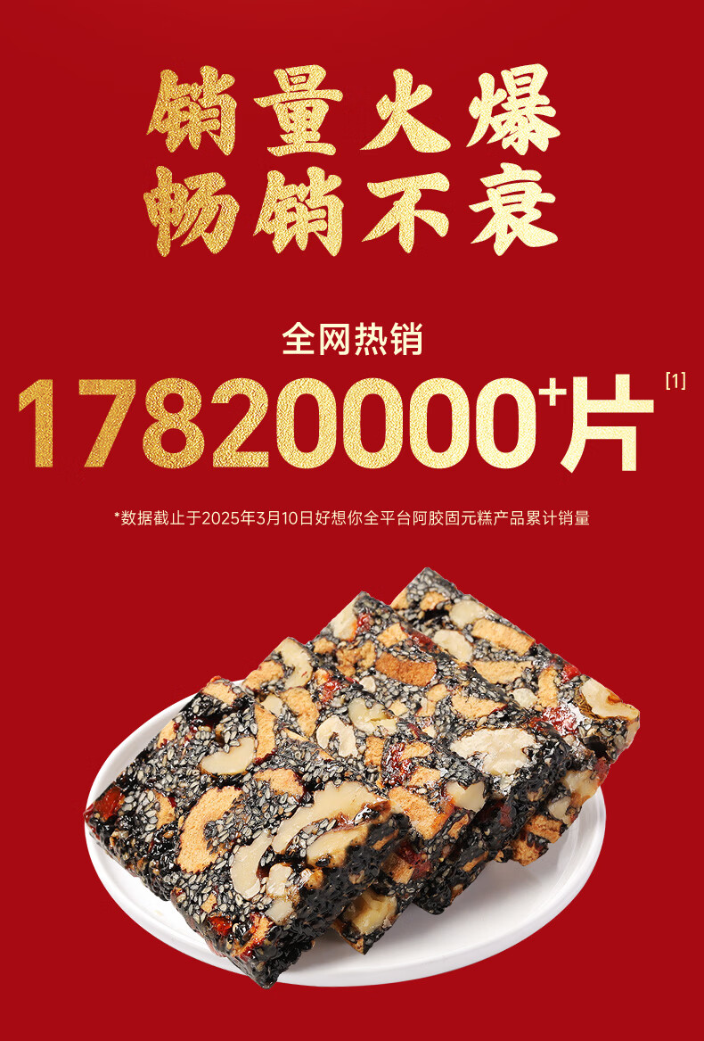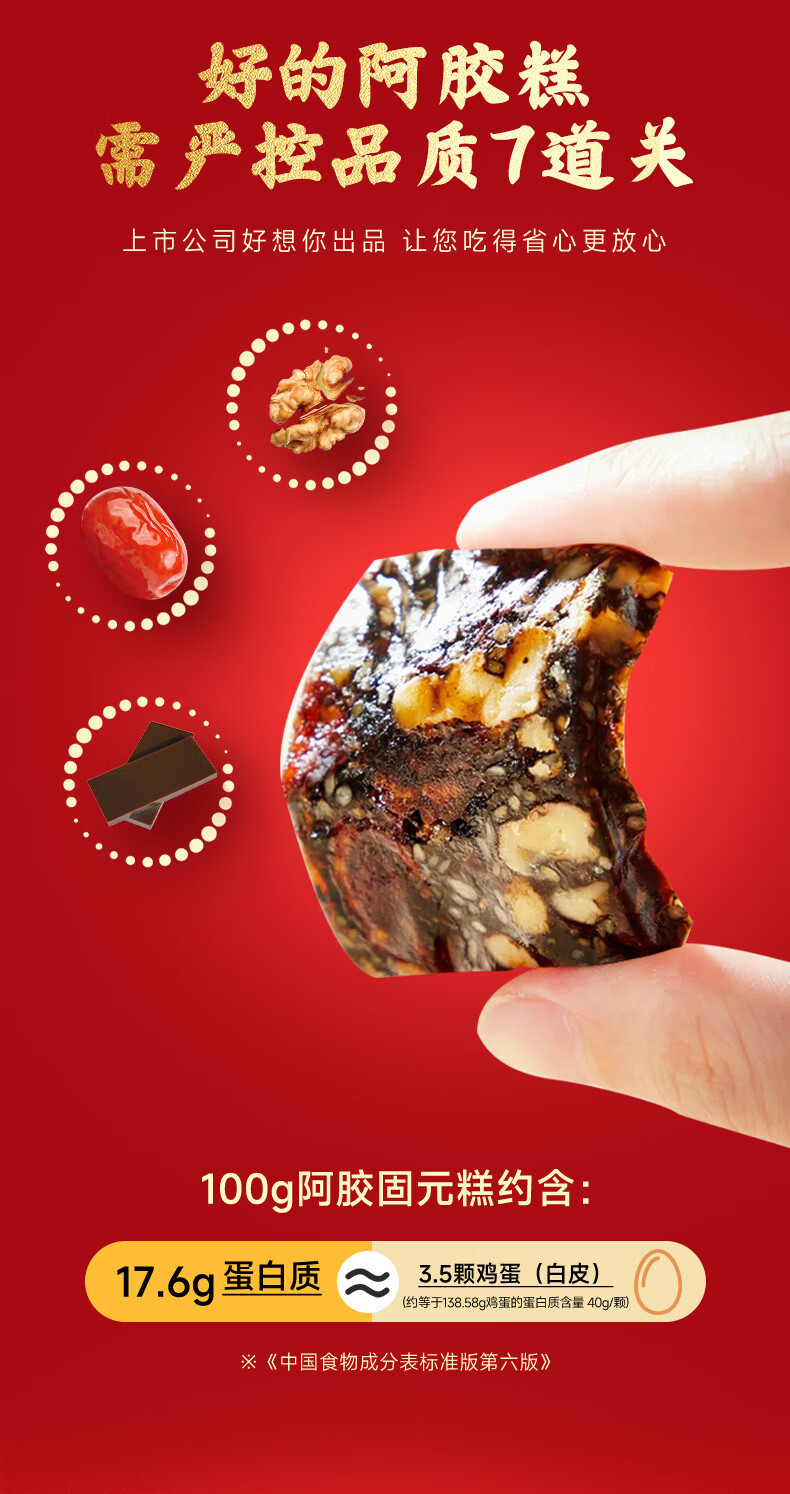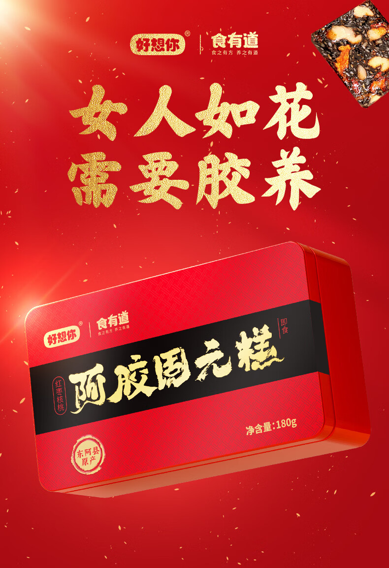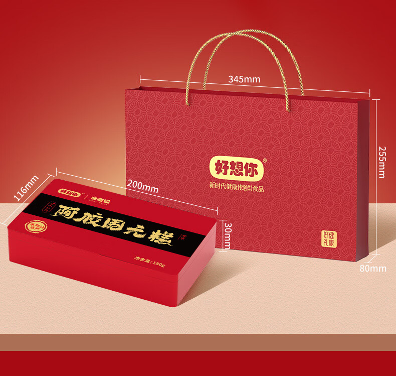好想你_每日红枣免洗即食灰枣蜜饯果干零食新疆特产大枣煮粥煲汤礼盒装 阿胶固元糕180g*3 +手提袋