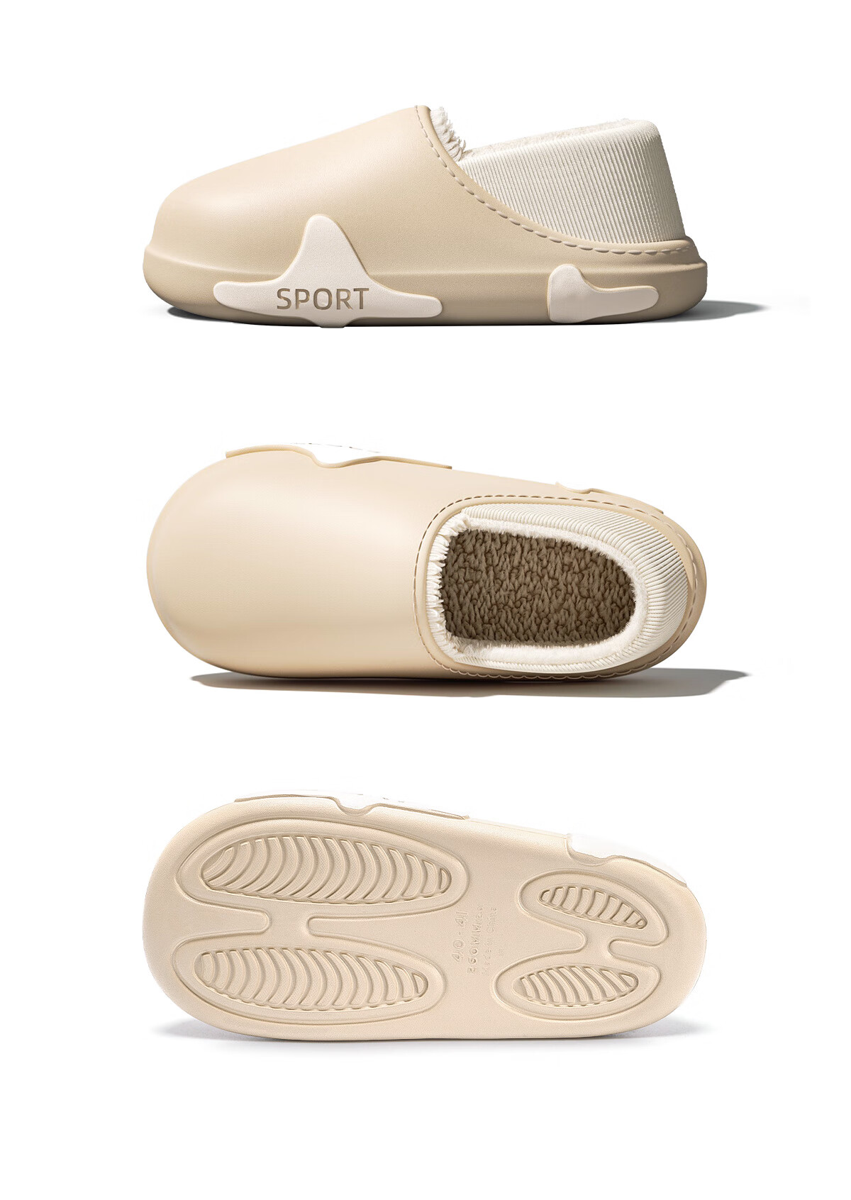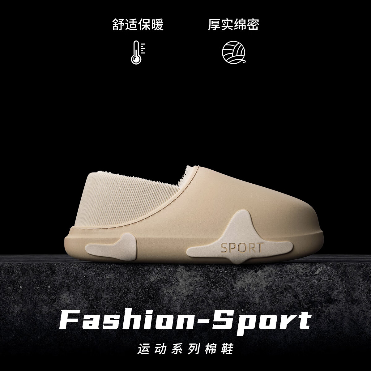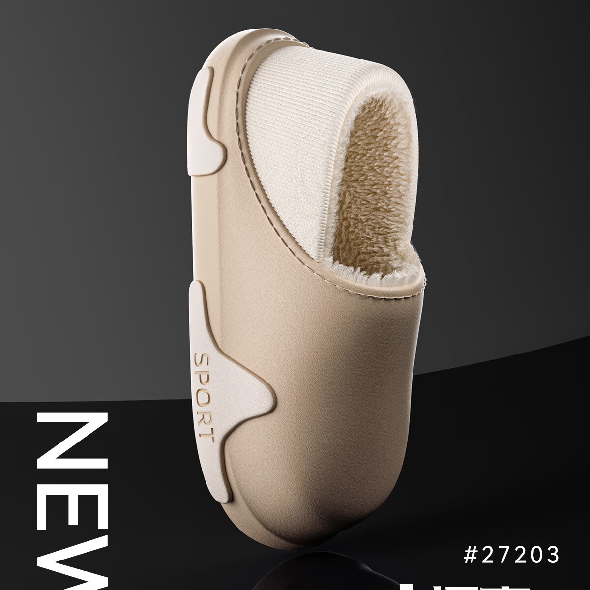 洁丽雅防水棉拖鞋男士秋冬季家居室内防滑防臭保暖踩屎感全包跟棉鞋女款 乳咖 42-43 【适合41-42码】