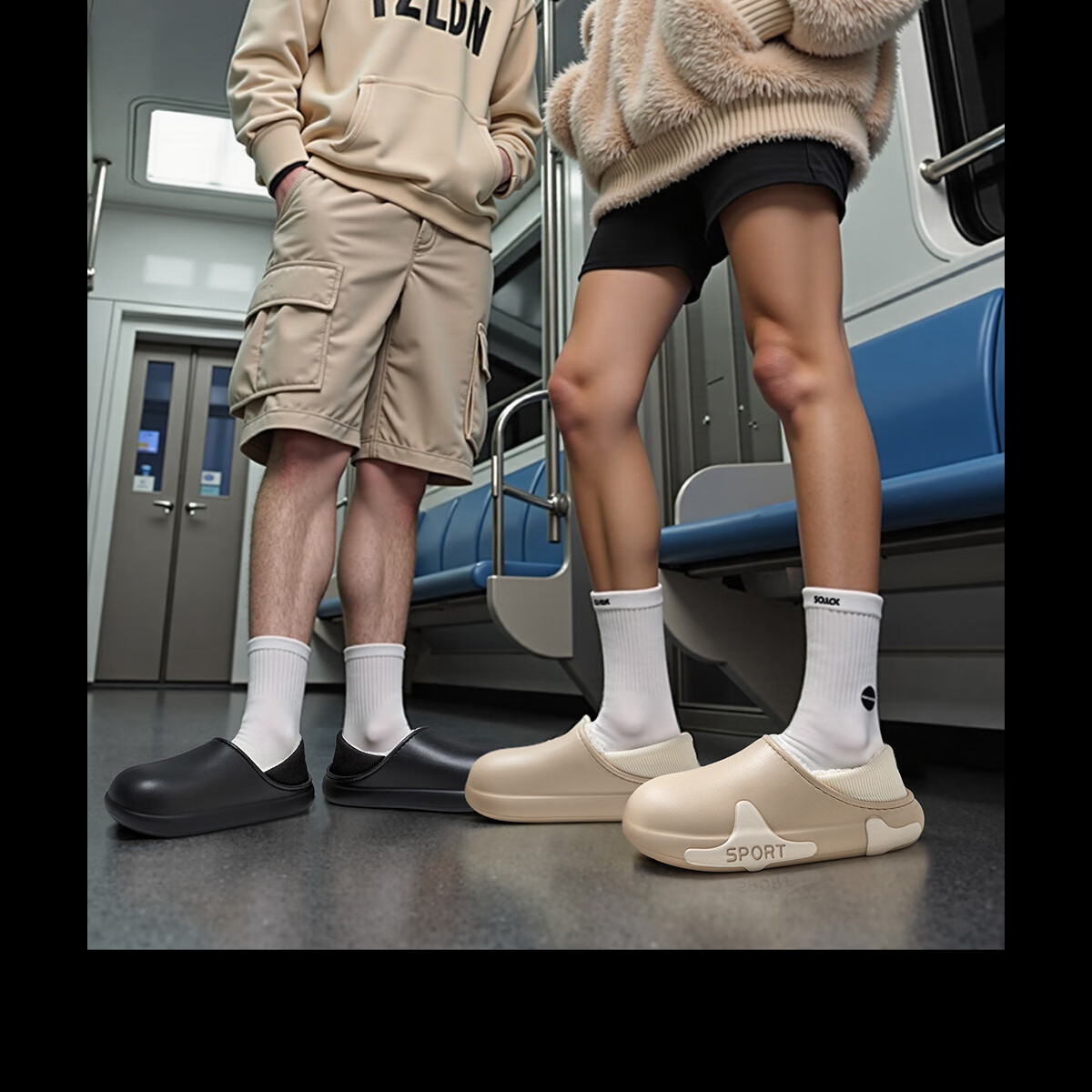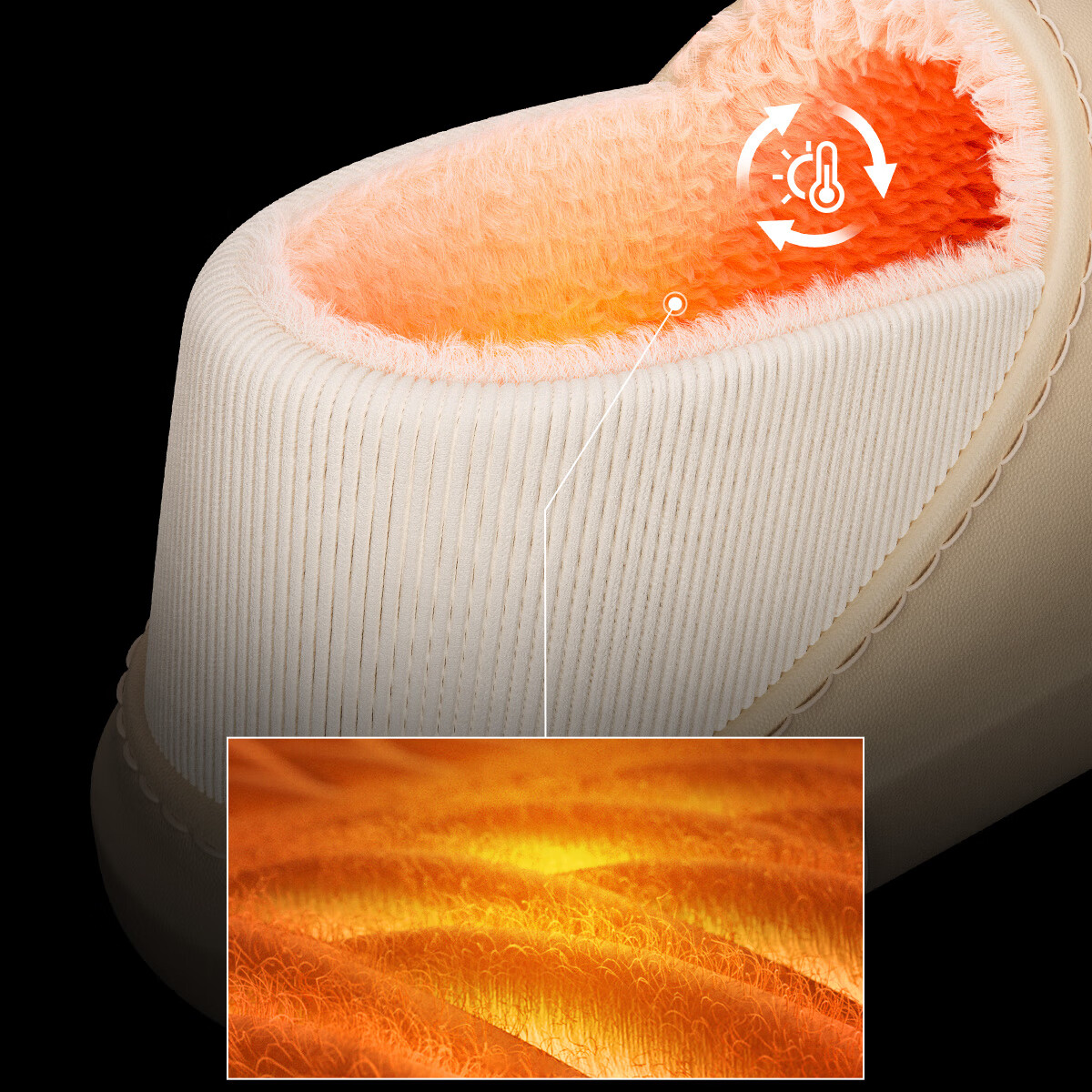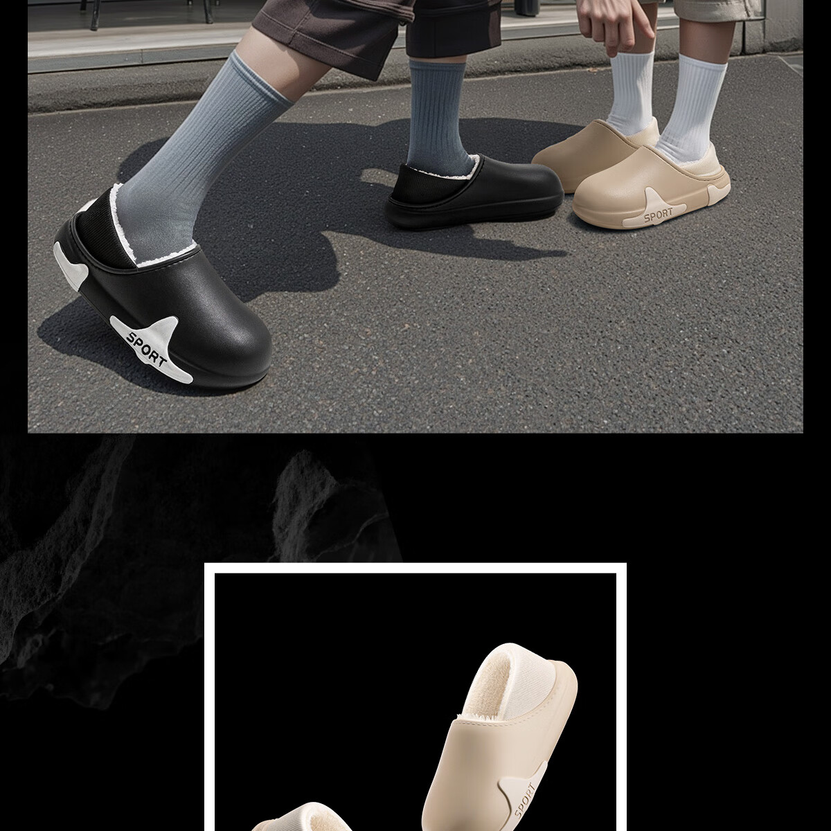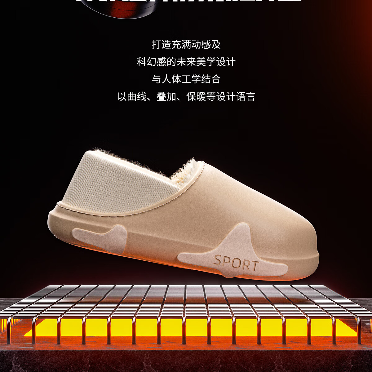 洁丽雅防水棉拖鞋男士秋冬季家居室内防滑防臭保暖踩屎感全包跟棉鞋女款 乳咖 42-43 【适合41-42码】