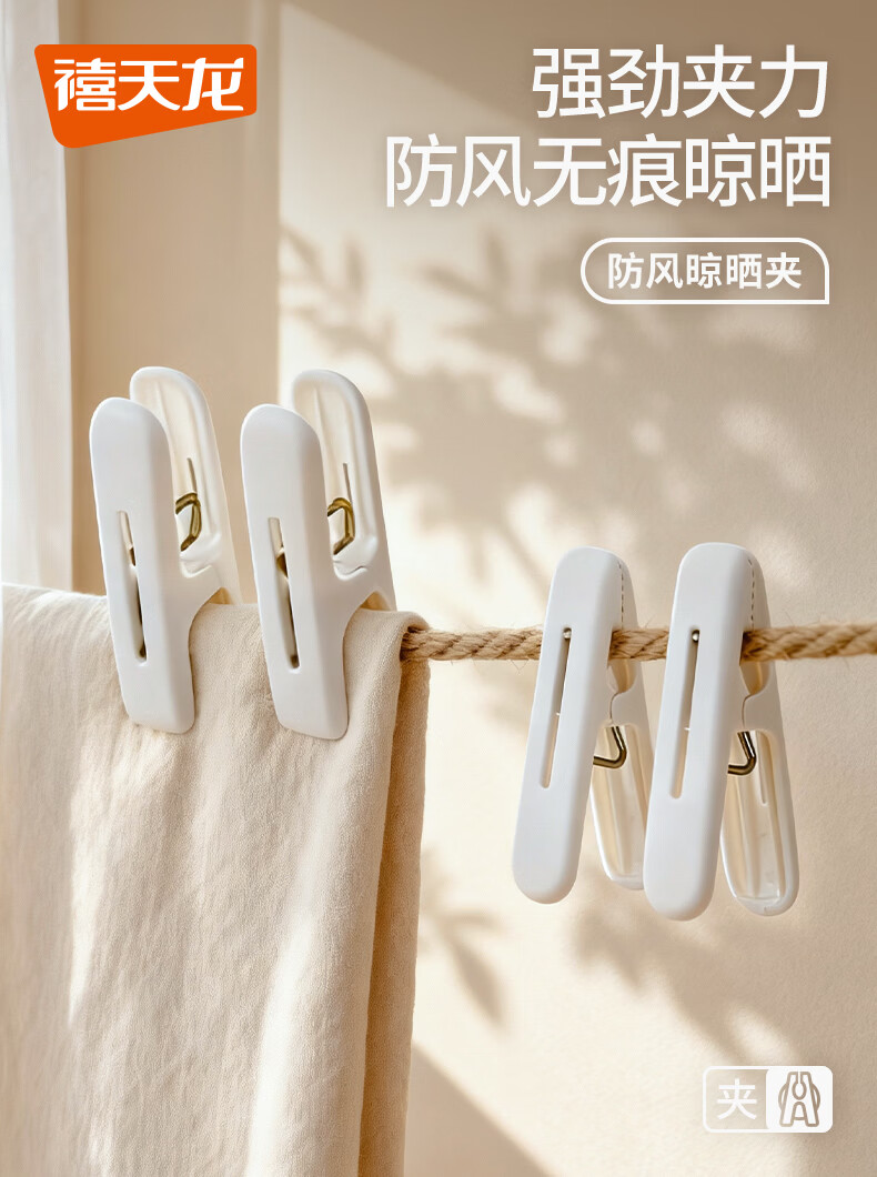 禧天龙 防风晾晒夹晾衣架夹子大小号套装夹多功能零食夹 多功能收纳架18个装