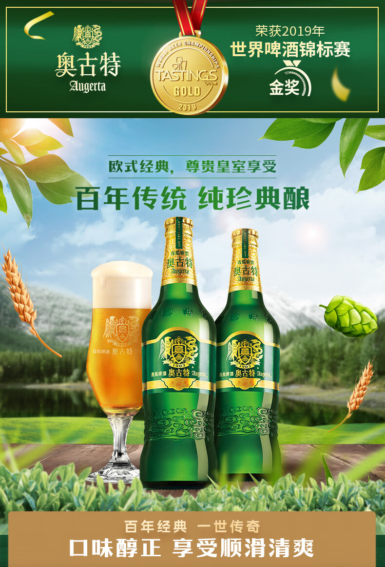 奥古特啤酒原麦汁浓度12°P 瓶装啤酒整箱 年货送礼 480mL 6瓶 整箱装 2箱装(共12瓶)