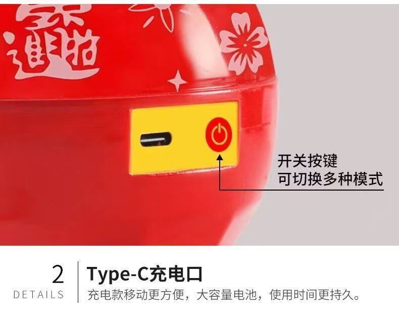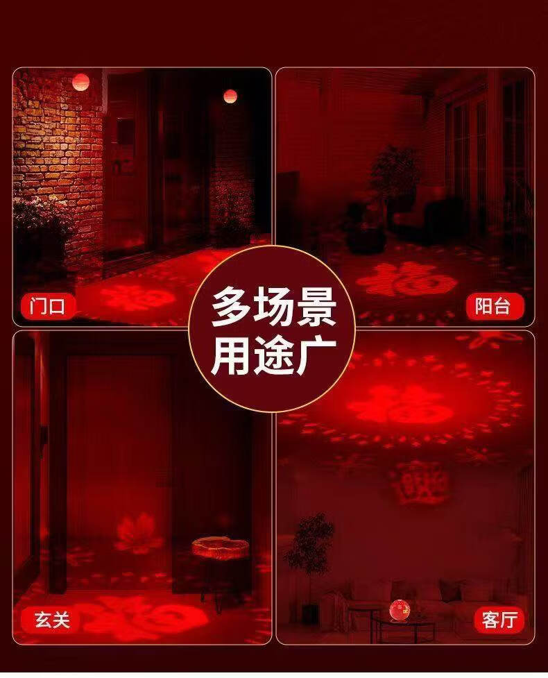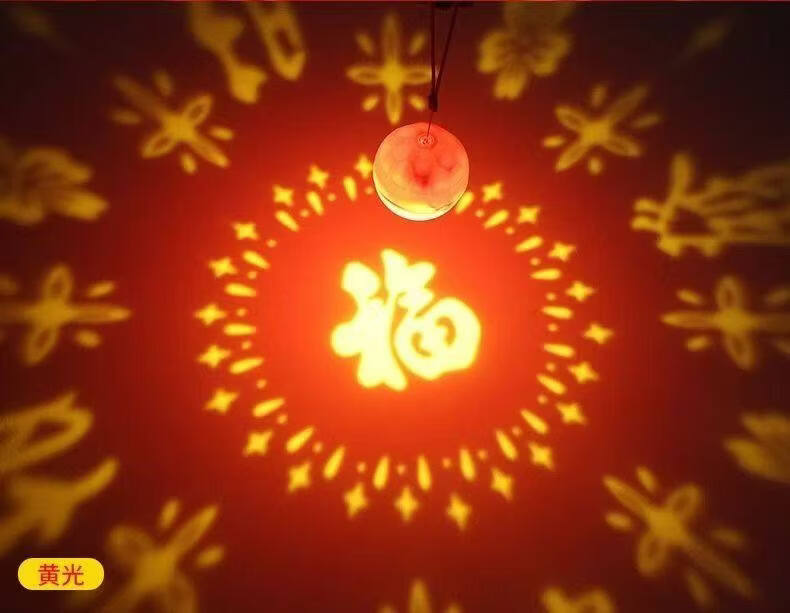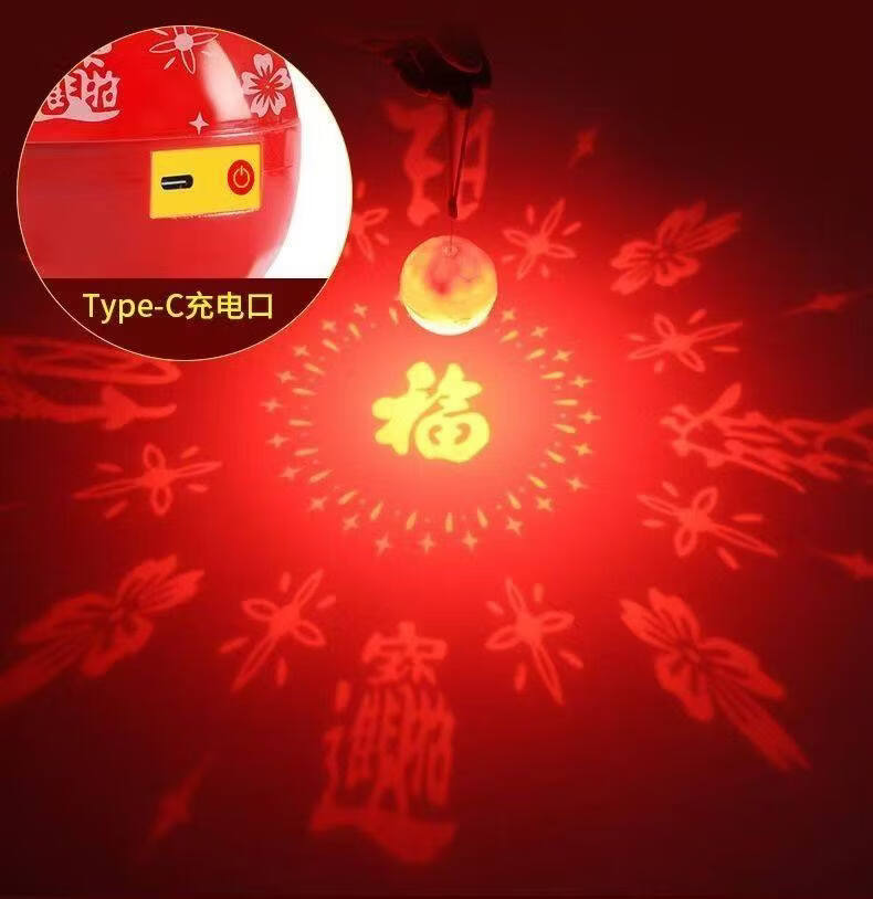 振牛春节可充电七彩变色福字投影灯便携式手提灯笼氛围灯迎春接福喜庆 充电款福字灯-自动变色-送灯杆【2只装】