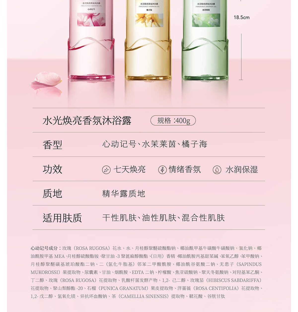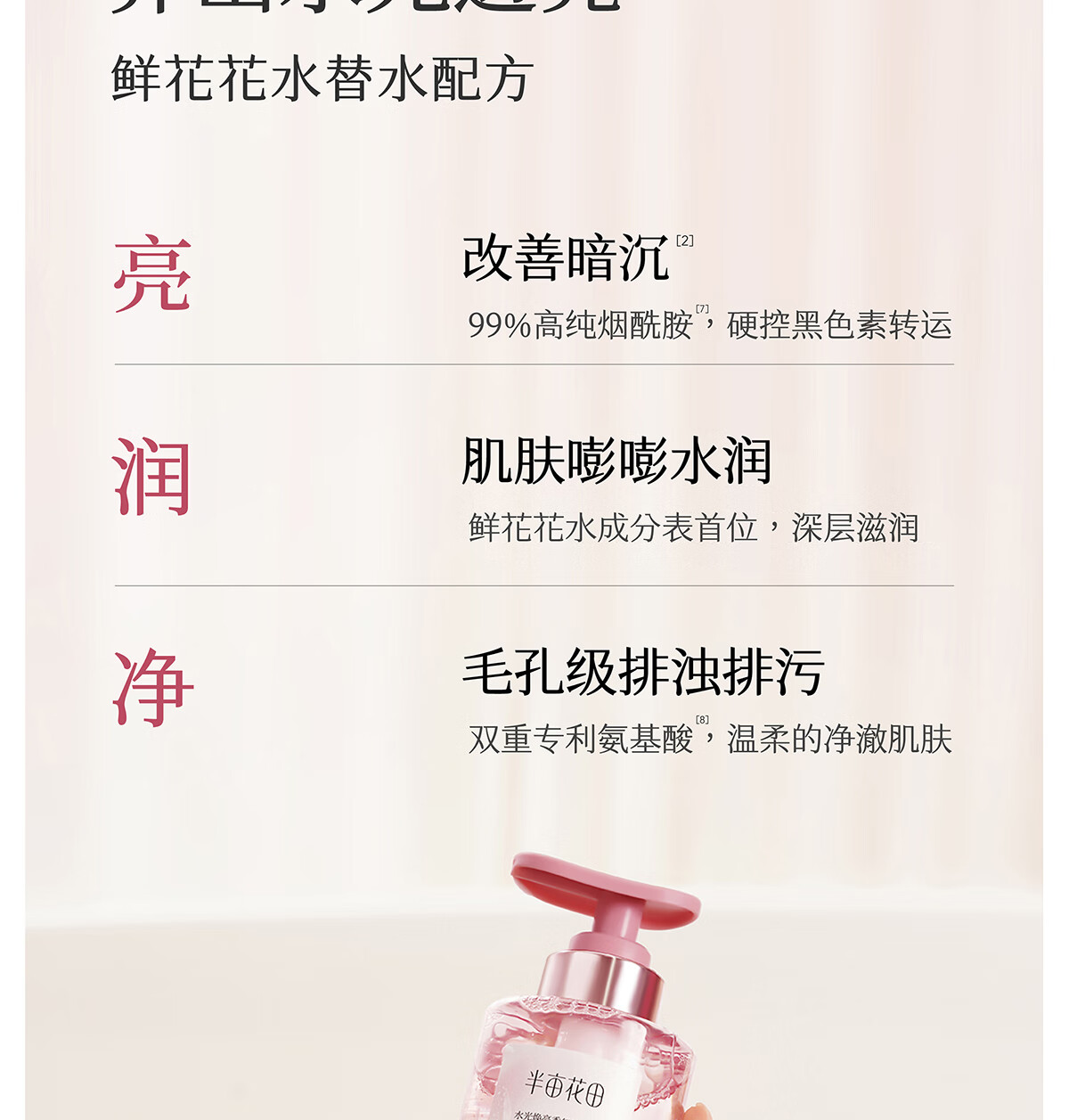 半亩花田【50%鲜花水】热巴同款水光沐浴露持久留香清洁滋润提亮沐浴液