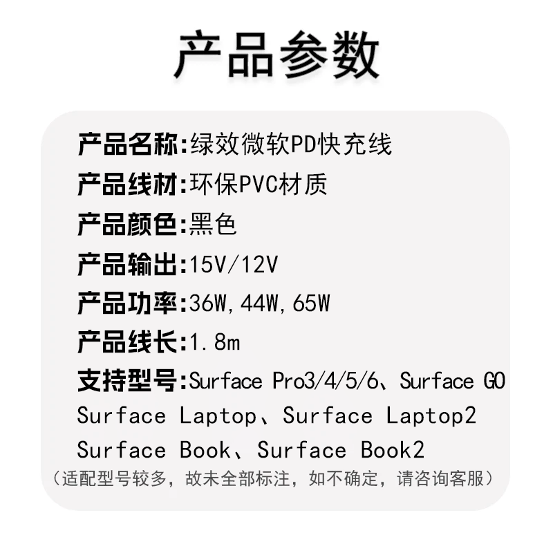 绿效微软Surface充电器线适用Pro7/6/5/4GO/laptop平板笔记本电脑电源适配器线Type-C转Surface磁吸