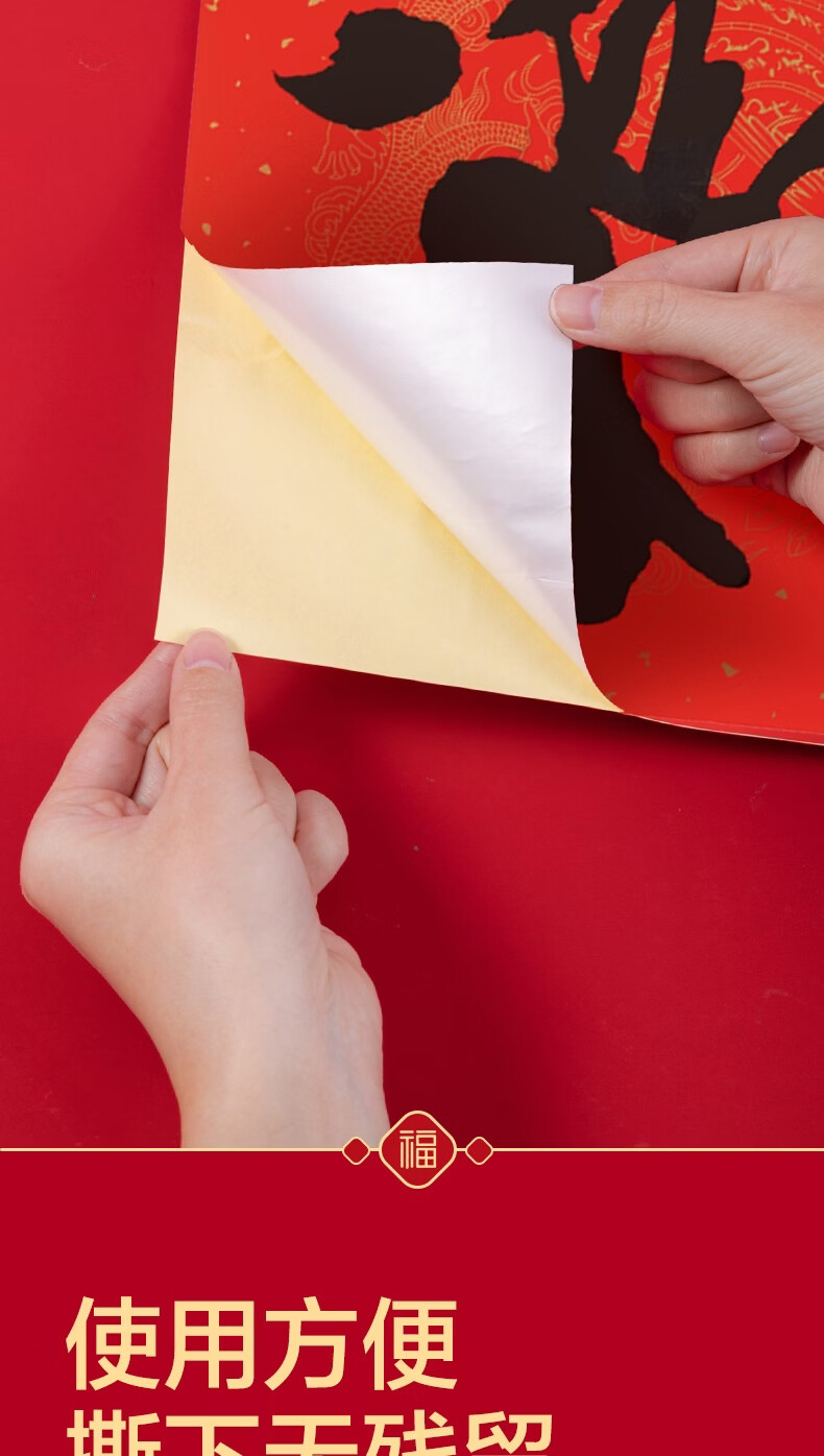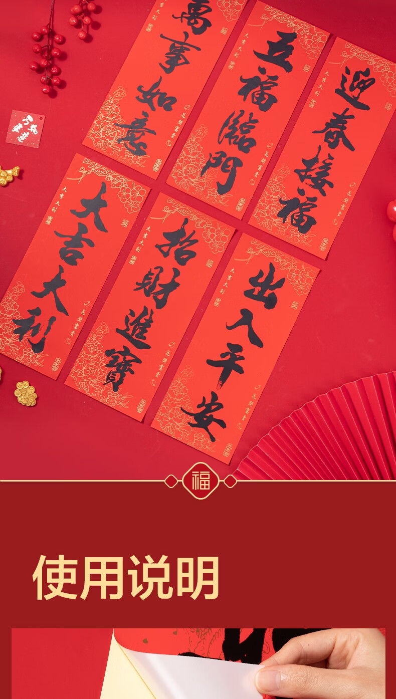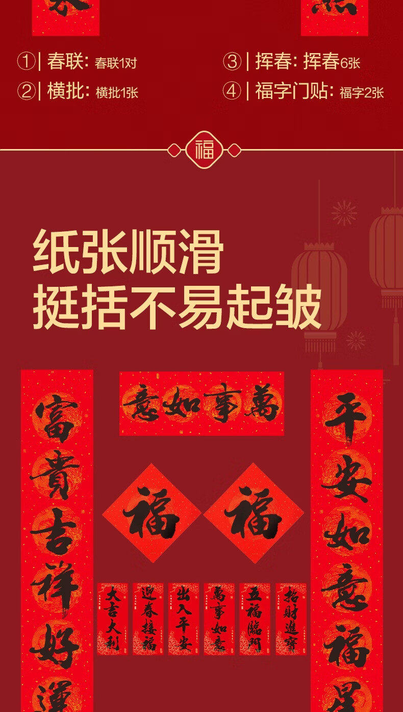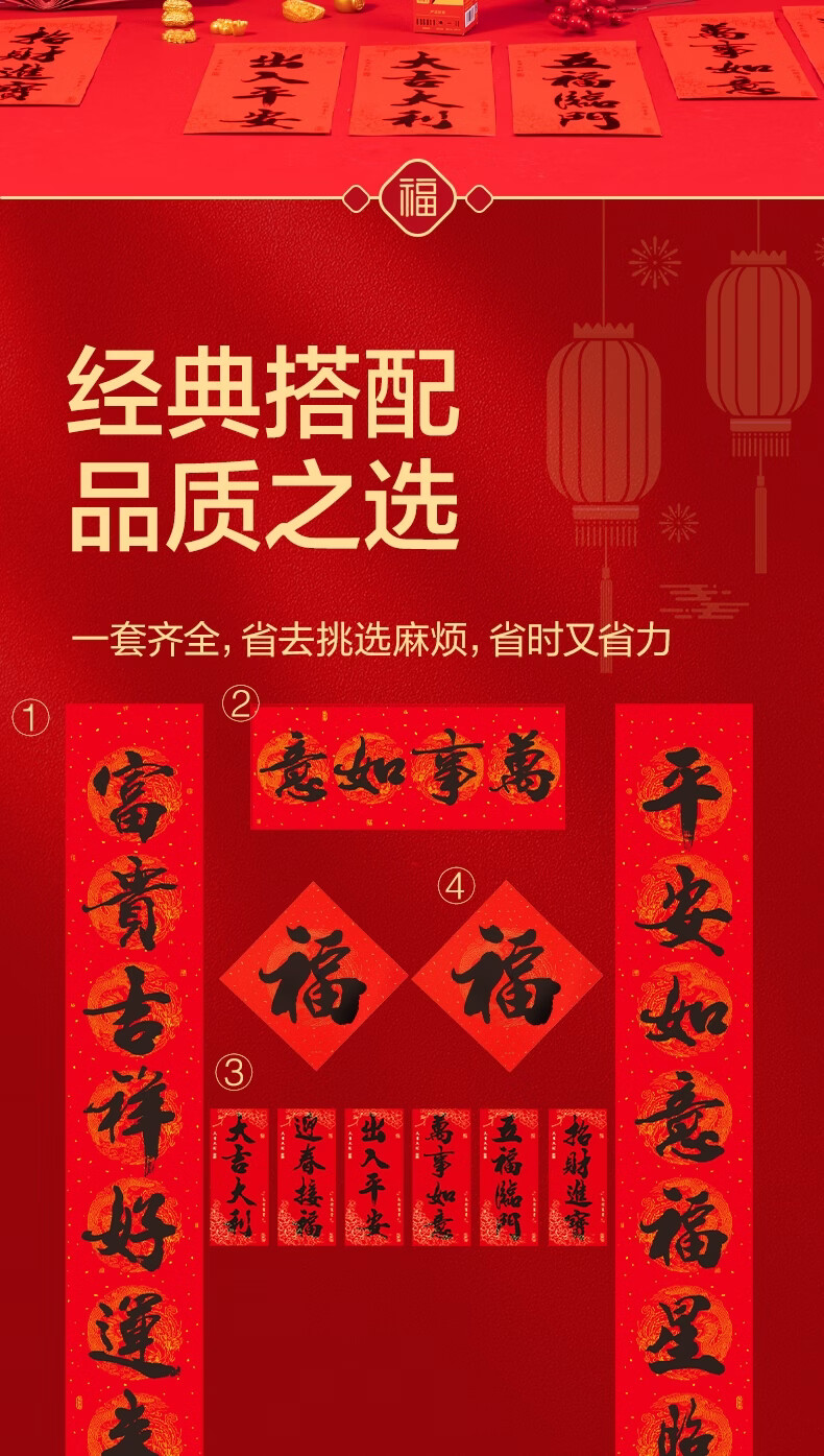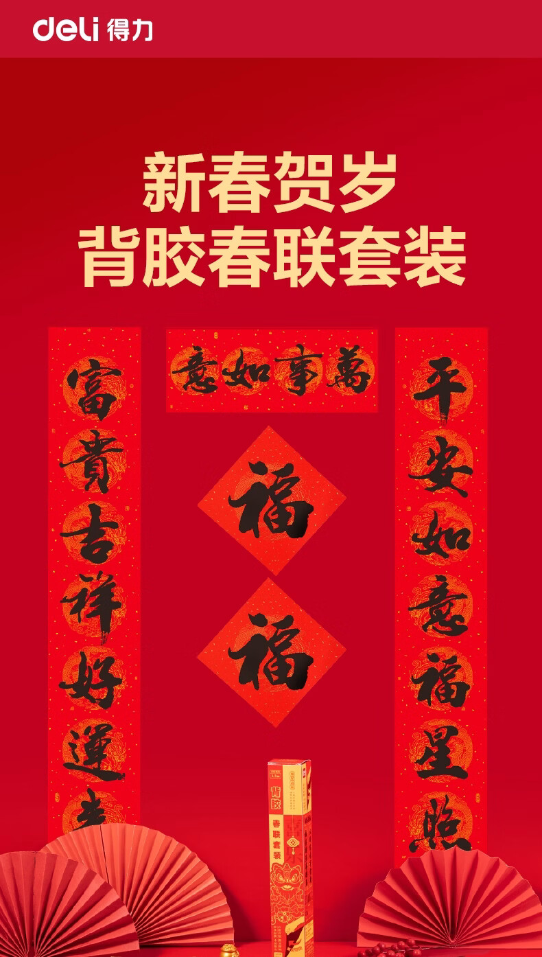 得力(deli)背胶款对联大礼包2026马年春节装饰品1.5米 万年红宣纸过年春联福字斗方红包窗花年饰10件免胶自粘