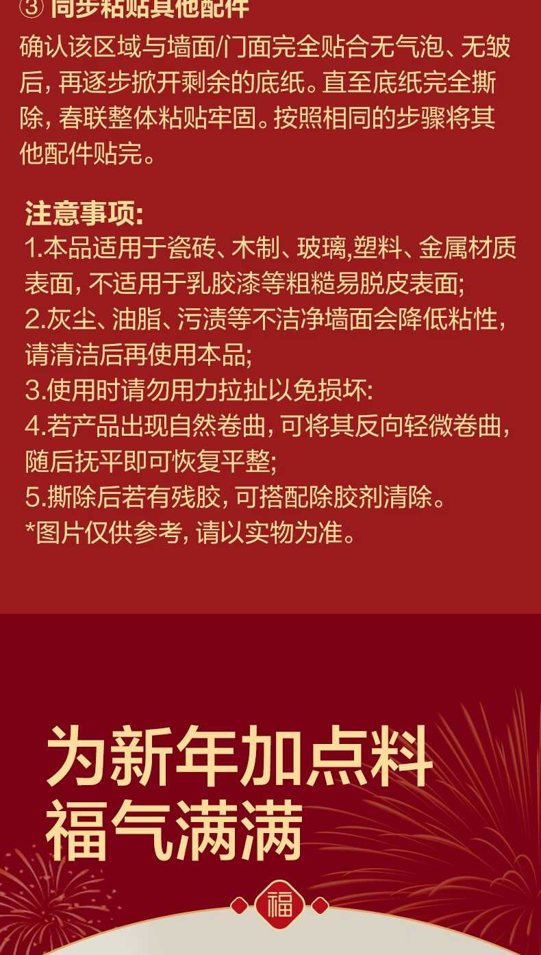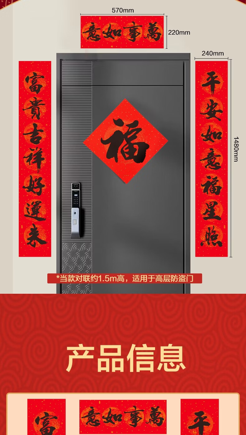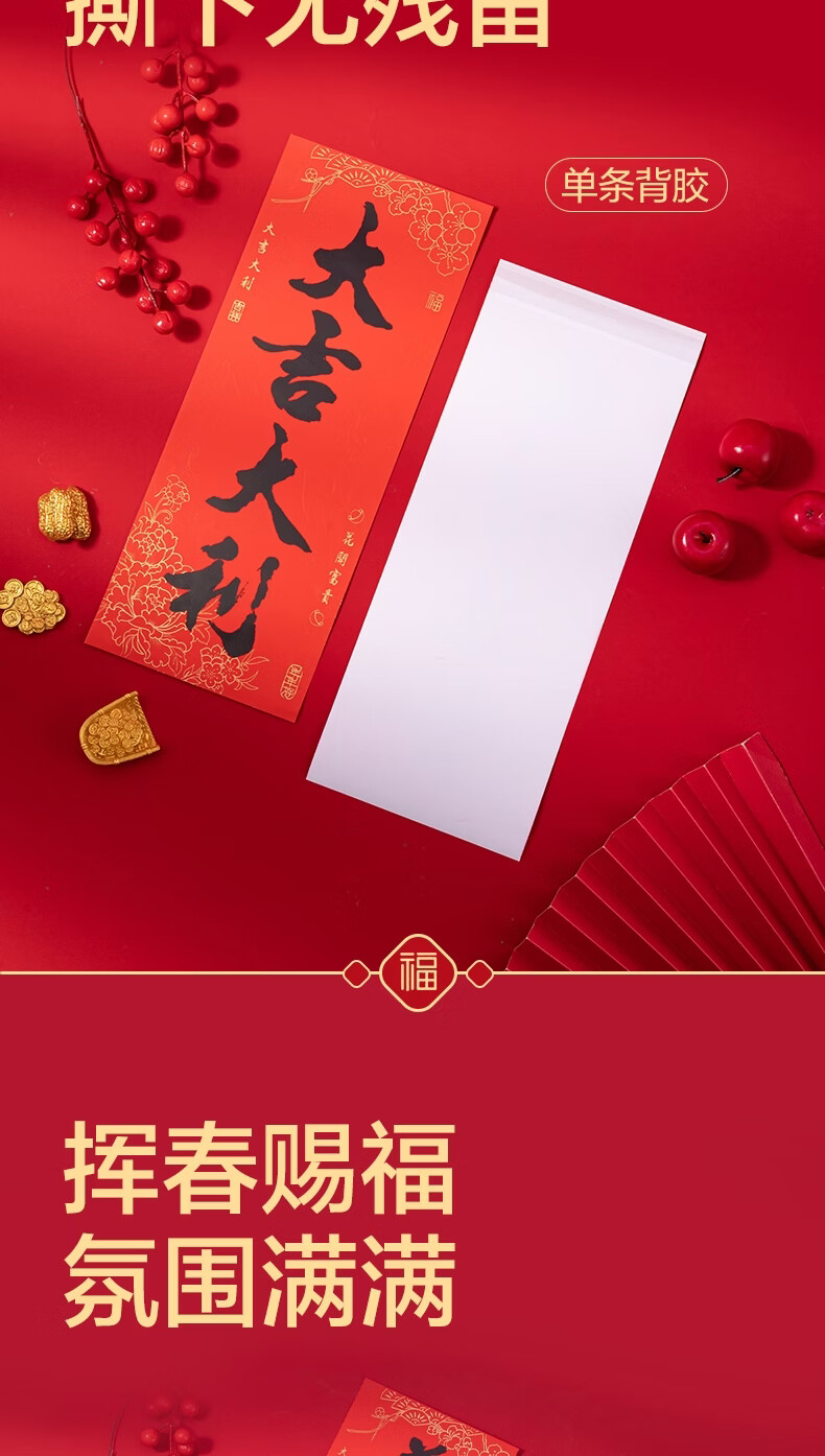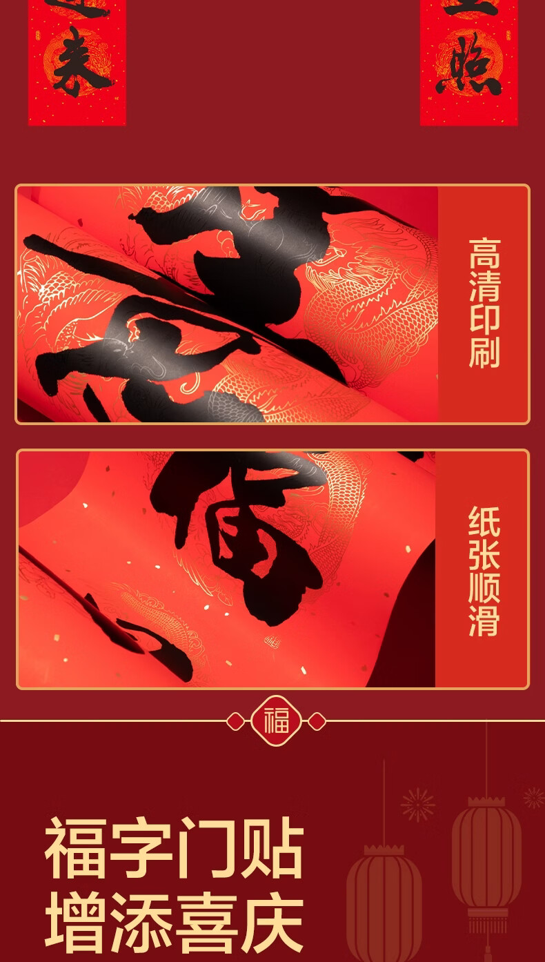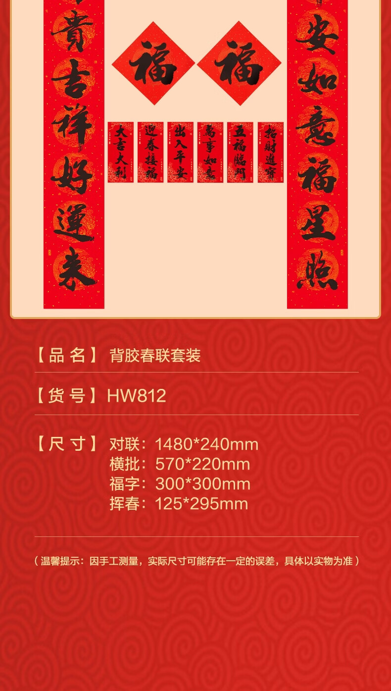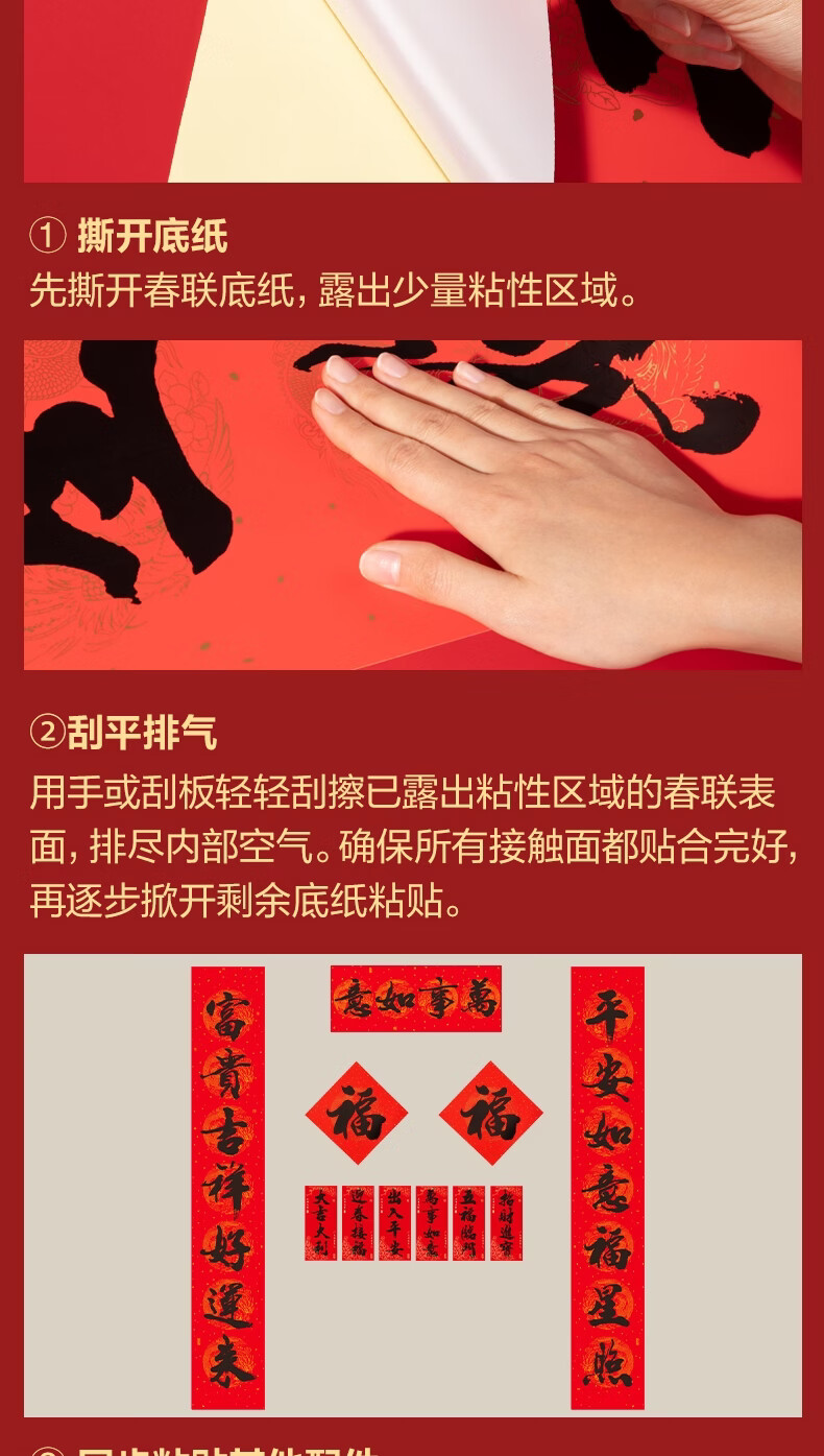 得力(deli)背胶款对联大礼包2026马年春节装饰品1.5米 万年红宣纸过年春联福字斗方红包窗花年饰10件免胶自粘