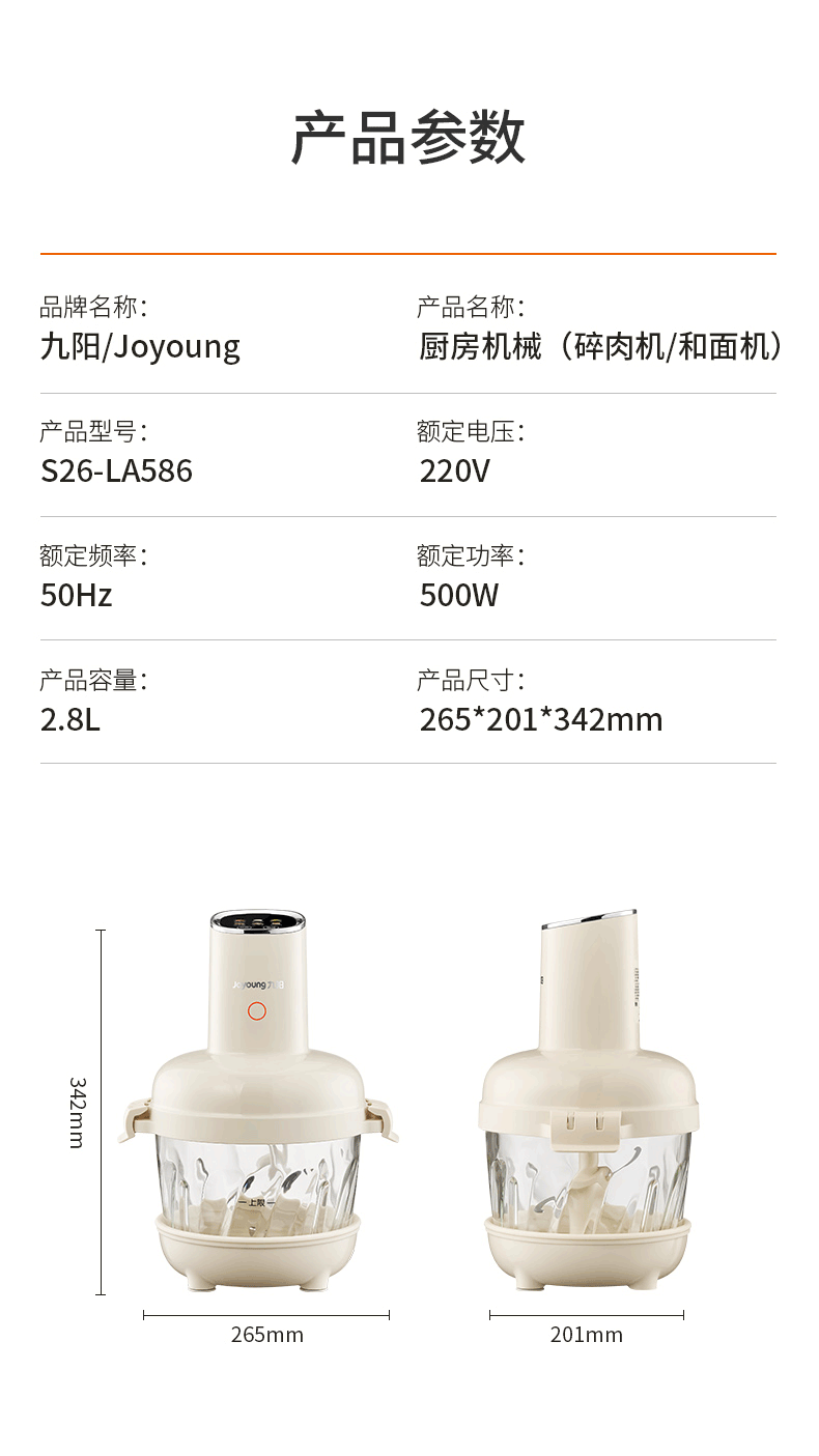 九阳(Joyoung)【政府补贴】绞肉和面绞菜机绞馅机饺子肉馅机2.8L大容量智能和面绞肉机【九阳漫生活】S26-LA586
