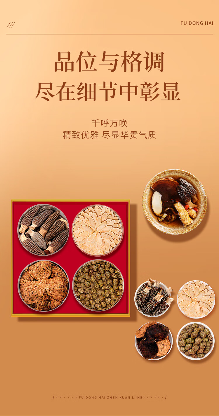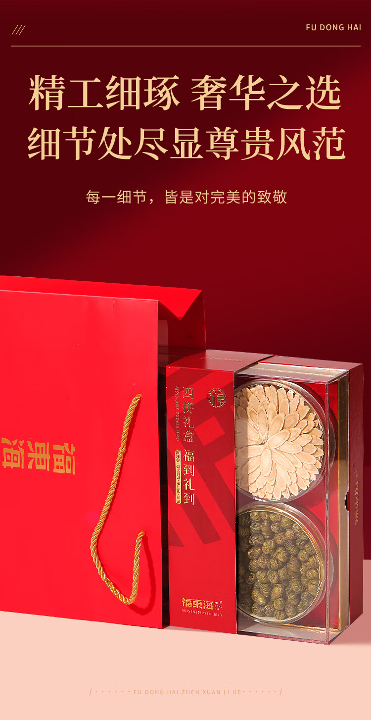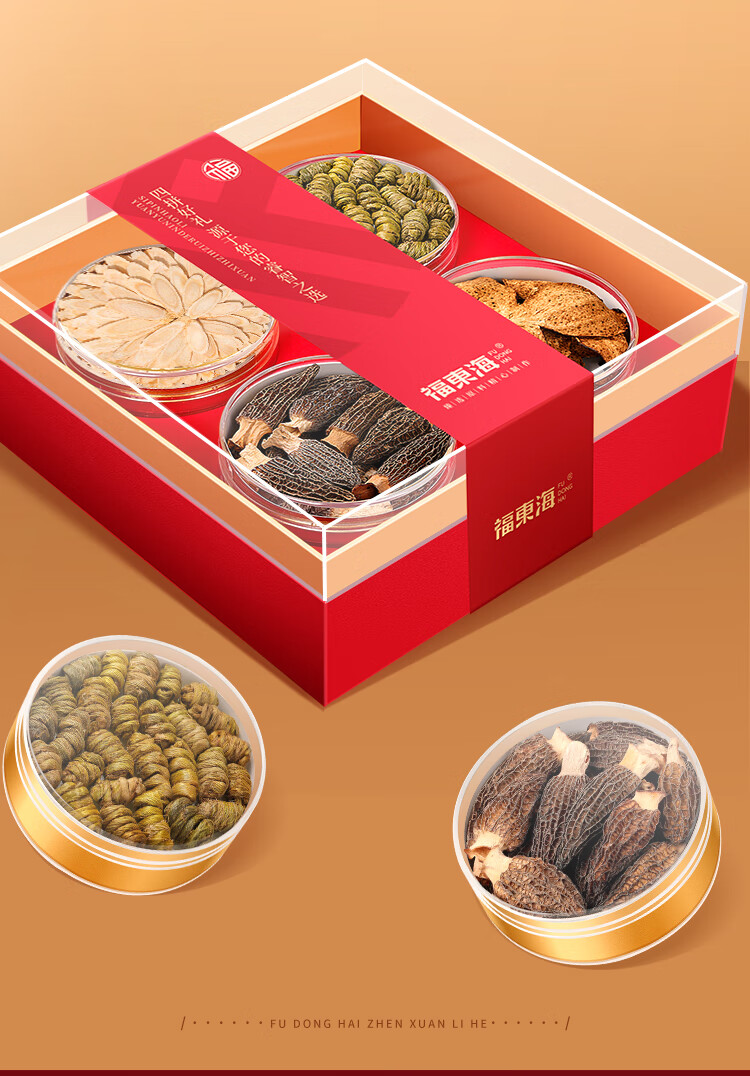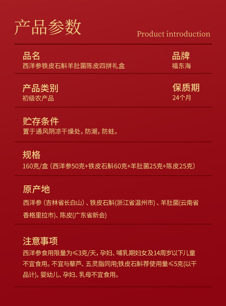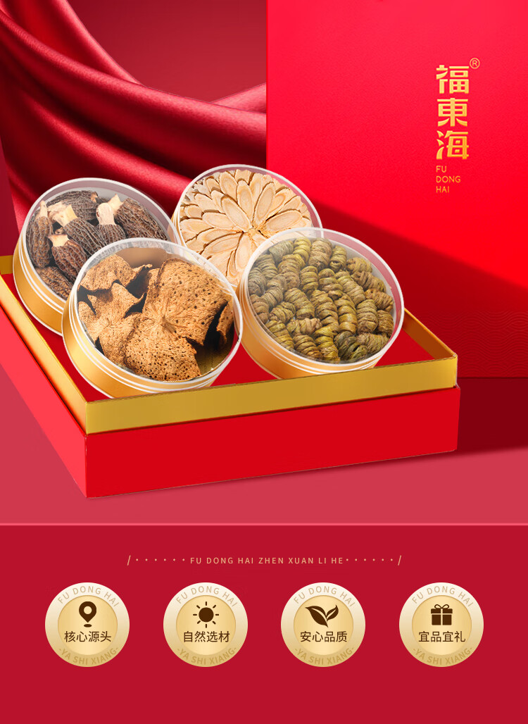 福东海西洋参铁皮石斛羊肚菌陈皮四拼礼盒160克 长白山花旗参菌菇滋补