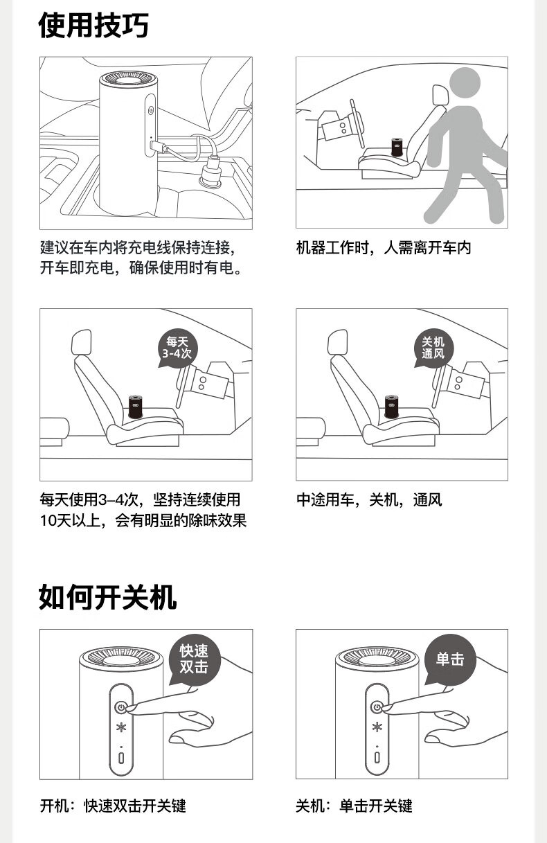 DGQ车载空气净化器新车除甲醛除异味汽车除味车内车用臭氧去异味甲醛