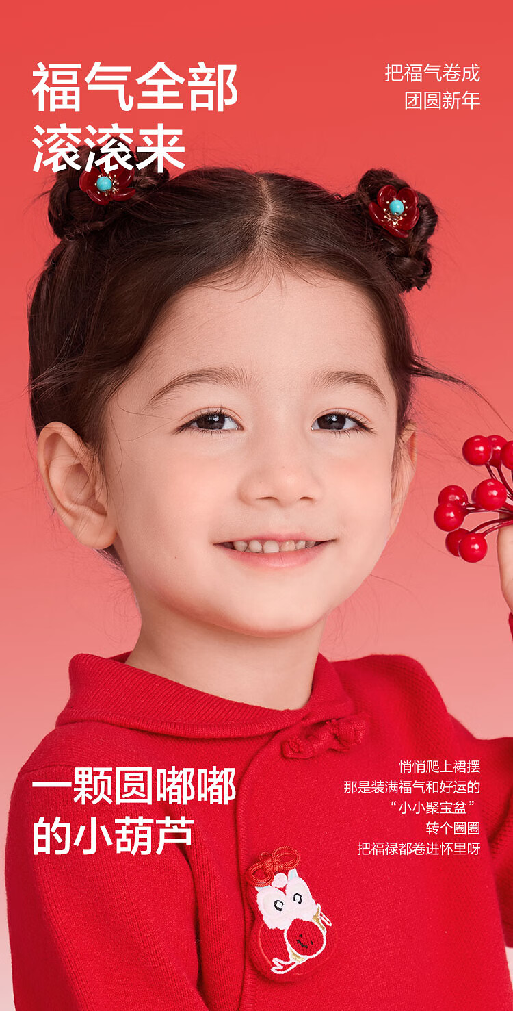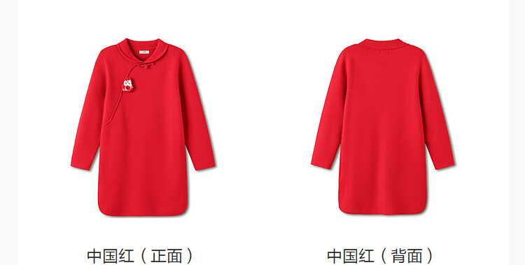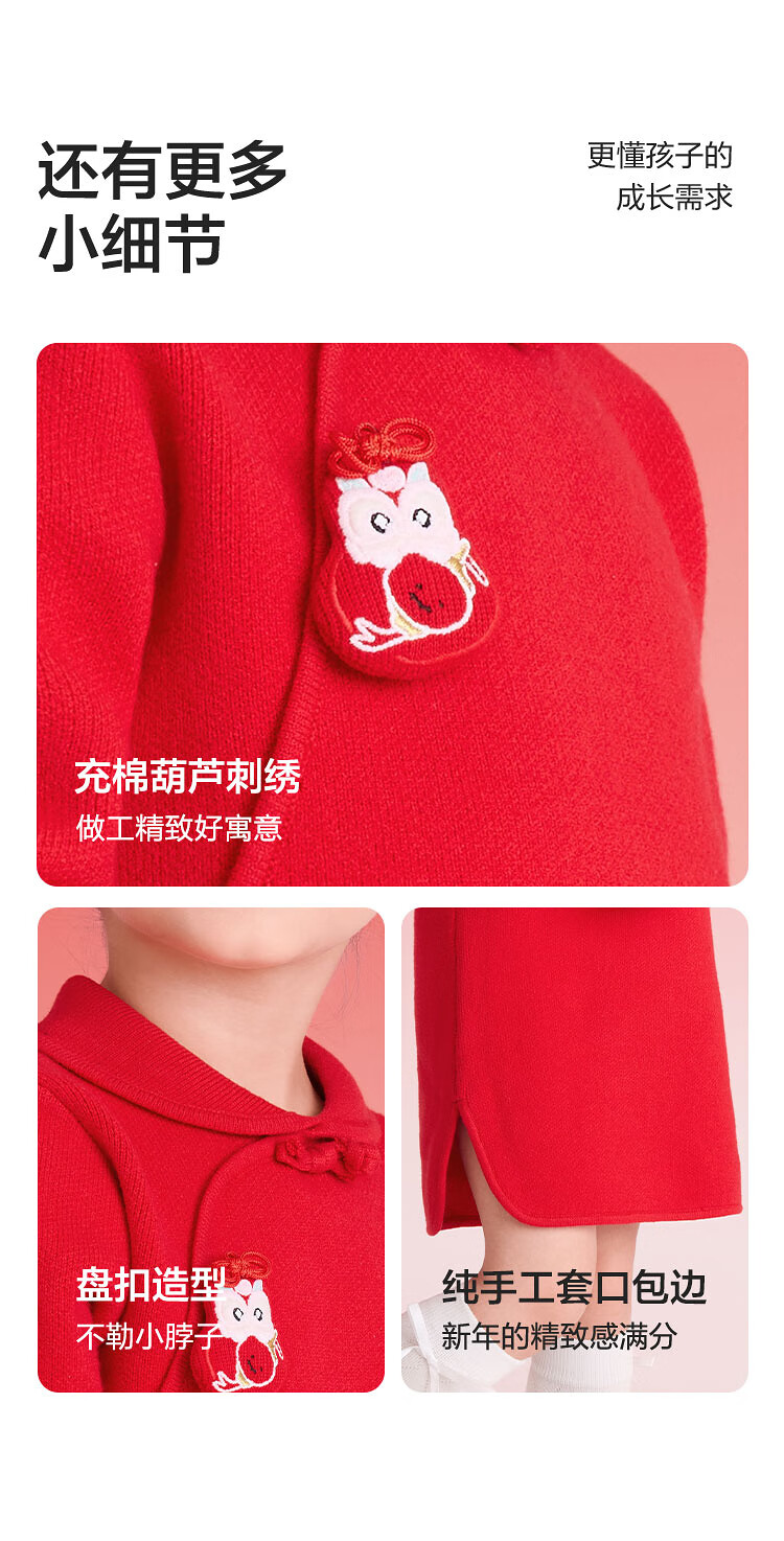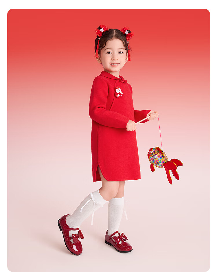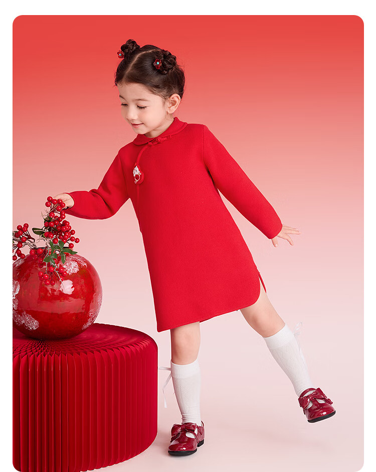巴拉巴拉童装儿童连衣裙女童新中式红色新年拜年服吉祥好运裙 中国红60611 130