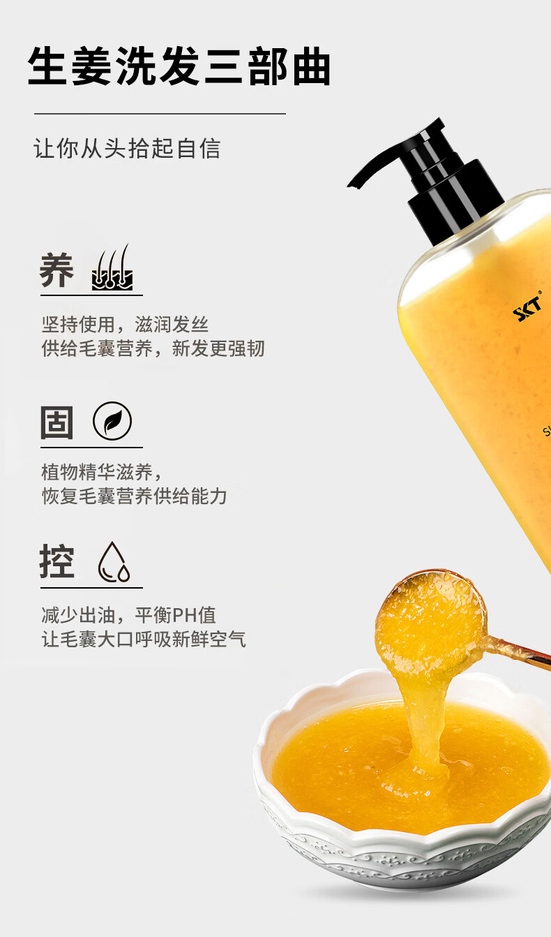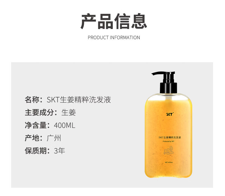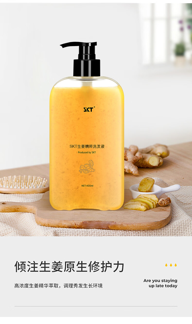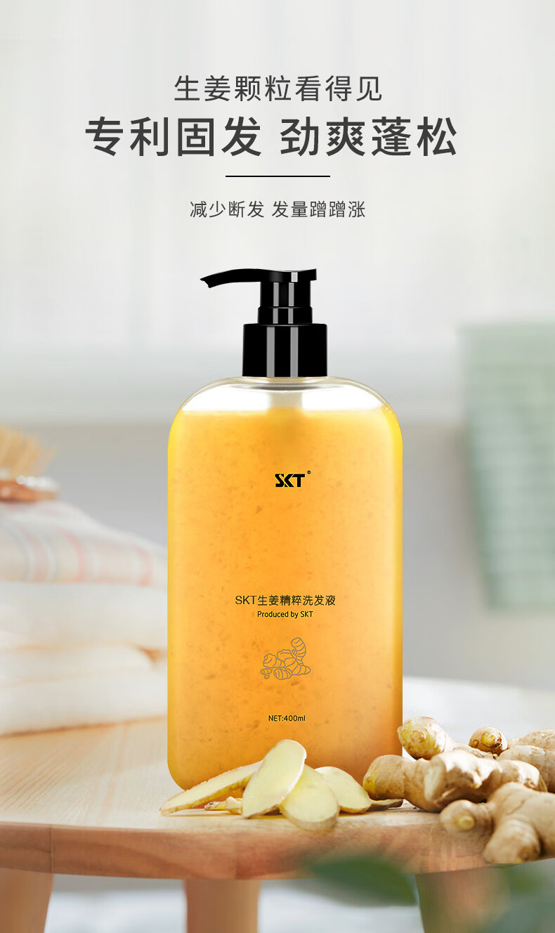 SKT生姜洗发水男女强根健发去屑止痒防脱防溢脂老姜王姜汁真姜粒添加 生姜洗发水400ml