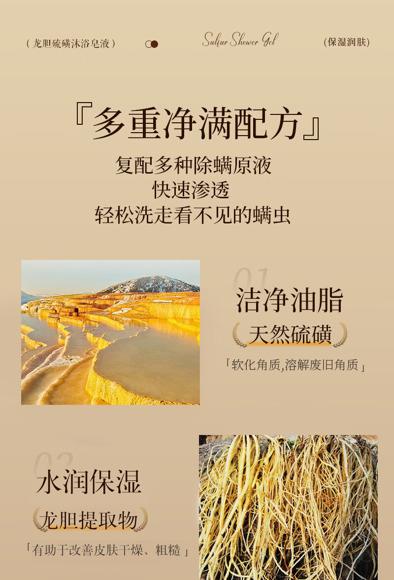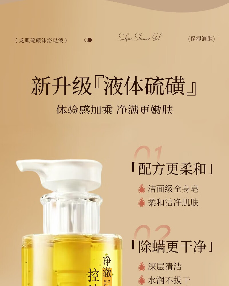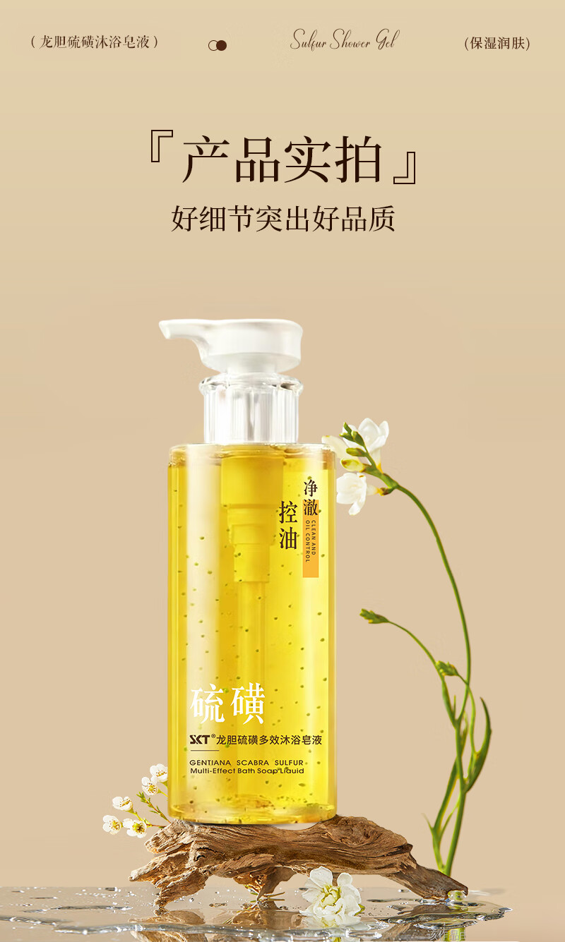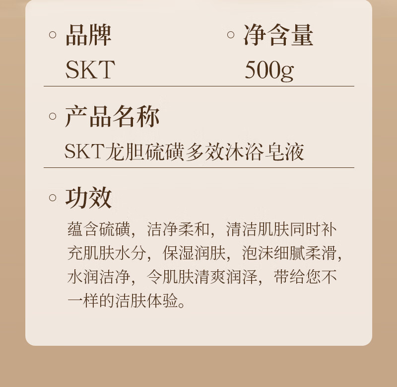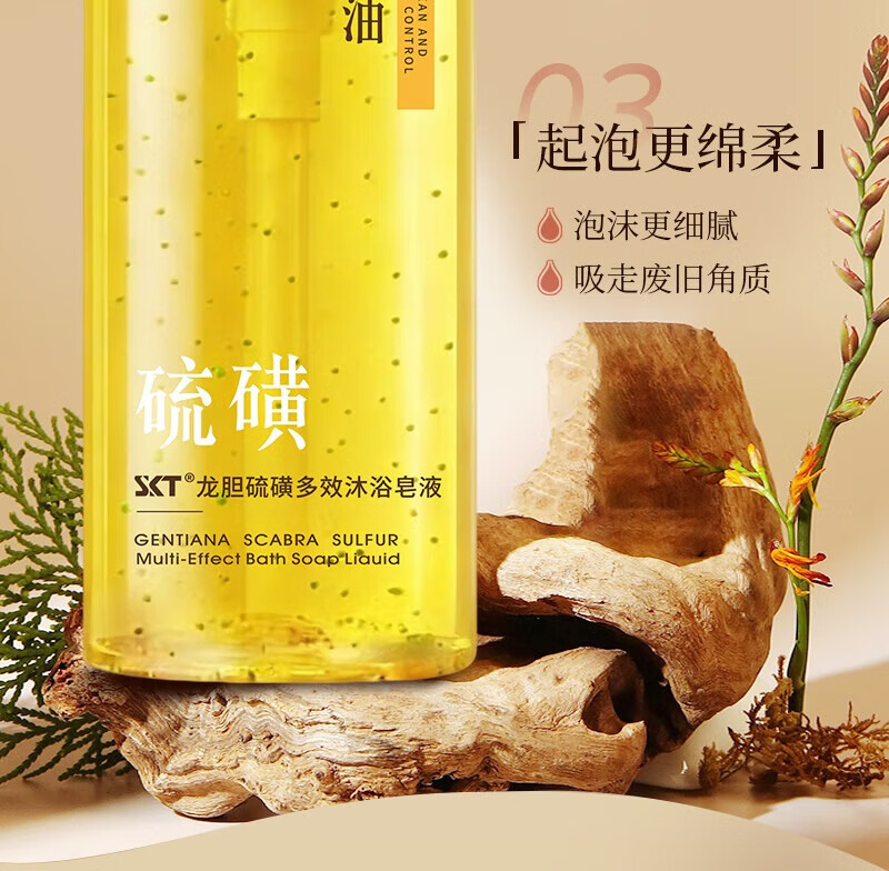 SKT龙胆硫磺除螨沐浴露深层去螨虫清洁保湿大容量洗澡专用洗护 SKT龙胆硫磺多效沐浴皂液500g