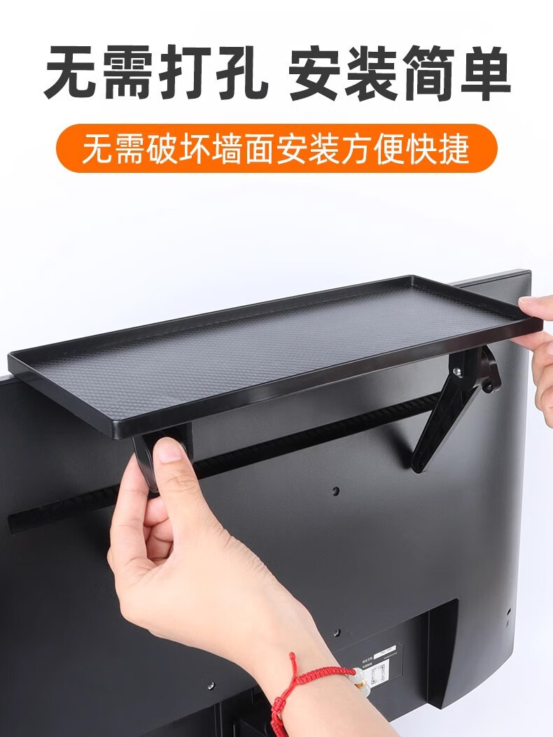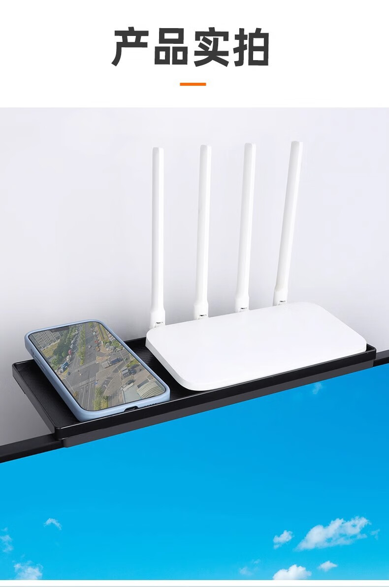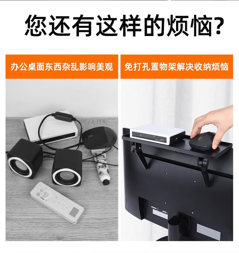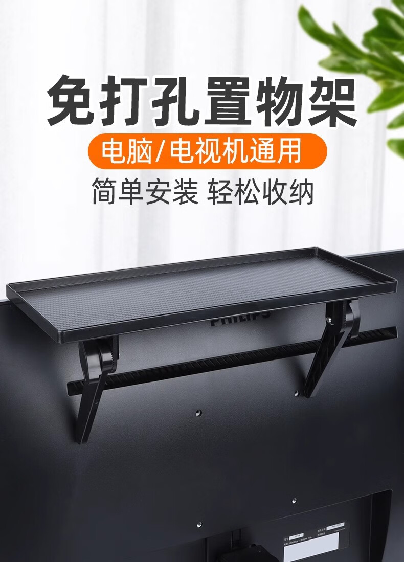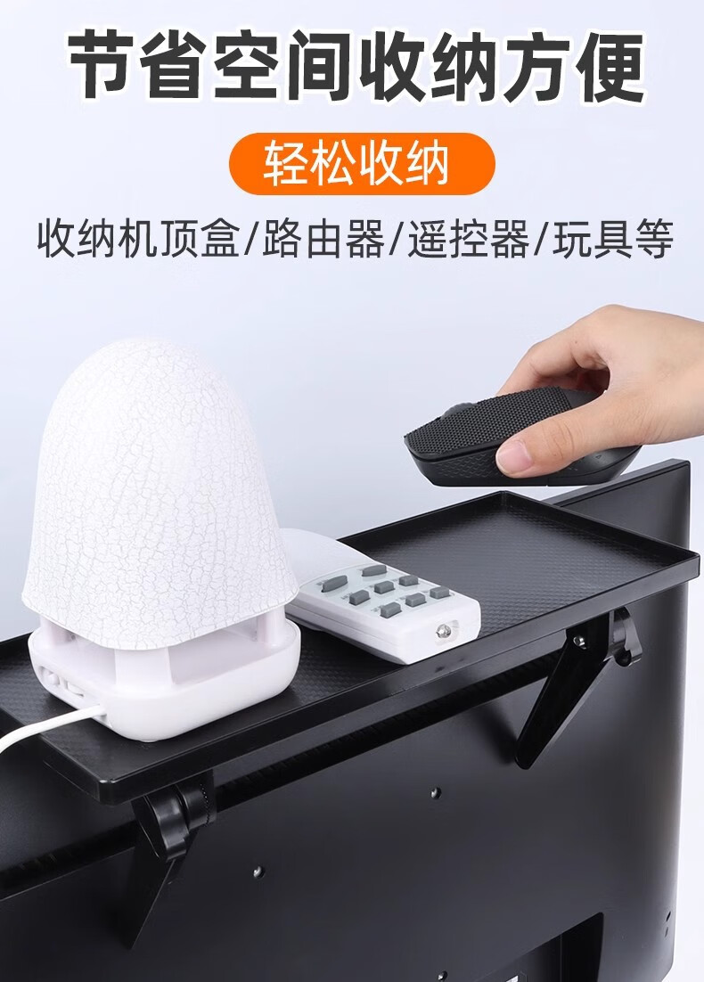 电脑屏幕电视机机顶盒置物架免打孔15cm宽路由器置物架收纳支架 无孔opp袋装 大号(33.5*16.5厘米(1个装)