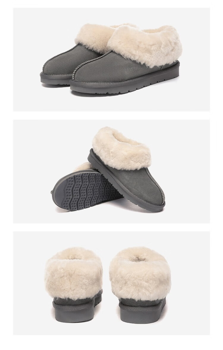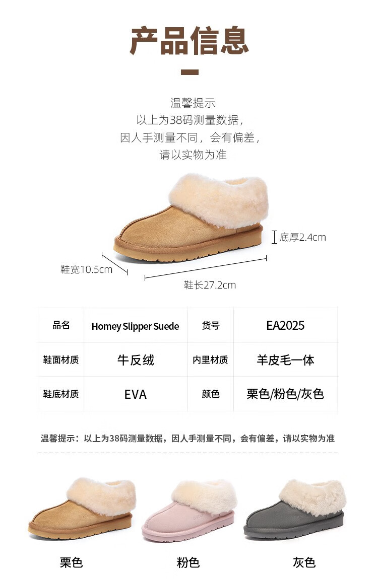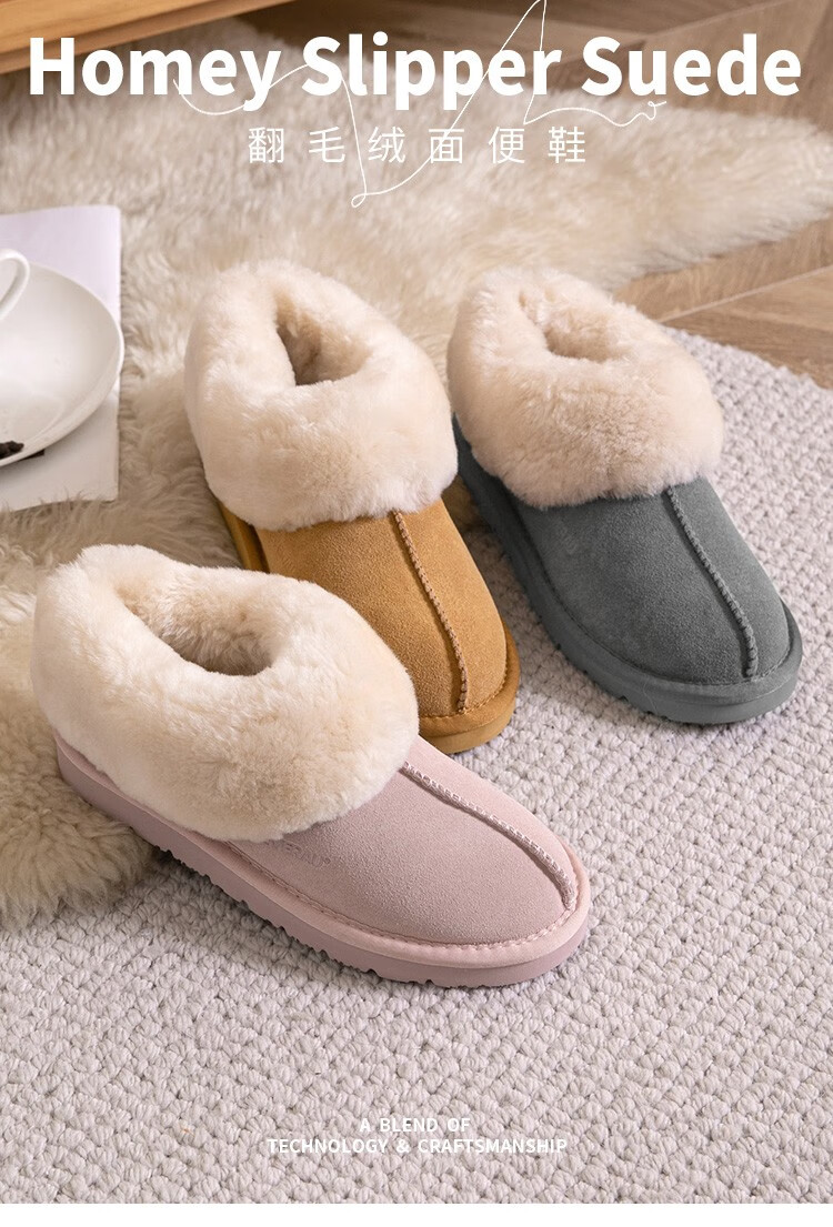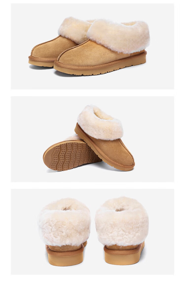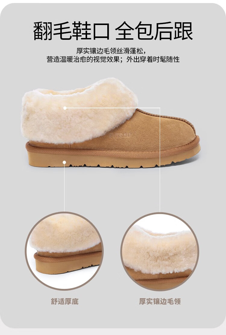 EVERAU冬季新款男女同款茸茸毛圈口便鞋低帮平底舒适懒人休闲鞋丨EA2025 栗色 37