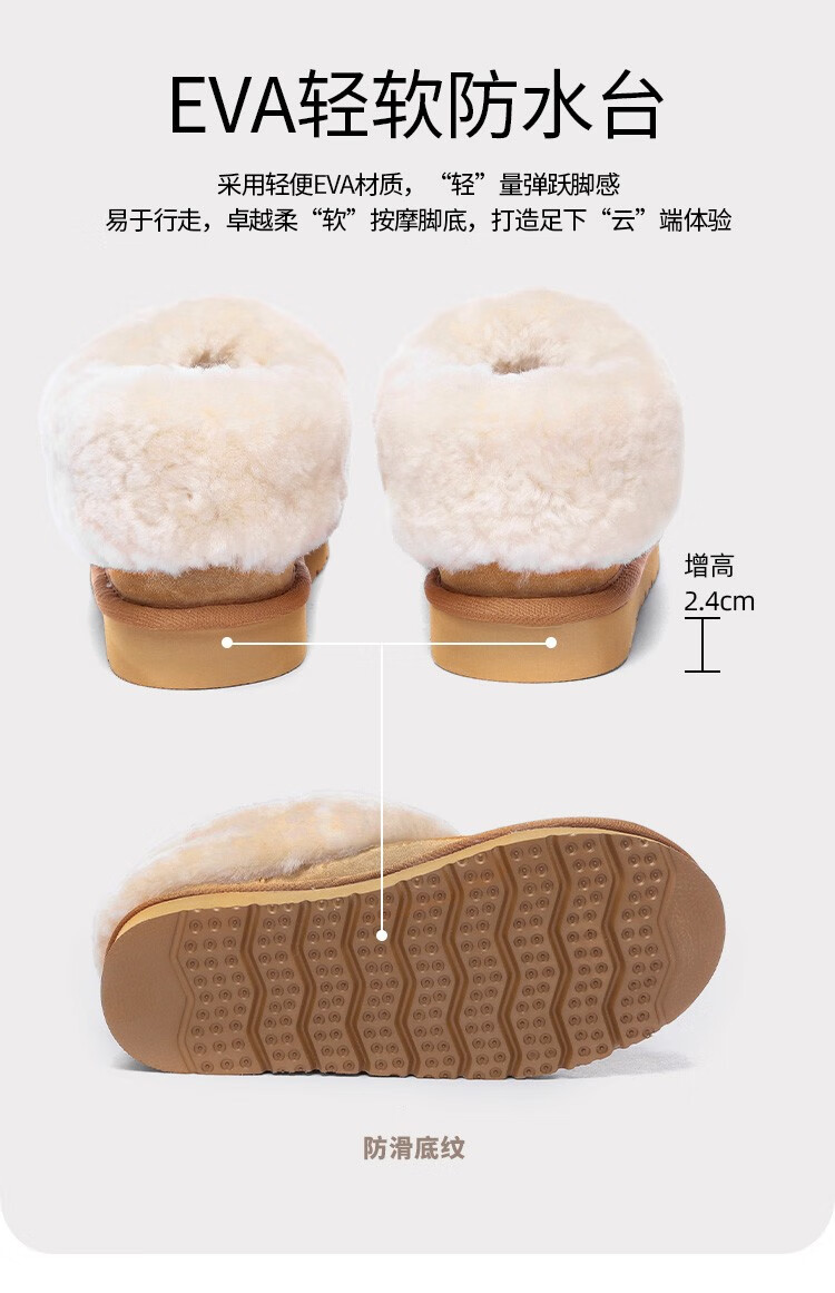 星期六真皮厚底雪地靴女2025新款冬季加绒保暖皮毛一体短靴东北防寒棉鞋 驼色 【超暖毛绒】跟高4.5cm 36