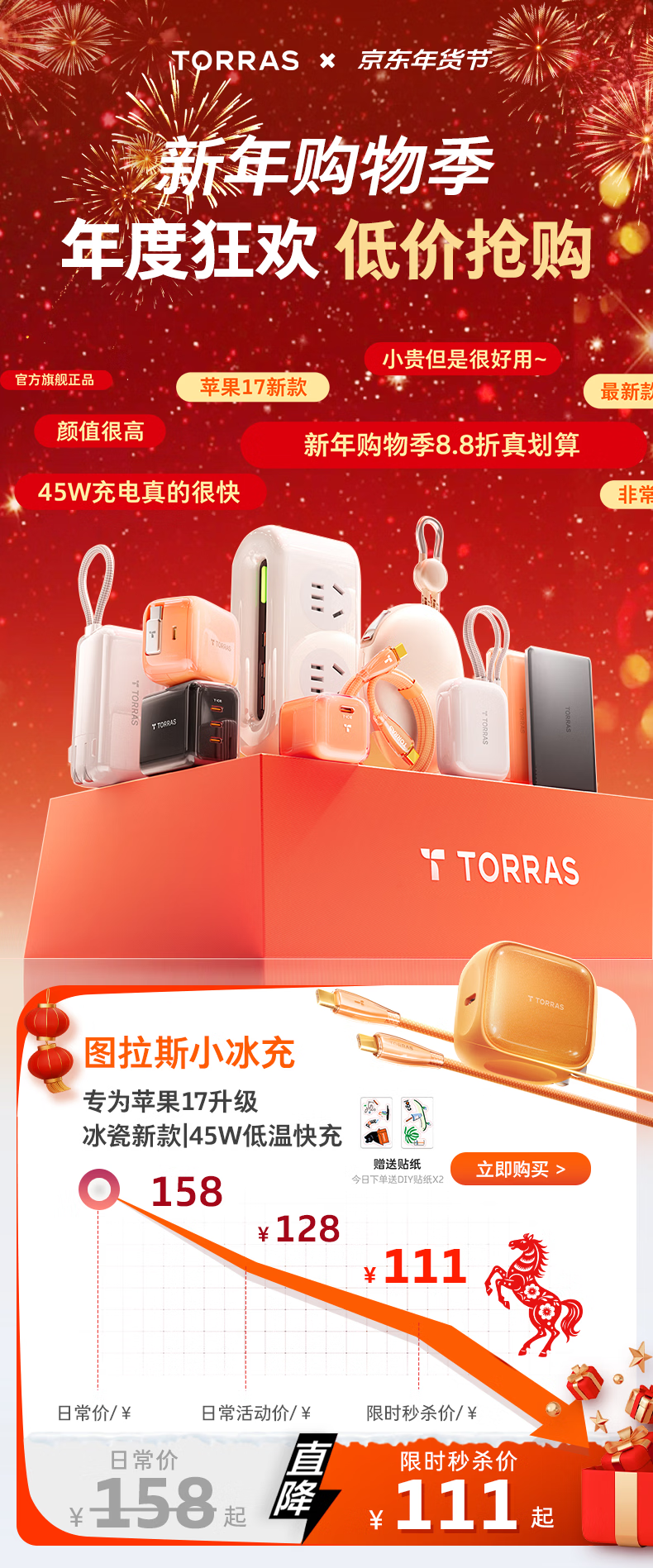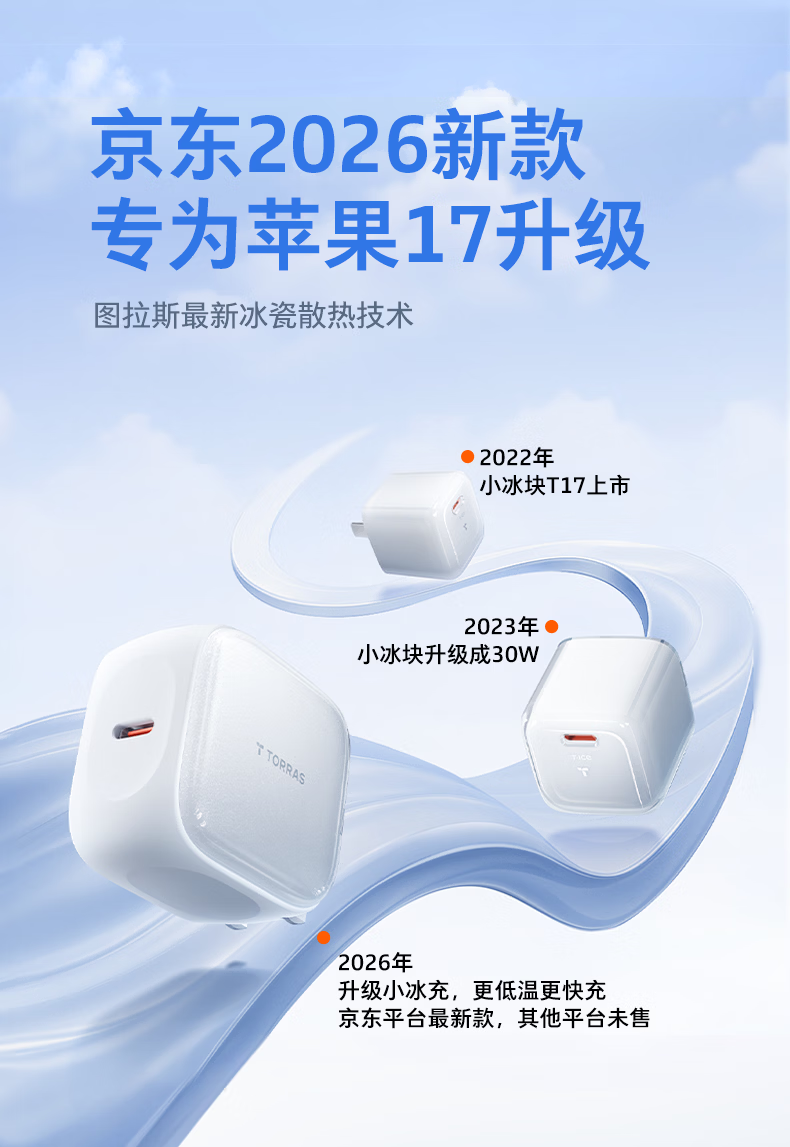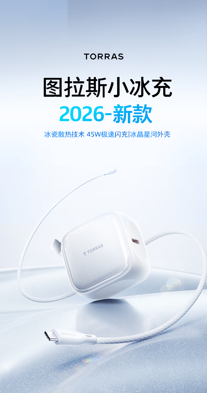 图拉斯苹果17充电器【2026年新款|45W顶配低温快充】iPhone17Promax充电头小冰充适配苹果17原装充电头16 【45W单头】星光白 最新款|顶配苹果17充电器|超低温不伤机