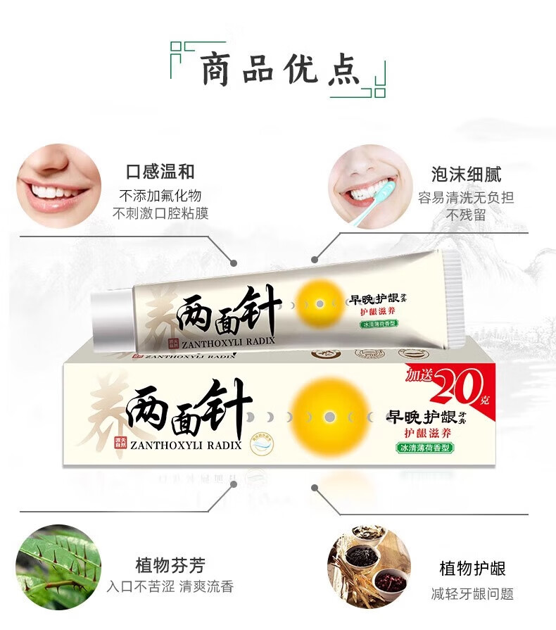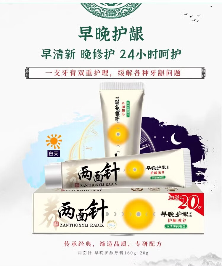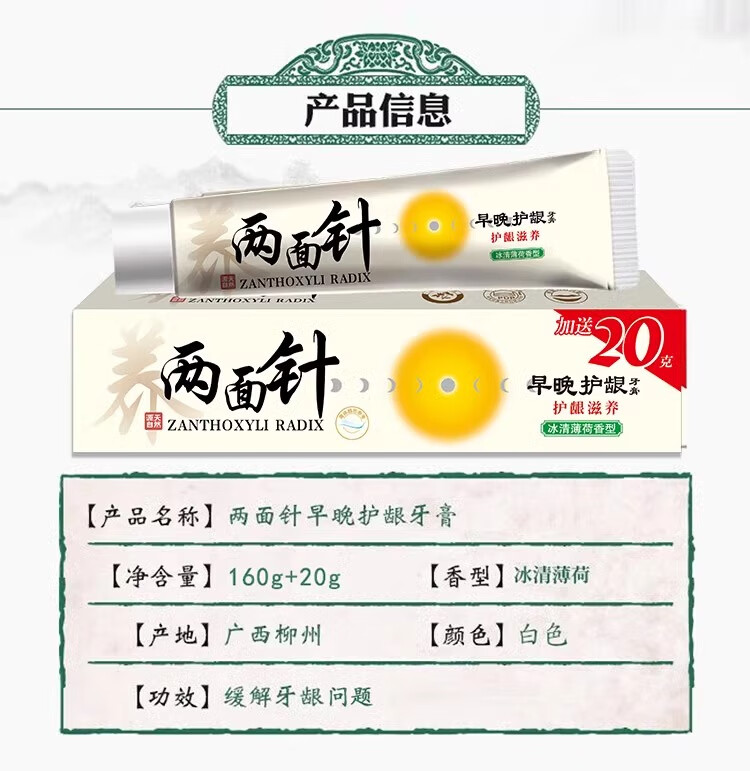 两面针早晚护龈牙膏草本健齿多效深层清洁护龈清新去口气国货经典老字号 两面针早晚护龈180g*1支