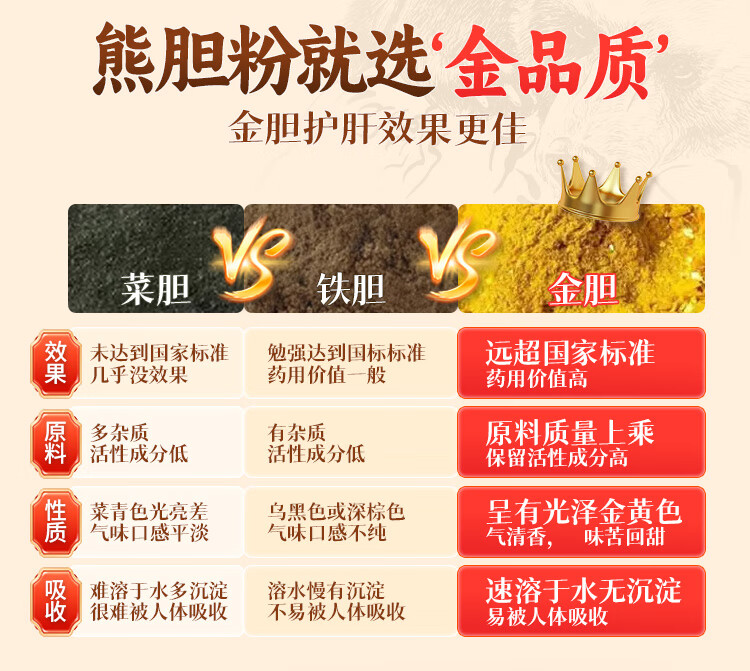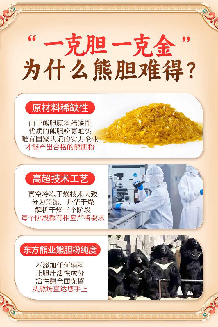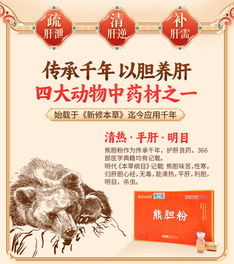 [御熊小黑熊]熊胆粉 0.2g*10支 3盒装 0.2gX10品国药准字冻干金胆级熊胆粉目赤肿痛养肝明目咽喉肿痛口干口苦解酒 纯天然熊胆粉