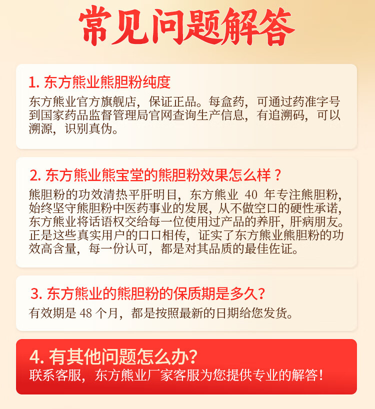 [生生饮]熊胆粉 0.1g*6瓶 4盒装 0.1g*6瓶/盒 清热 平肝 明目 用于目赤肿痛 咽喉肿痛 共24瓶 赠糯米纸一包