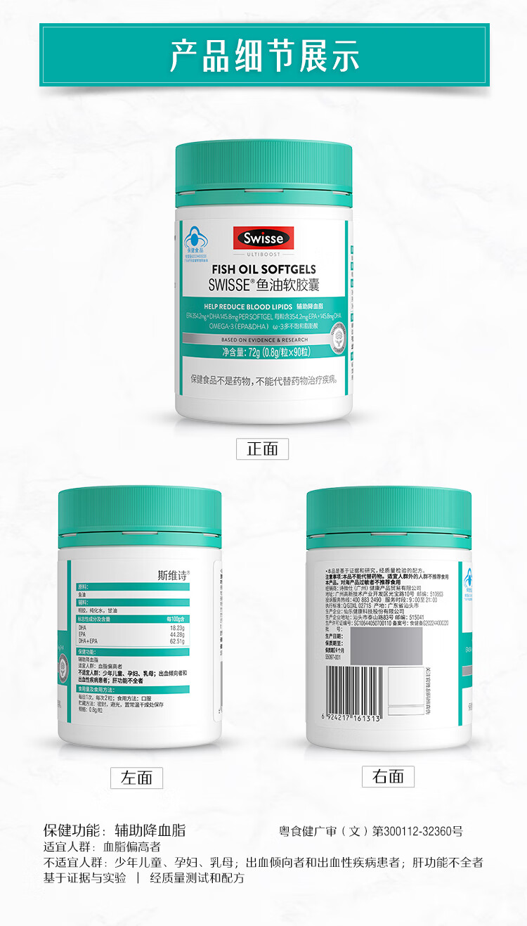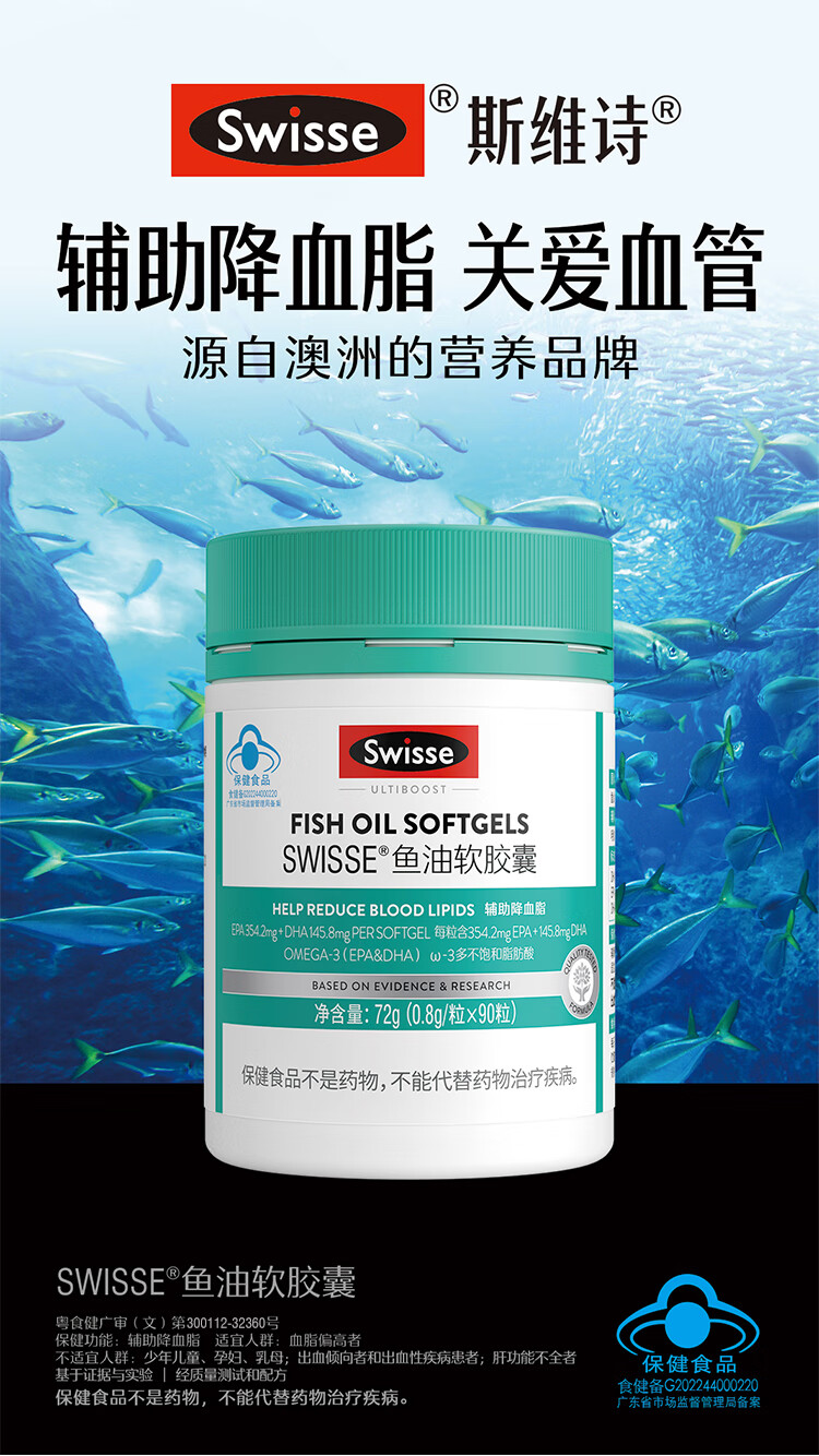 Swisse斯维诗 鱼油软胶囊 深海高浓度小粒鱼油 蓝帽认证 辅助降血脂 「联盟专享」0.8g/粒* 90粒*1罐