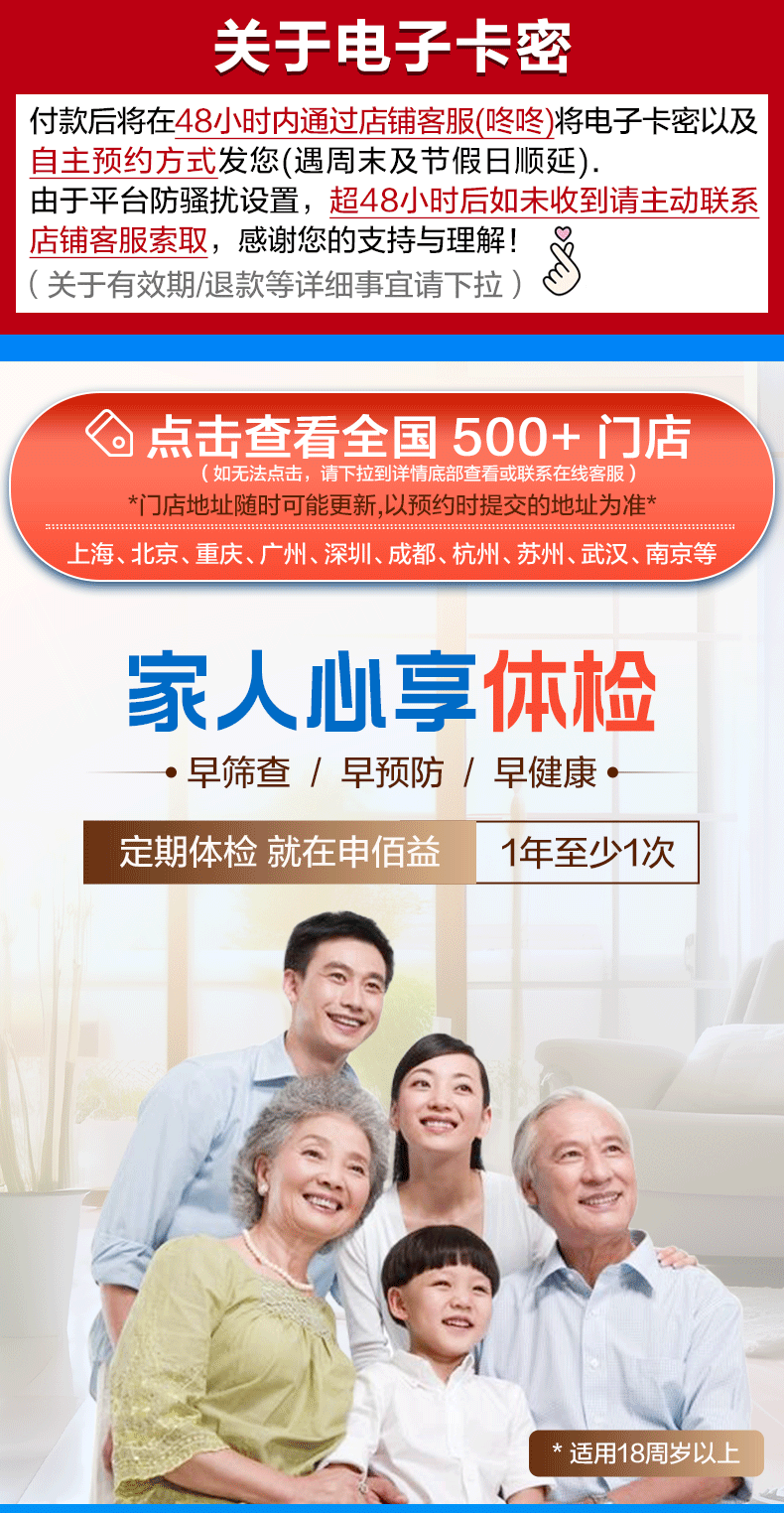 美年大健康瑞慈体检家人畅享E体检套餐中青老年全国门店通用体检卡 高阶版(2人份多减20)(美年瑞慈)(强烈推荐) 2个工作日内店铺客服(咚咚)发您卡密自主预约