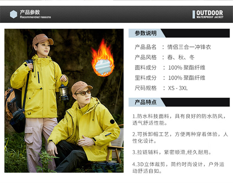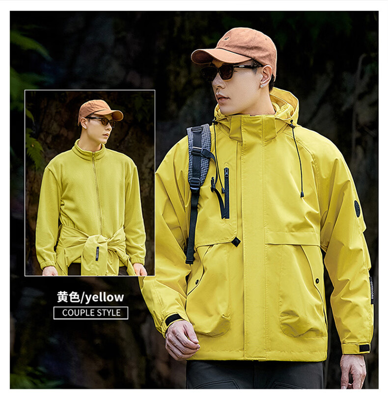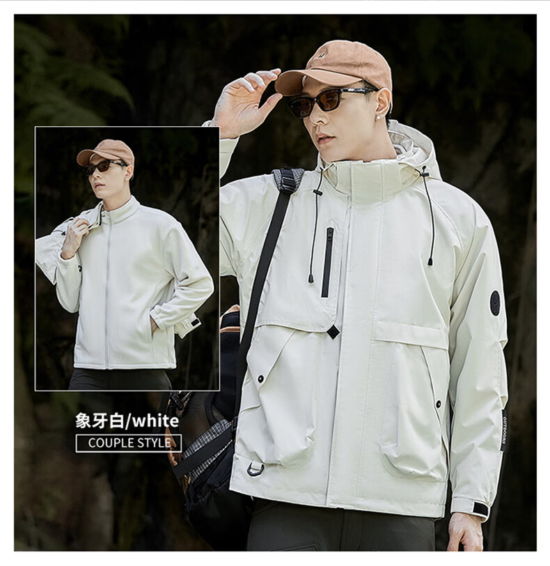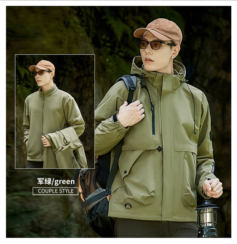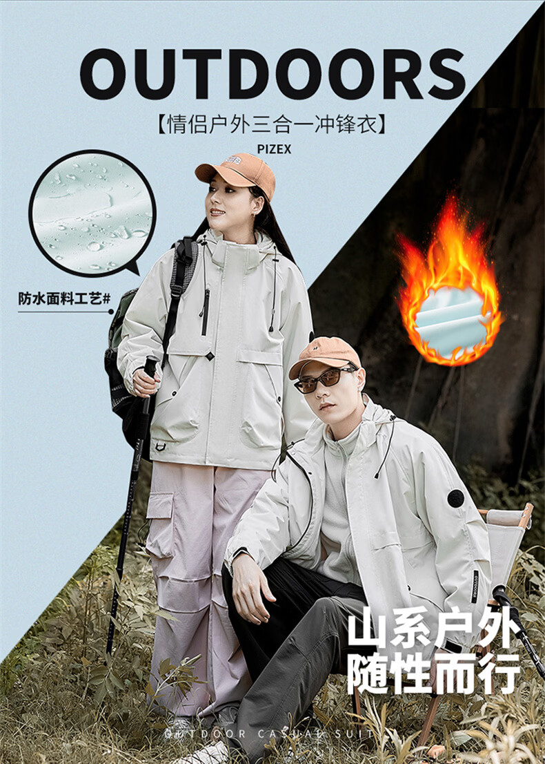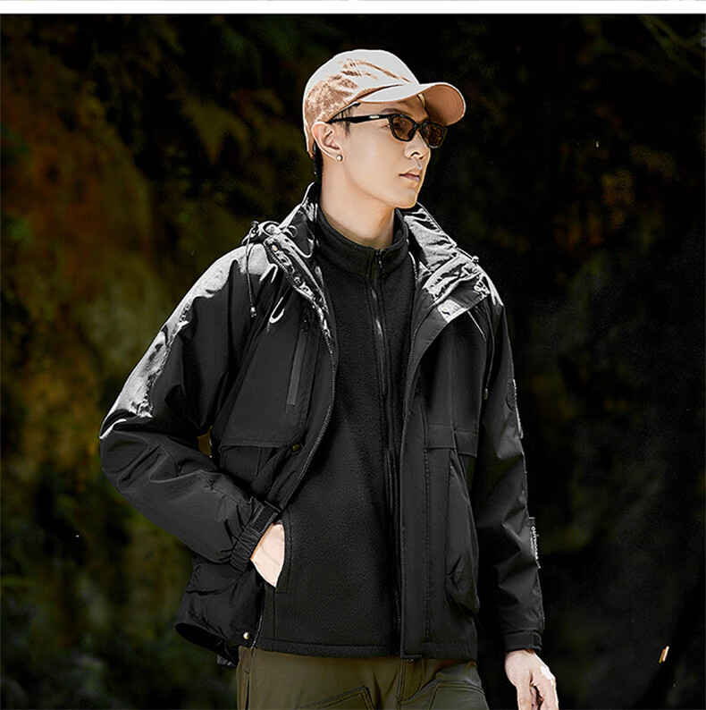 INTO TOP户外三合一冲锋衣男秋冬季新款外套男女情侣款三防运动登山服 黑色【三合一】 XL