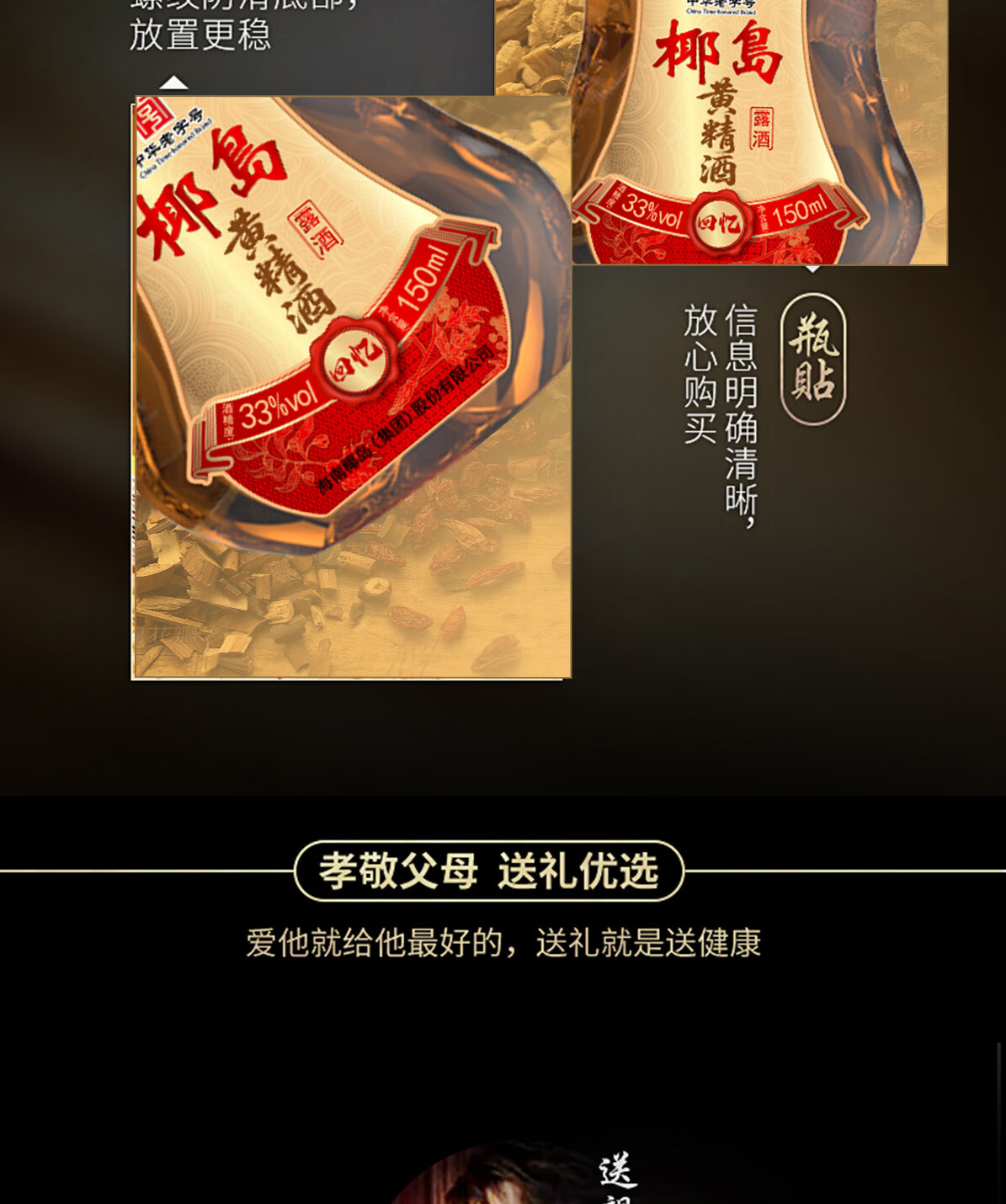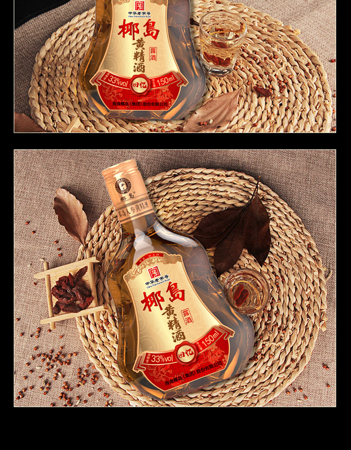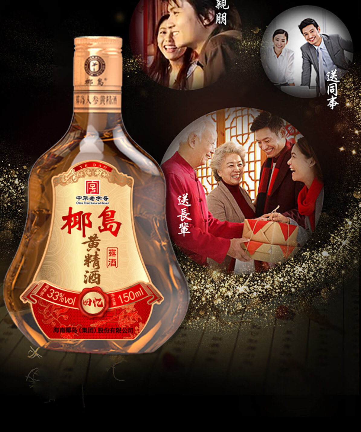 椰岛黄精酒 回忆 33度 年货节日送礼送长辈 33度 150mL 10瓶 小酒 手提礼盒