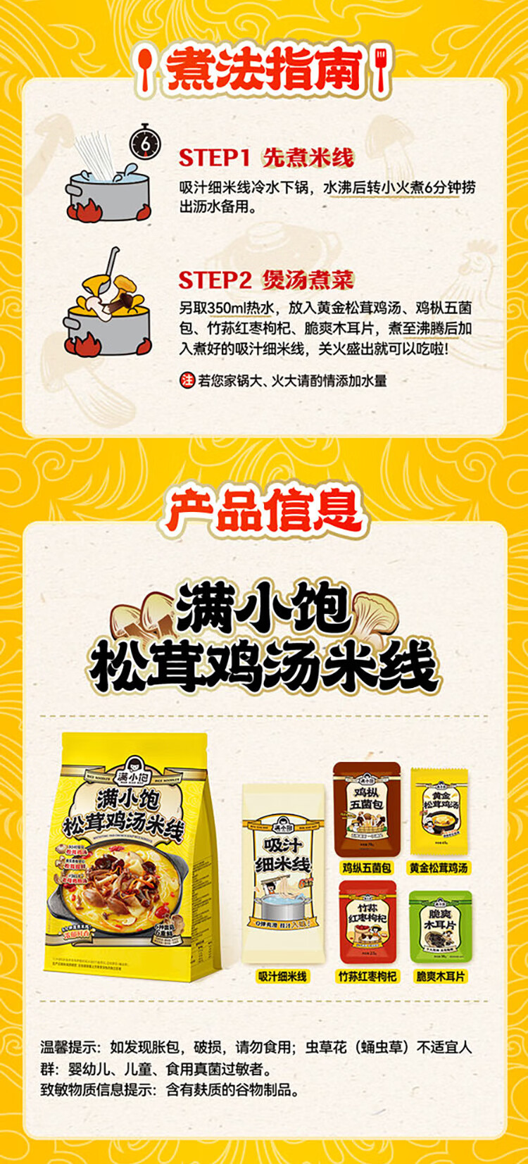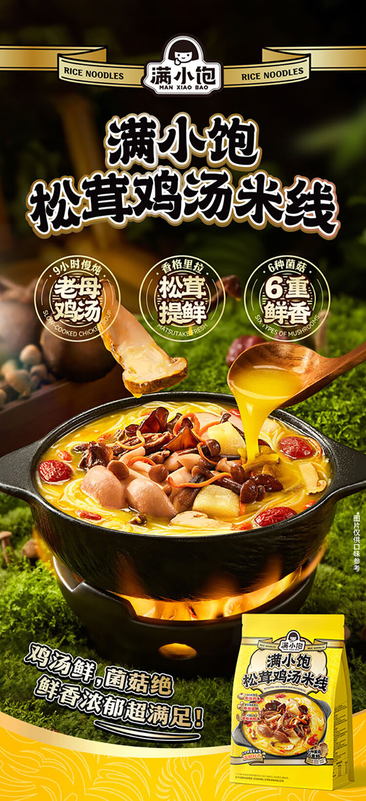满小饱【金靖同款】松茸鸡汤米线267.5g*3袋浓郁鲜香添加菌菇 方便速食