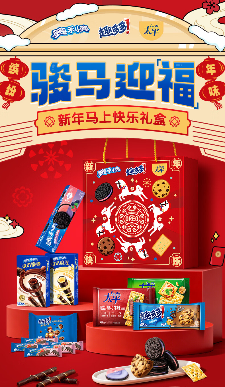 奥利奥趣多多太平骏马迎福年货礼盒1091g含16件 曲奇苏打饼干零食送礼