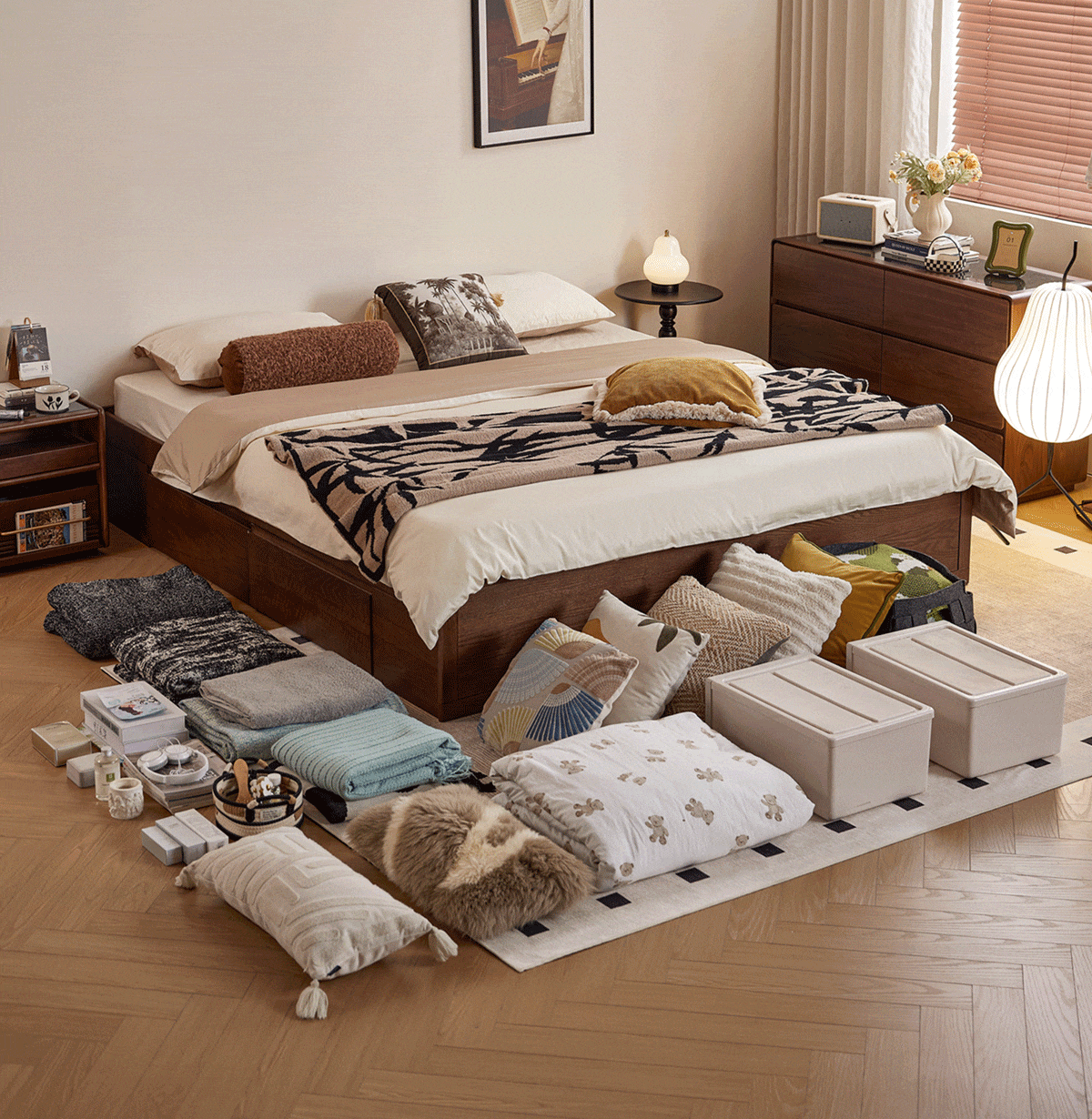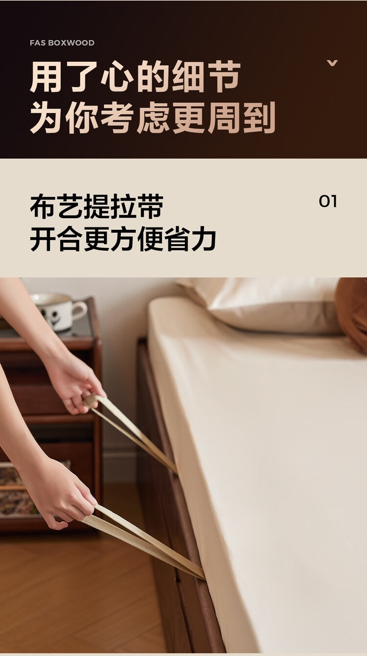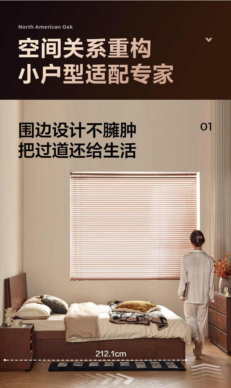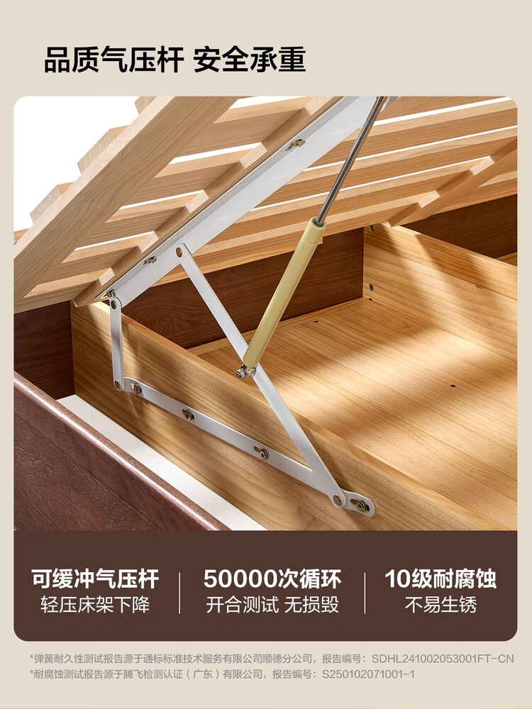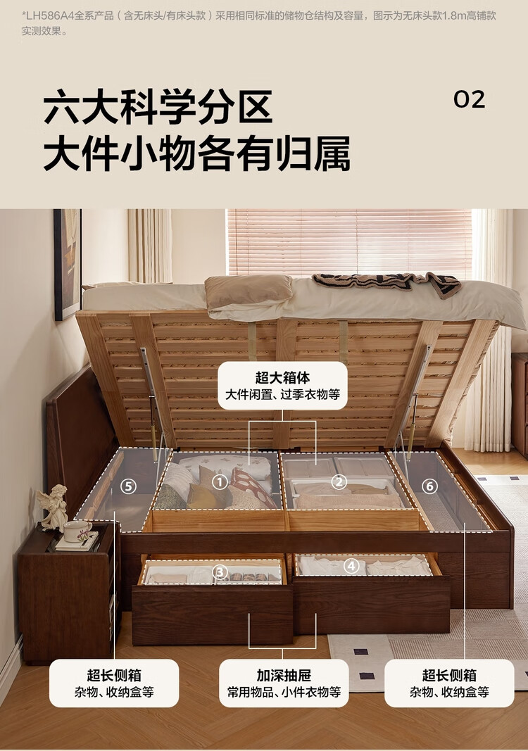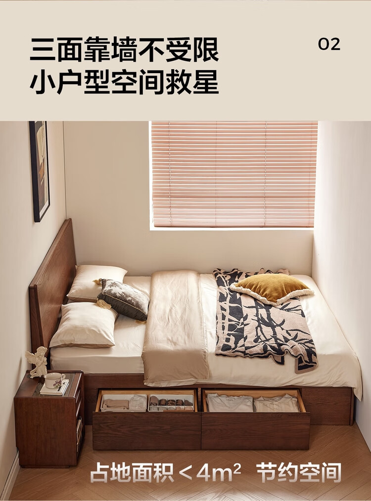 林氏家居复古全实木床1米8双人床橡木高箱储物箱体床木业可可系列LH586A4 【高铺款】储物实木床 1.5x2米