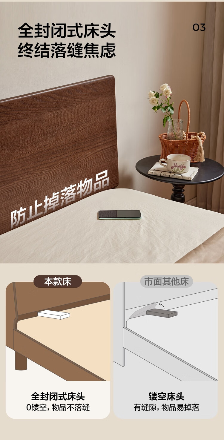 全友家居 胡桃木色实木床智能床现代简约主卧室双人大床1.8x2米家具