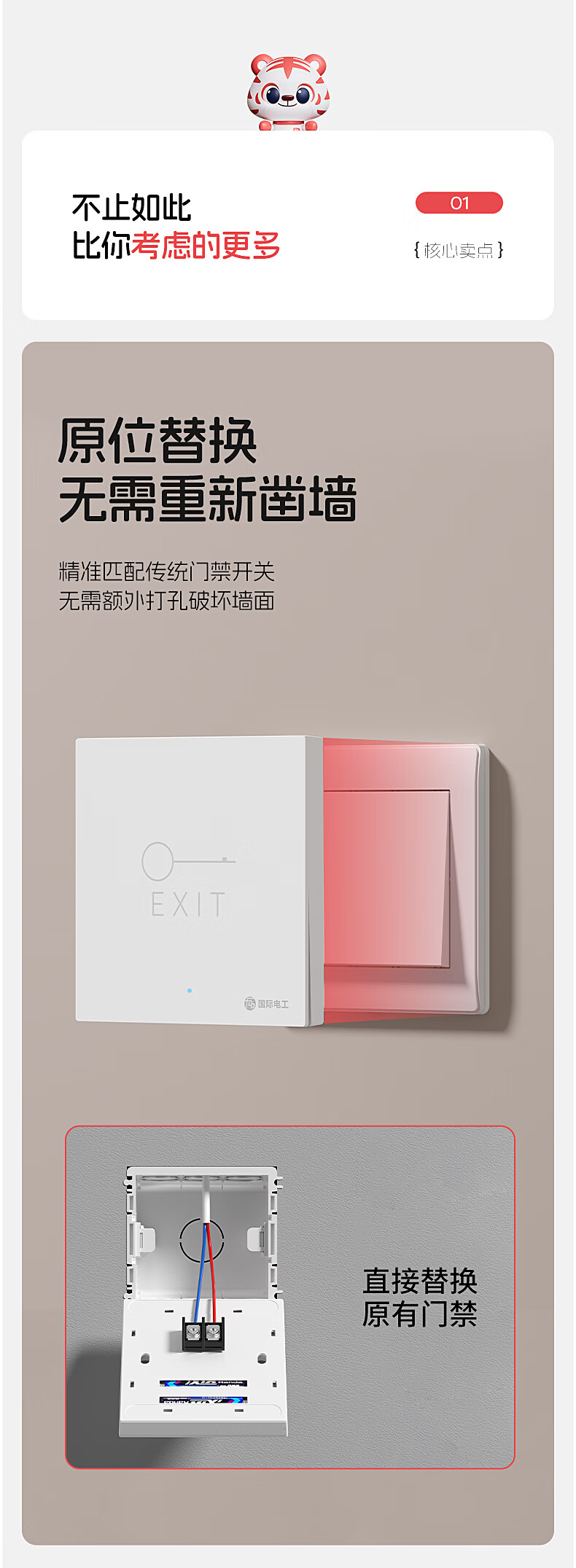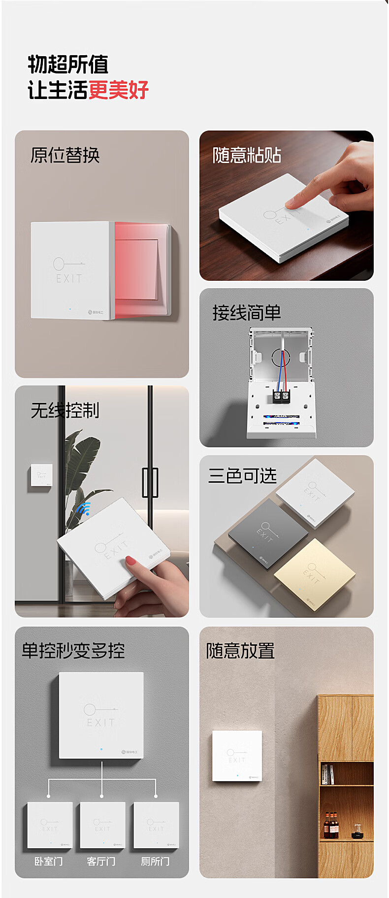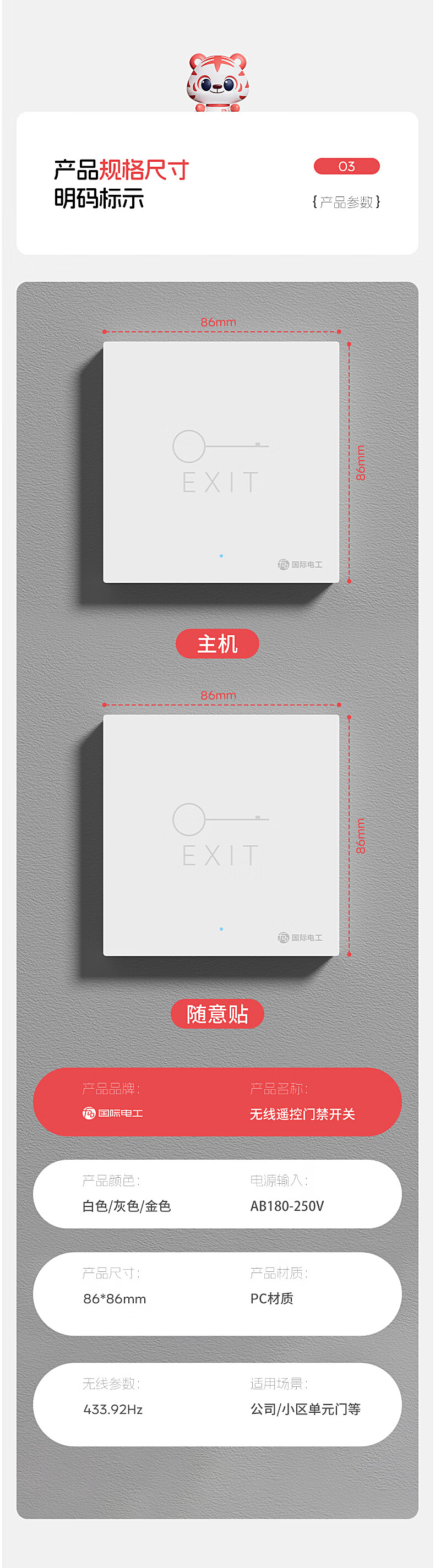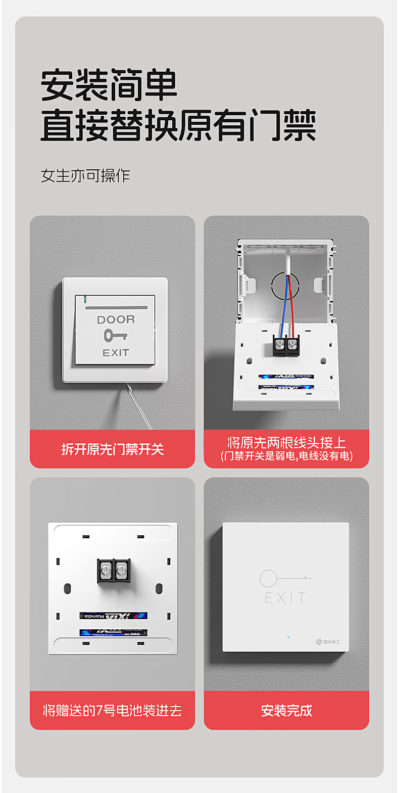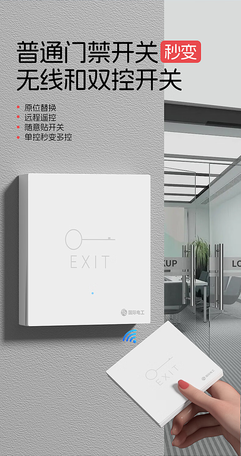 国际电工办公室免布线门禁无线遥控开关远距离遥控单元门小区出门开门按钮 1个主机+1个随意贴【白色】