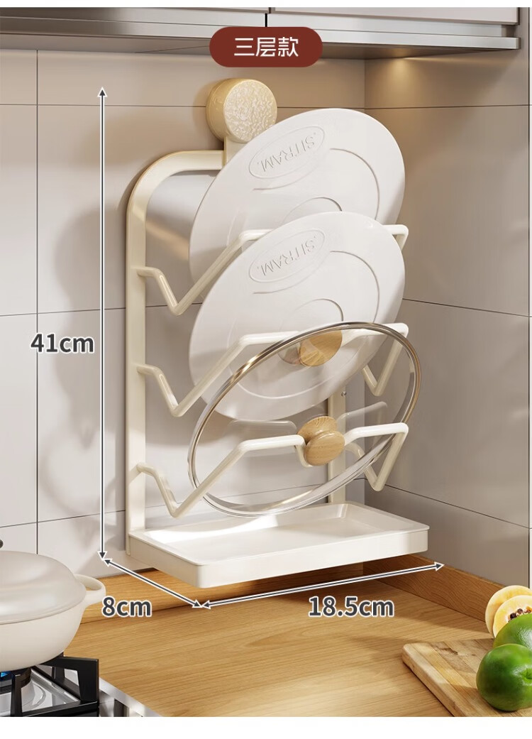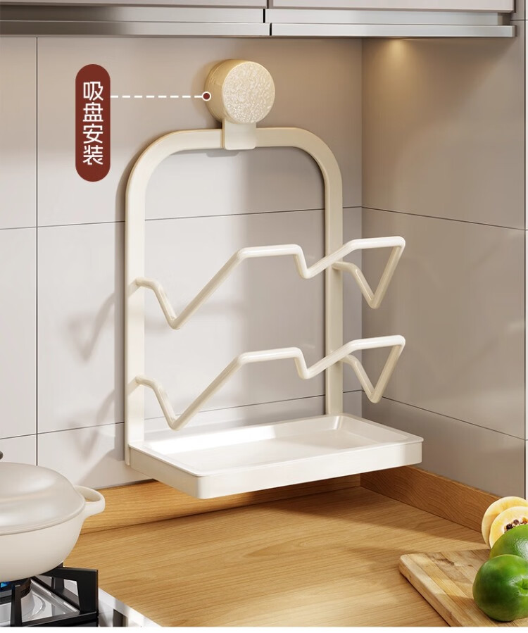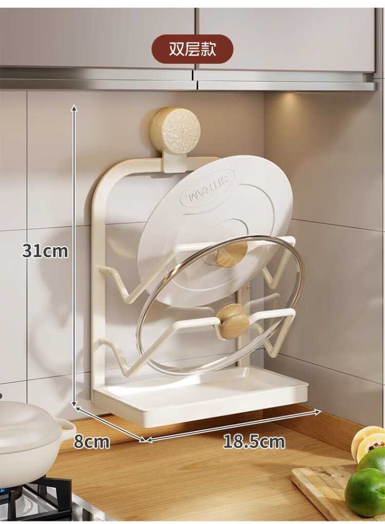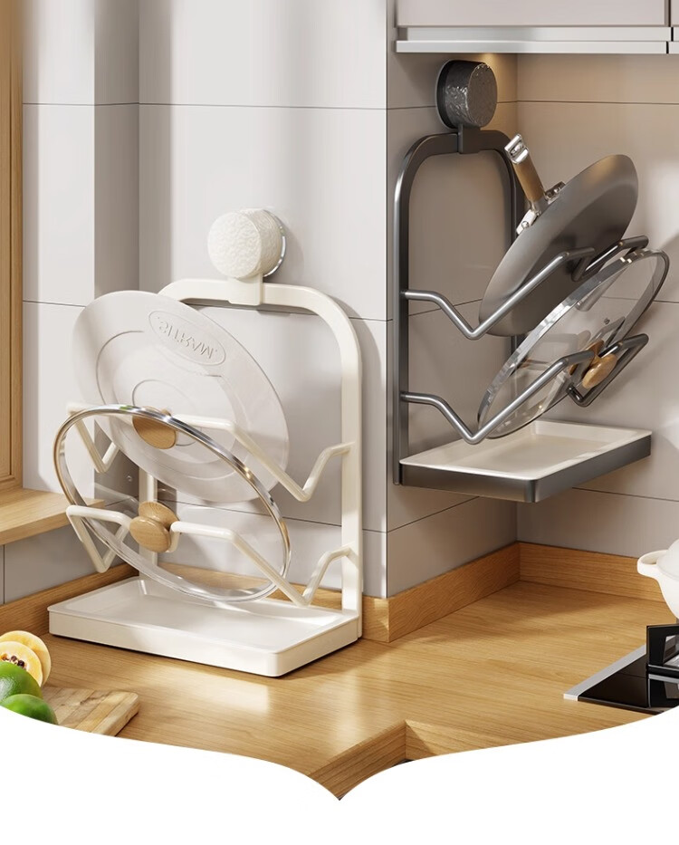 尔思家厨房置物架锅盖架免打孔壁挂式多功能锅具收纳架菜板沥水架分层架 (单吸盘)双层【枪灰色】